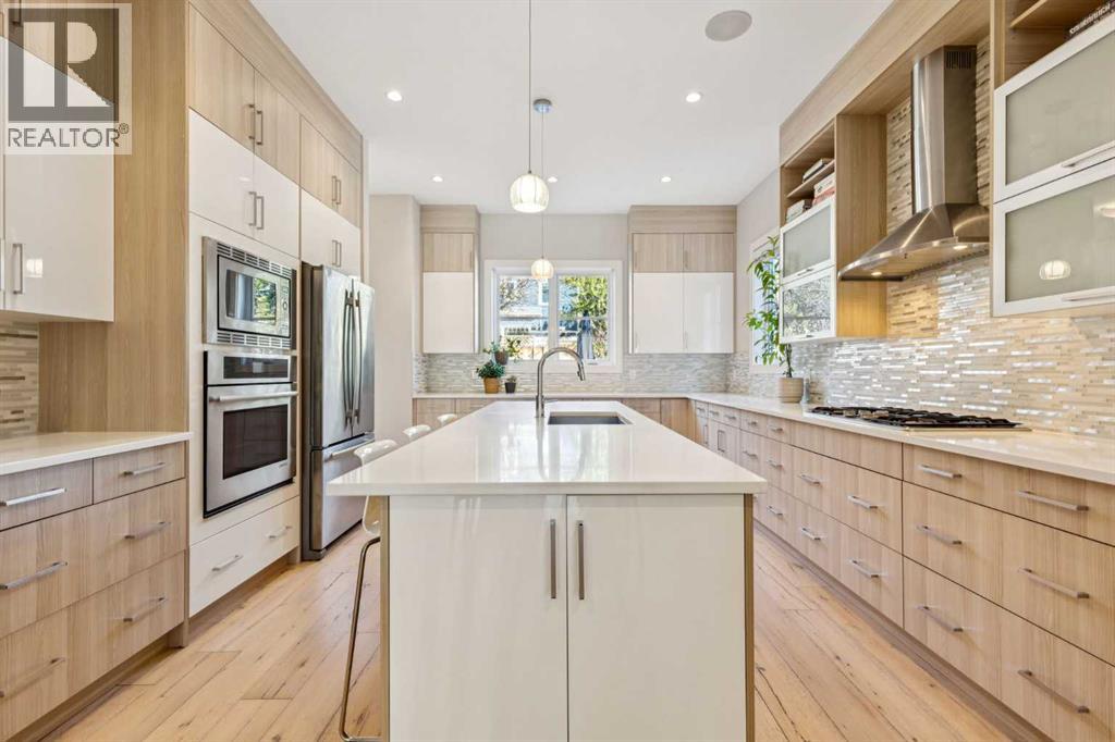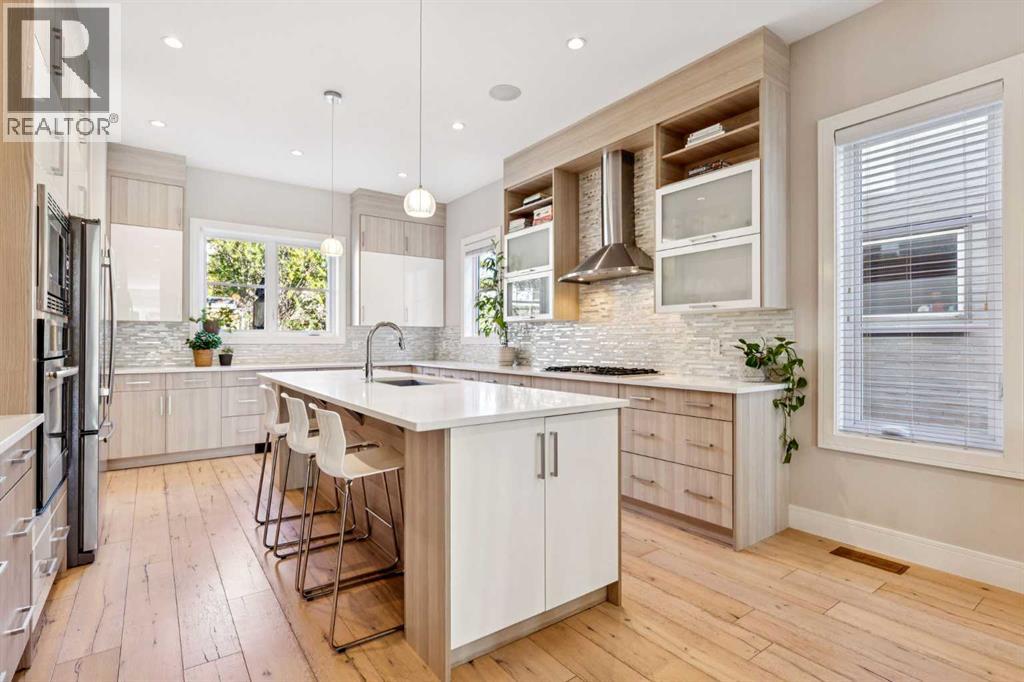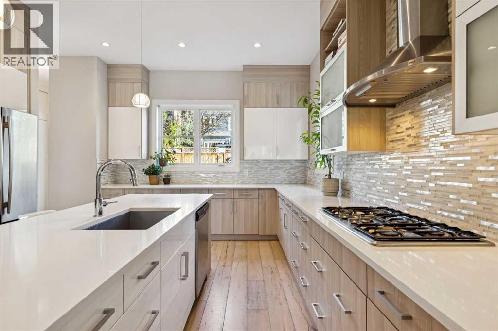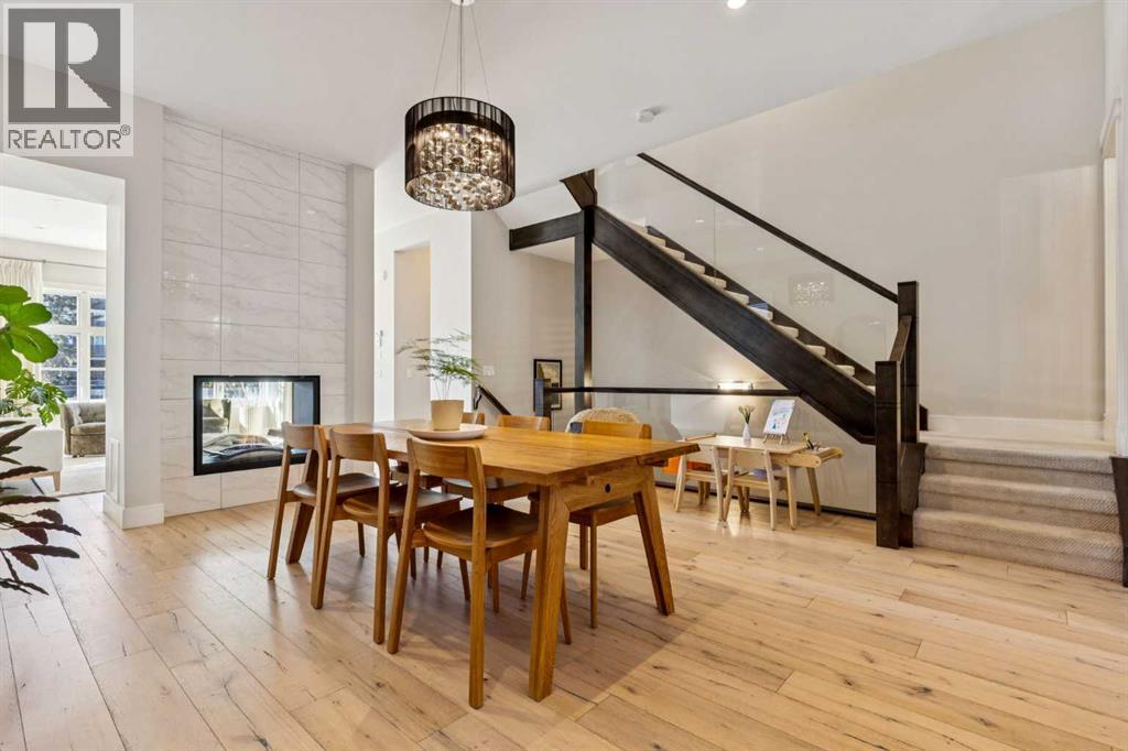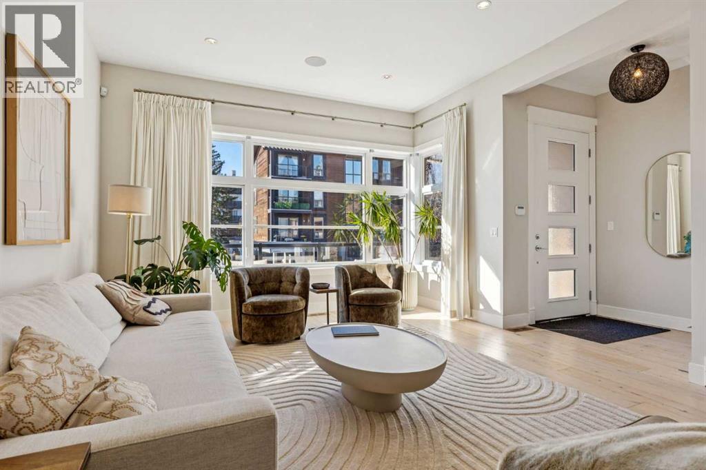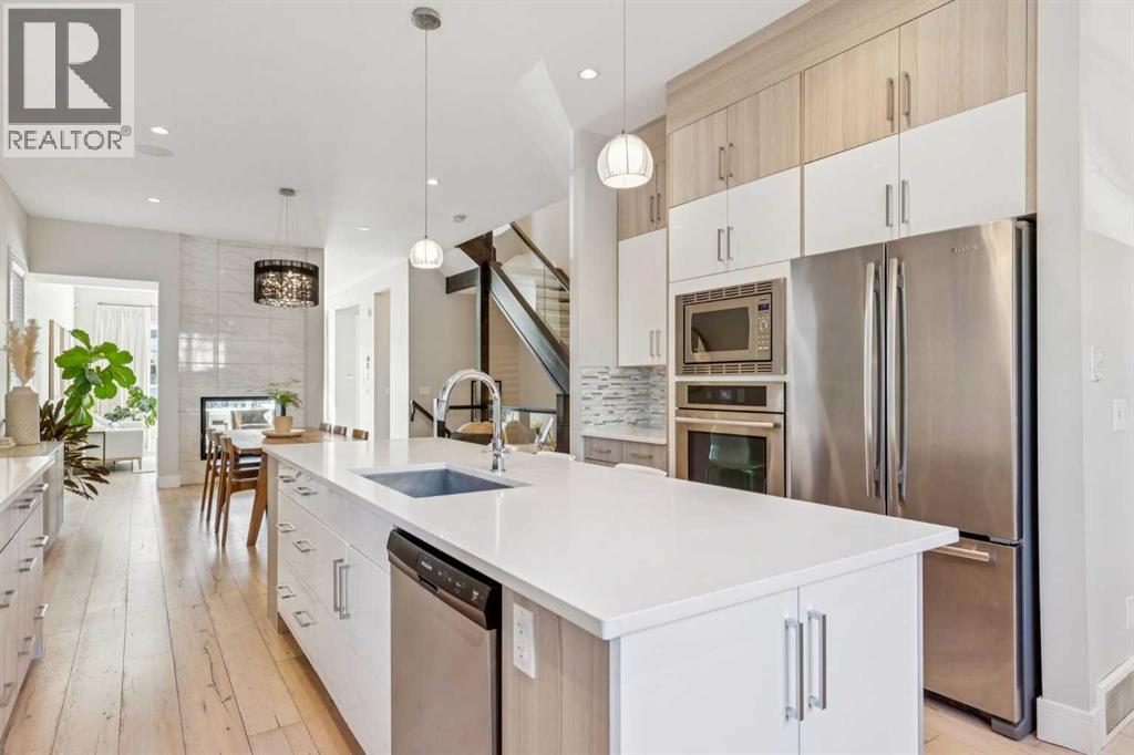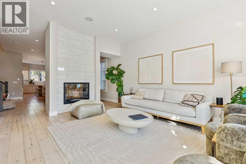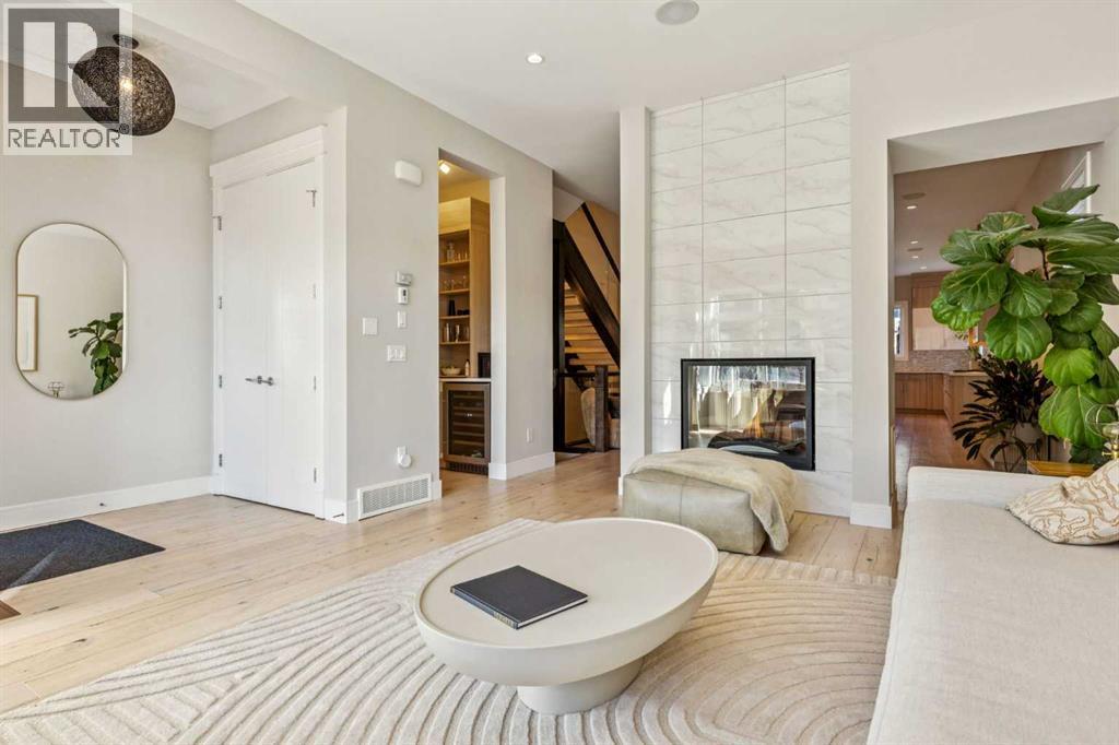This inner-city infill delivers nearly 3,000 ft² of beautifully designed living space and a rare attached front double garage. Thoughtfully finished with exceptional soundproofing and QUALITY MATERIALS, it’s built for entertaining and everyday comfort. Step inside to 10-ft ceilings, wide-plank hardwood, and a bright, open plan with glass railings and large windows. At the centre of the home, the kitchen impresses with JennAir appliances, a 5-burner gas cooktop, an oversized island with seating, abundant drawer storage, and a dedicated beverage bar with under-counter fridge and shelving, equally suited to morning espresso or evening pours. The spacious dining area flows into the living room, where a two-way fireplace creates a cozy focal point. A walk-in pantry adds storage, while a practical rear mudroom keeps everything organized. Upstairs are three generous bedrooms with custom closet organizers. The luxurious primary retreat features a walk-in closet and a spa-inspired 6-piece ensuite with steam shower, double vanity, and jetted tub. The second-floor laundry room includes a sink and cabinetry for everyday convenience. The lower level expands your living space with a family room, full bathroom, and a versatile guest room with a sizeable walk-in closet. Notable upgrades include built-in speakers throughout, a double-insulated garage, oversized water heater, central air conditioning, rough-in for central vac, and new shingles in 2023. With quick access to downtown, a nearby off-leash dog park, and the boutiques and dining of Marda Loop, this is a rare opportunity on one of Bankview’s signature streets, celebrated for its charm and convenience to the inner city. Schedule your private showing today. (id:55577)