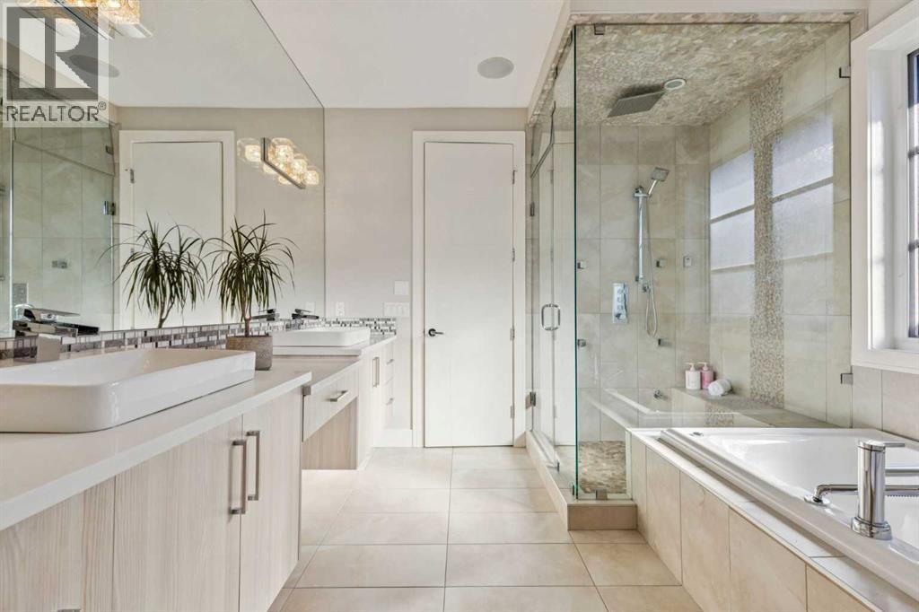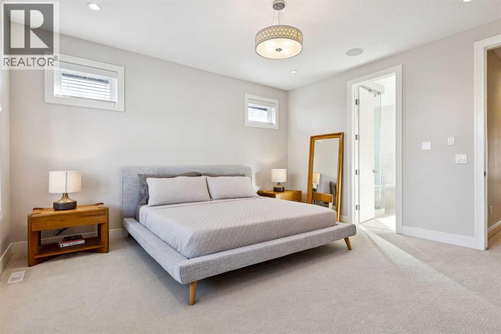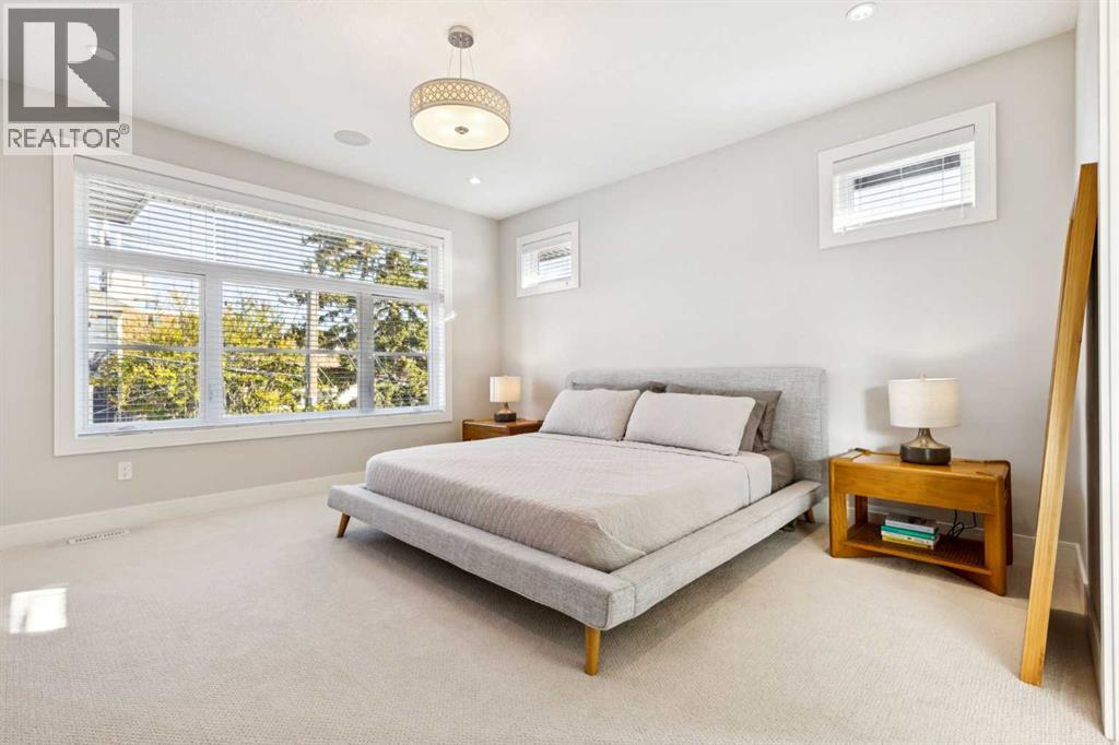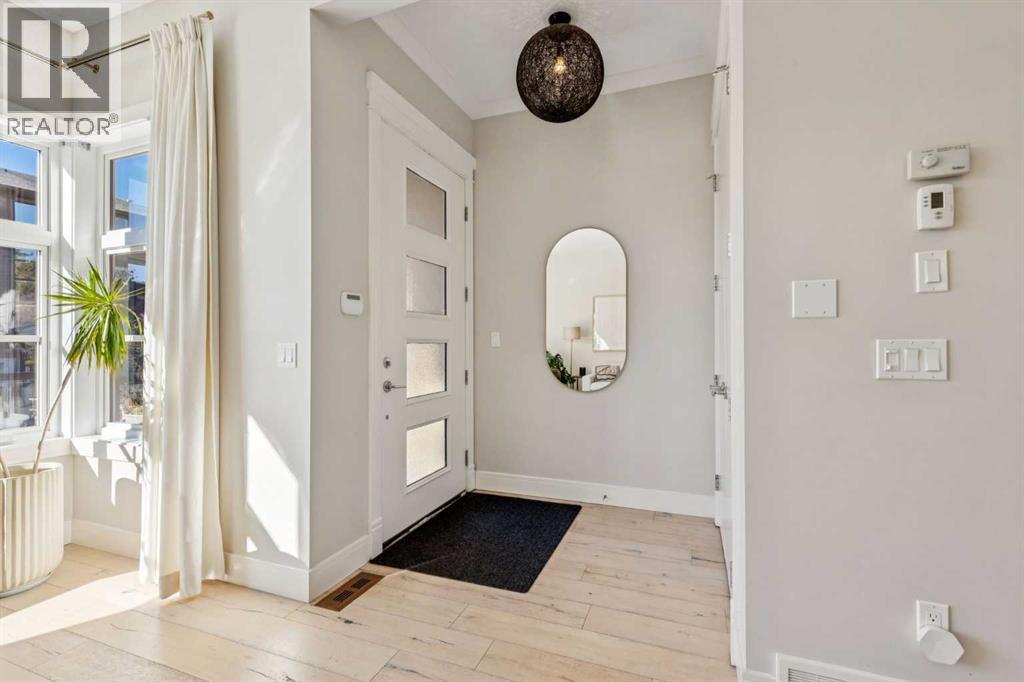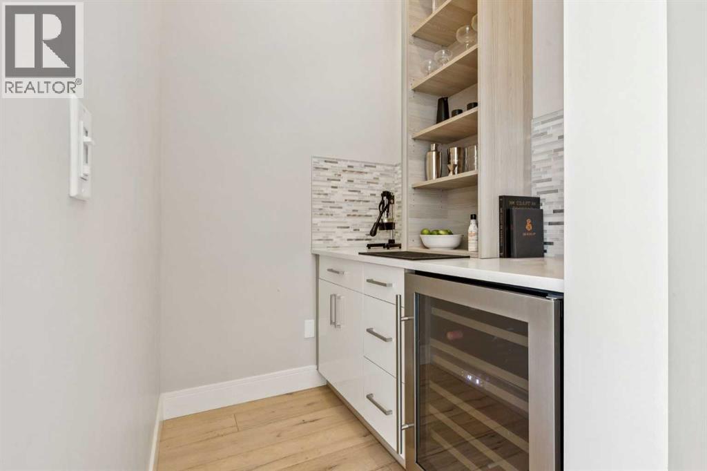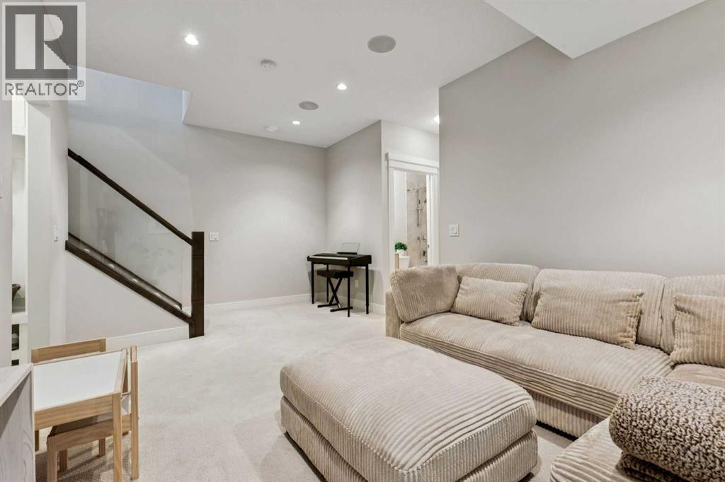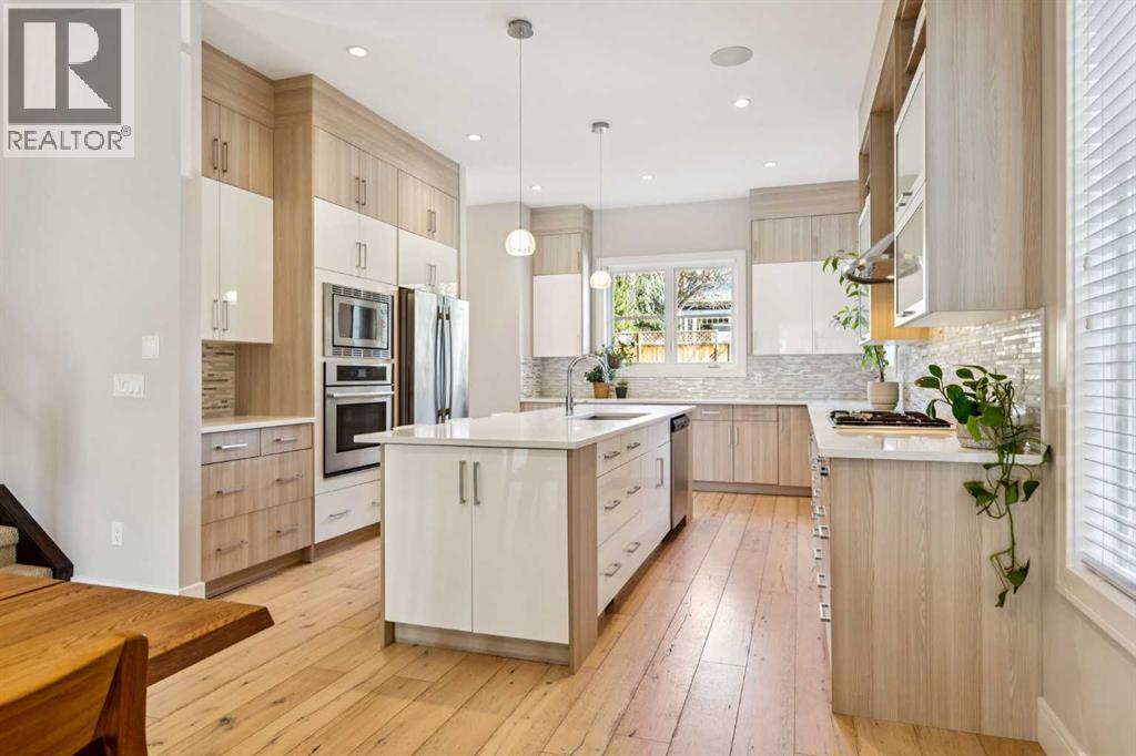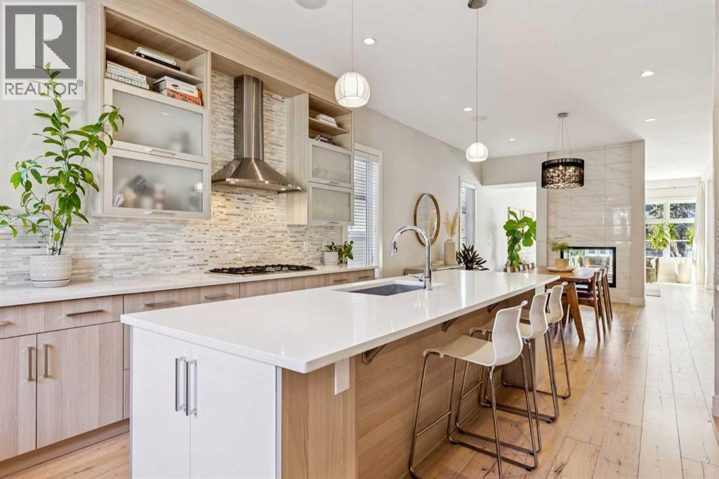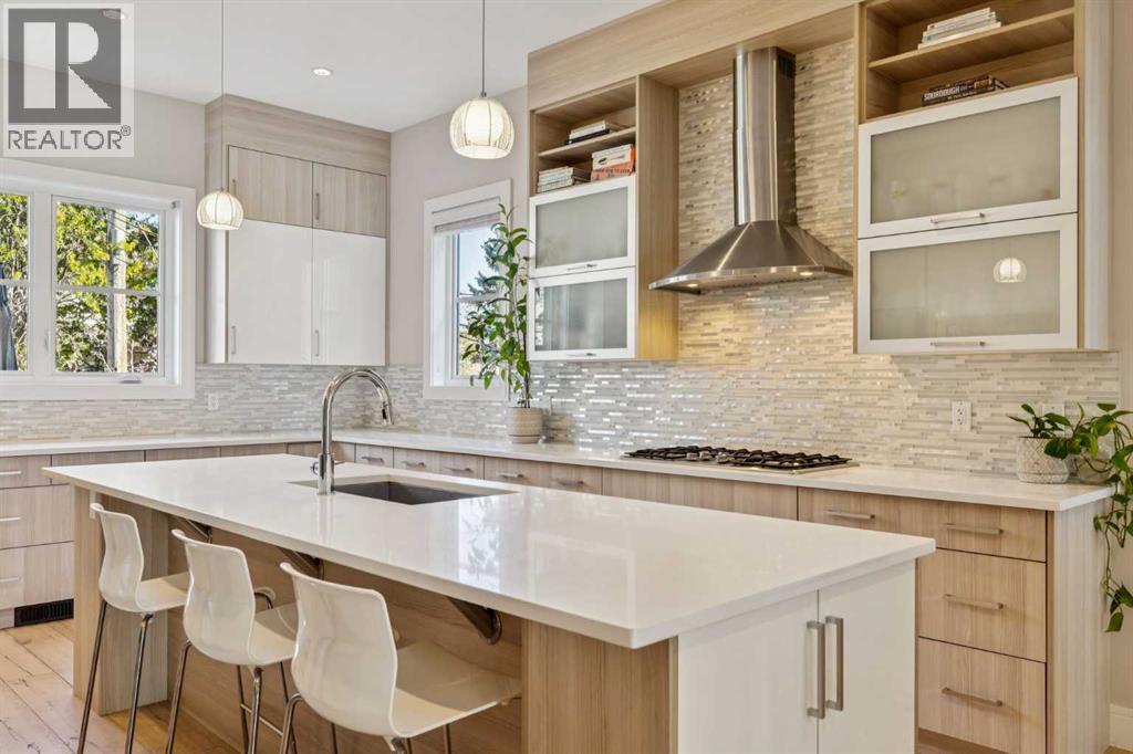 This inner-city infill delivers nearly 3,000 ft² of beautifully designed living space and a rare attached front double garage. Thoughtfully finished with exceptional soundproofing and QUALITY MATERIALS, it’s built for entertaining and everyday comfort. Step inside to 10-ft ceilings, wide-plank hardwood, and a bright, open plan with glass railings and large windows. At the centre of the home, the kitchen impresses with JennAir appliances, a 5-burner gas cooktop, an oversized island with seating, abundant drawer storage, and a dedicated beverage bar with under-counter fridge and shelving, equally suited to morning espresso or evening pours. The spacious dining area flows into the living room, where a two-way fireplace creates a cozy focal point. A walk-in pantry adds storage, while a practical rear mudroom keeps everything organized. Upstairs are three generous bedrooms with custom closet organizers. The luxurious primary retreat features a walk-in closet and a spa-inspired 6-piece ensuite with steam shower, double vanity, and jetted tub. The second-floor laundry room includes a sink and cabinetry for everyday convenience. The lower level expands your living space with a family room, full bathroom, and a versatile guest room with a sizeable walk-in closet. Notable upgrades include built-in speakers throughout, a double-insulated garage, oversized water heater, central air conditioning, rough-in for central vac, and new shingles in 2023. With quick access to downtown, a nearby off-leash dog park, and the boutiques and dining of Marda Loop, this is a rare opportunity on one of Bankview’s signature streets, celebrated for its charm and convenience to the inner city. Schedule your private showing today. (id:55577)