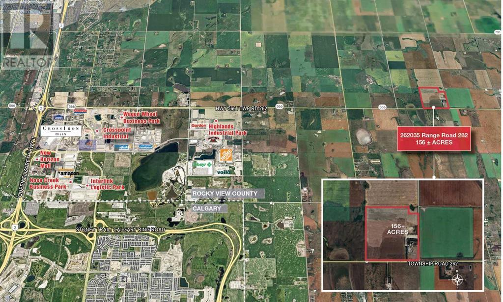 DEVELOPMENT LAND + 2 HOUSES As the surrounding community continues to grow and the demand for logistics and commercial services increases, this parcel of land is ideally situated for future development. Potential for additional 140± Acres to be purchased - the site to the West also available for sale. The subject site is located east of Balzac, Rocky View County, AB, which has seen significant growth and development in recent years.About a 20 minute drive from Airdrie, AB and 18 minutes from Calgary, AB. Close proximity to some major commercial developments, including CrossIron Mills shopping centre, various industrial and logistics parks and retail developments, offering future potential for various types of developments if the parcel is rezoned.Quick and easy access to Crossiron Drive, Dwight McClellan/Metis Trail, Stoney Trail (Calgary ring road) and QE 2, as well as the Calgary International Airport. The Location Development Potential Property Details Driving Times FOR SALE | 156 ACRES ± (id:55577)