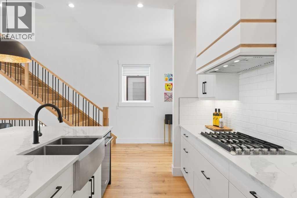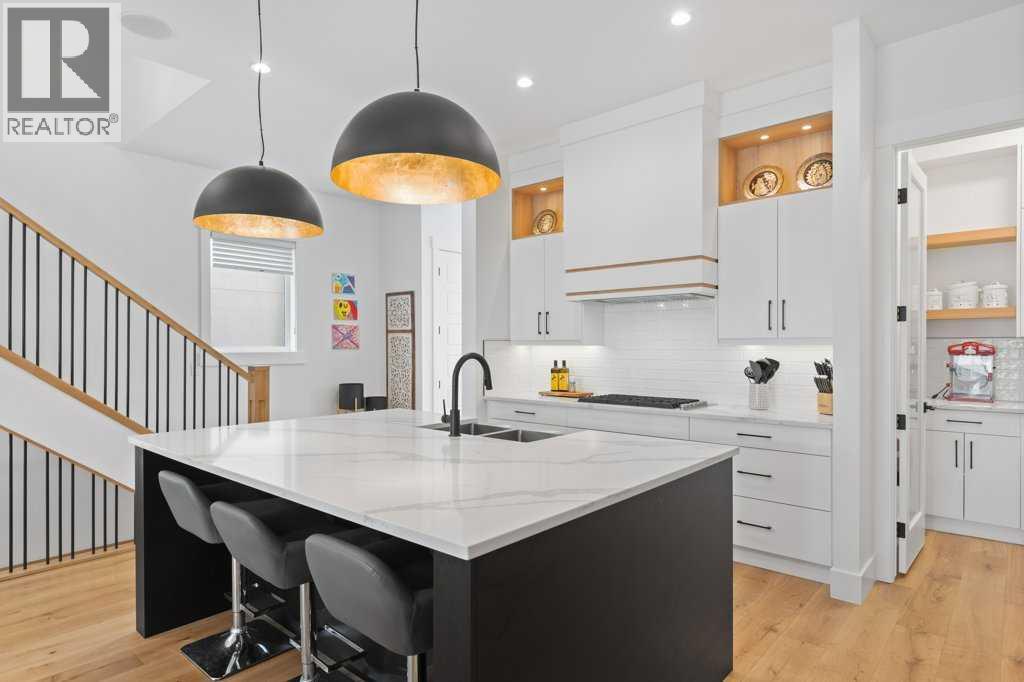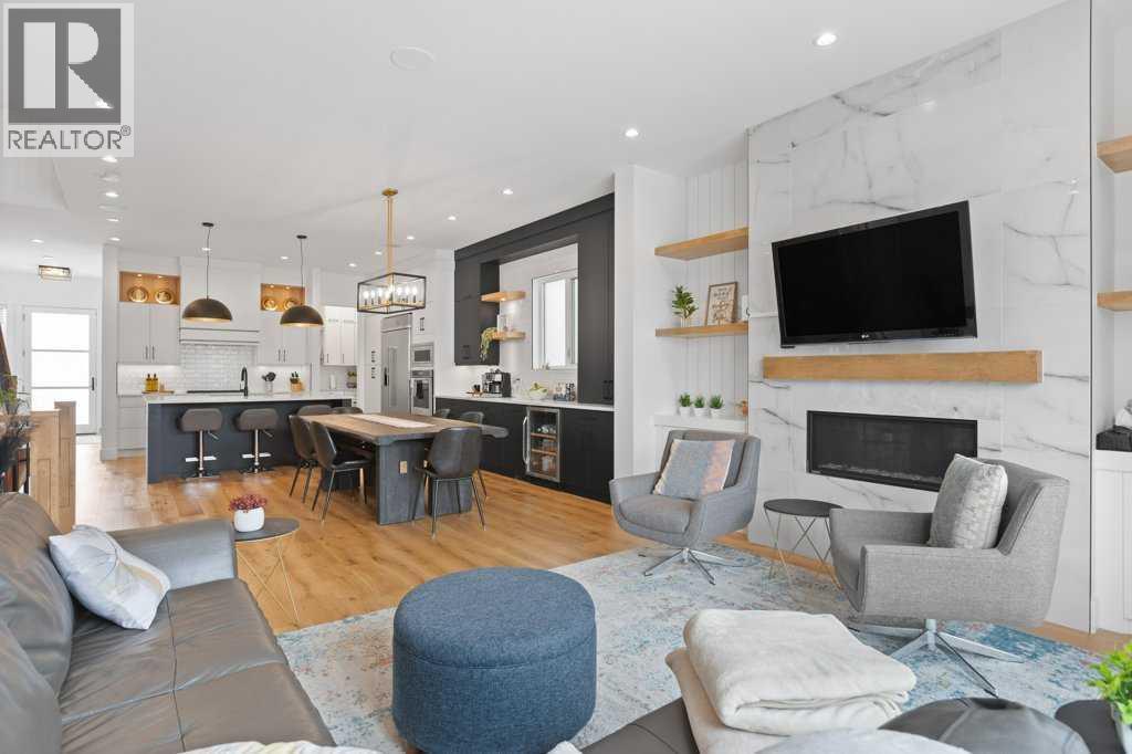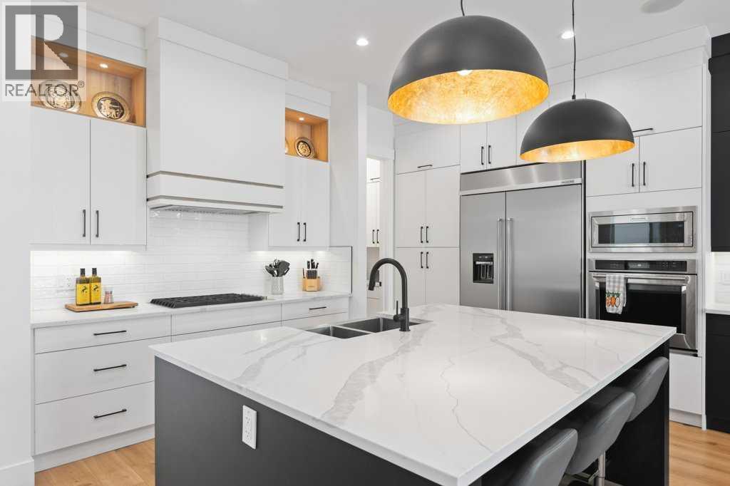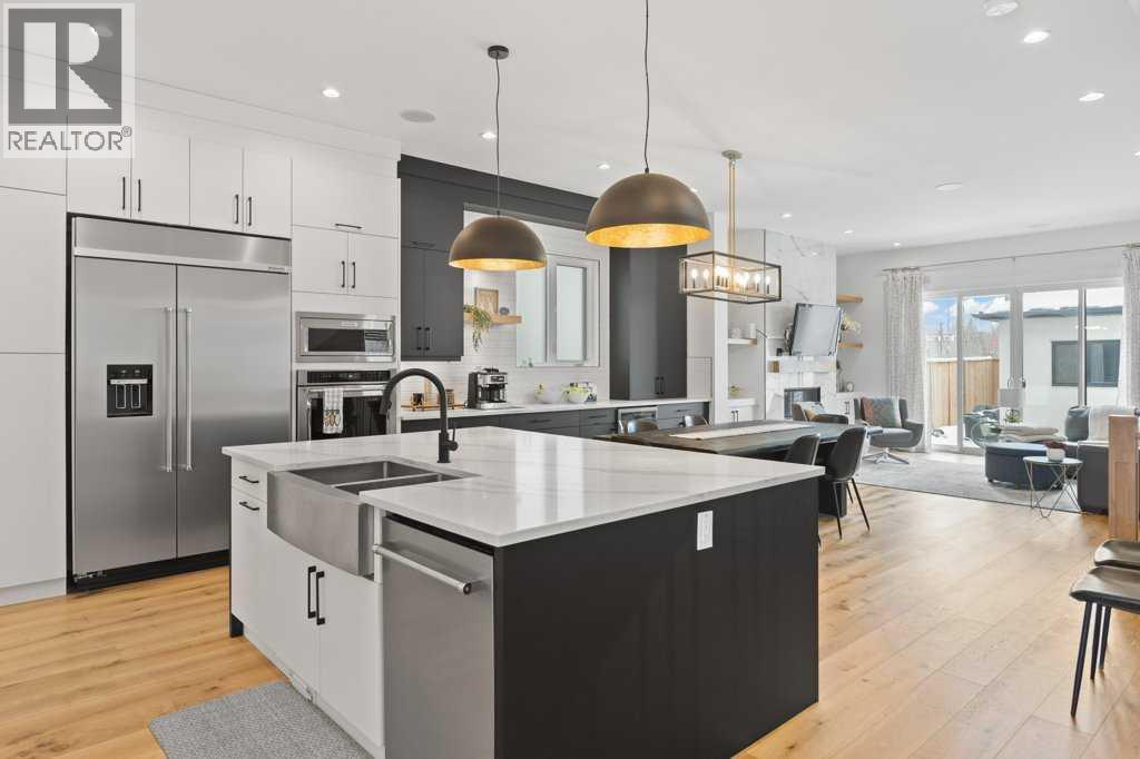 Incredibly stunning 5 bedroom, 3.5 bathroom home offering over 3,440 sq. ft. of meticulously designed living space on a rare inner city lot with sunny west-facing backyard. Thoughtfully crafted with high-end finishes this home is perfect for all types of families! Step into the chef-inspired kitchen featuring quartz countertops, a built-in gas stovetop, built-in oven and microwave, an oversized island, and a double-wide refrigerator, this kitchen is a true showstopper. A walk-in pantry ensures ample storage, while oversized windows flood the main floor with natural light. Cozy up in the living room that is enhanced by a tiled fireplace with custom mantle & built ins. The massive mudroom is designed for organization, offering plenty of storage to keep everything in place. A wide feature staircase with modern spindles, leads to the upper level, where you'll find the primary retreat where you will find a serene escape with a spa-like ensuite featuring a soaker tub, oversized shower, and double vanity. This level also boasts 2 additional spacious bedrooms, a bonus room, and a convenient laundry room. Downstairs, the fully developed basement redefines lower-level living with 9-ft ceilings, a large rec room with built-ins, a wet bar, 2 large bedrooms, a full bathroom, and more! Additional features include a double detached garage, central A/C, upgraded window coverings and low maintenance landscaping. If you’ve ever experienced infills that felt too narrow, this home will be a game-changer—wide, bright, and beautifully designed. Don’t miss out—schedule your private showing today! (id:55577)