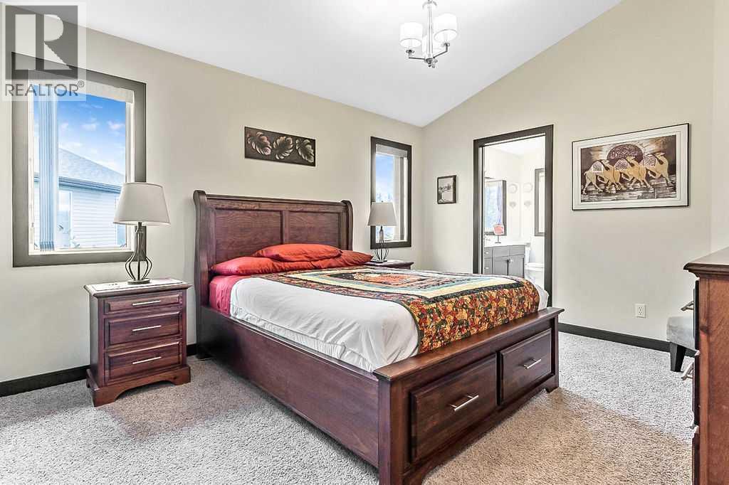 *** OPEN HOUSE SATURDAY APRIL 4th, 12-2 pm *** Beautiful, fully finished walkout bungalow with a mountain view and backing onto green space. This home features vaulted ceilings, maple hardwood flooring, 2 skylights, a fireplace, and a firepit area in the professionally landscaped back yard. Imagine coming home to a fabulous neighbourhood and relaxing on the rear deck or the ground level patio enjoying the trees, wildlife and even a view of the mountains. Then you could load up your golf clubs and head over to the Turner Valley Golf Club only 5 minutes away for a fantastic round of golf, or put on your walking shoes and head out on the walking path which could lead you to a river bottom adventure, or walk/cycle to the post office and grocery store. Kananaskis Country is also only 15 minutes away with camping, hiking, mountain biking and picnic areas. Back in the house you will find a new Water Softener and RO drinking system, there is also a tankless hot water system and in floor heat in the basement. On the roof you will find an array of 9 solar panels installed in 2024 to help bring down your electricity costs! Both the front porch and rear deck have been upgraded to Composite decking and there are poured concrete steps along the side of the house to the concrete patio at the walkout basement. The windows in the Living room have been replaced with Triple paned units. There is a power hook up for a hot tub at the walkout level. The garage even has a radiant heater! The list goes on and on! Book a showing today to fully appreciate the beauty and location of this home and yard. (id:55577)