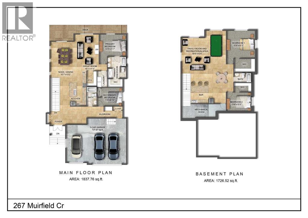 ELIGIBLE FOR FIRST HOME BUYERS GST REBATE- Stunning vaulted walkout bungalow backing onto the canal in the sought-after Lakes of Muirfield, offering 1,838 sq ft on the main level plus 1,727 sq ft in the fully developed walkout lower level. This thoughtfully designed home blends spacious living with a relaxed, country-inspired setting. The main floor is filled with natural light and highlighted by soaring vaulted ceilings and peaceful canal views from the primary living spaces. The kitchen is both functional and inviting, featuring quartz countertops, a large central island, stainless steel appliances, abundant cabinetry, and built-in storage—ideal for everyday living and entertaining. Two bedrooms are located on this level, including a spacious primary retreat with a large walk-in closet and a five-piece ensuite. A second full bathroom and convenient main-floor laundry complete the level. The fully developed walkout lower level extends the living space with two additional bedrooms, a generous recreation area with custom built-ins, and seamless access to the outdoors—perfect for family gatherings, entertaining, or multigenerational living. Enjoy outdoor living with a large deck spanning the full width of the home, overlooking the canal and surrounding pathways. An oversized triple garage provides ample room for vehicles, storage, and recreational toys. Located in a quiet, welcoming golf-course community, residents enjoy access to scenic walking trails, lakeside pathways, private community greenspaces, and the Muirfield Golf Club. With serene canal and waterway views right from your backyard, this home offers a rare combination of comfort, functionality, and community charm. (id:55577)