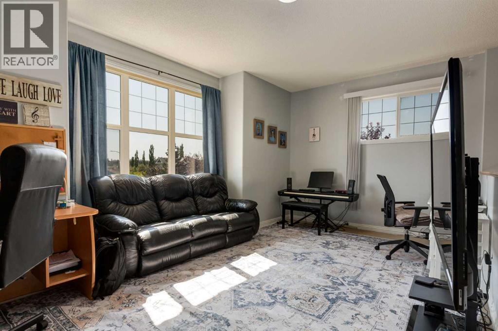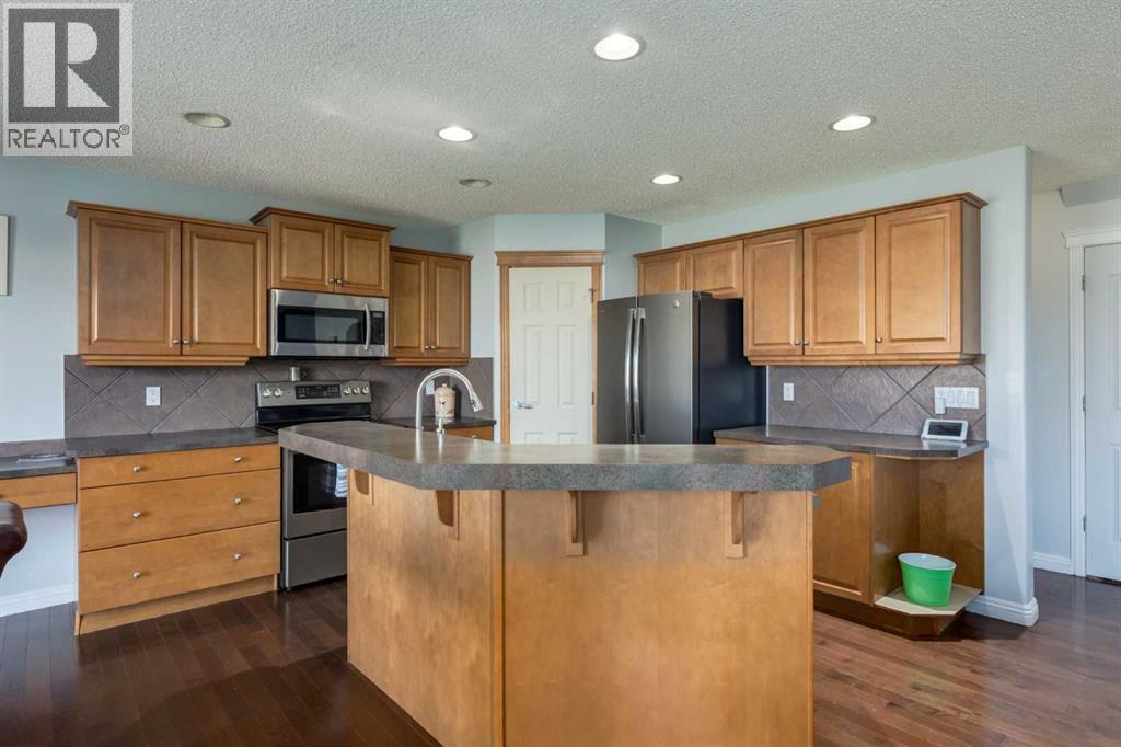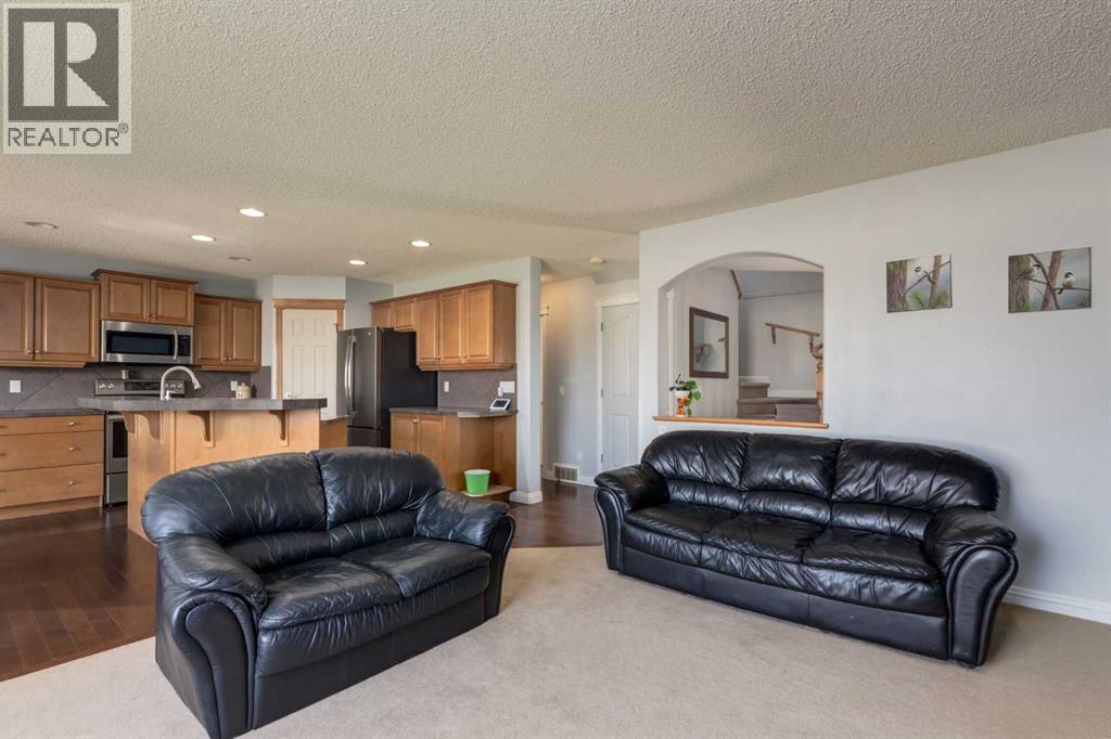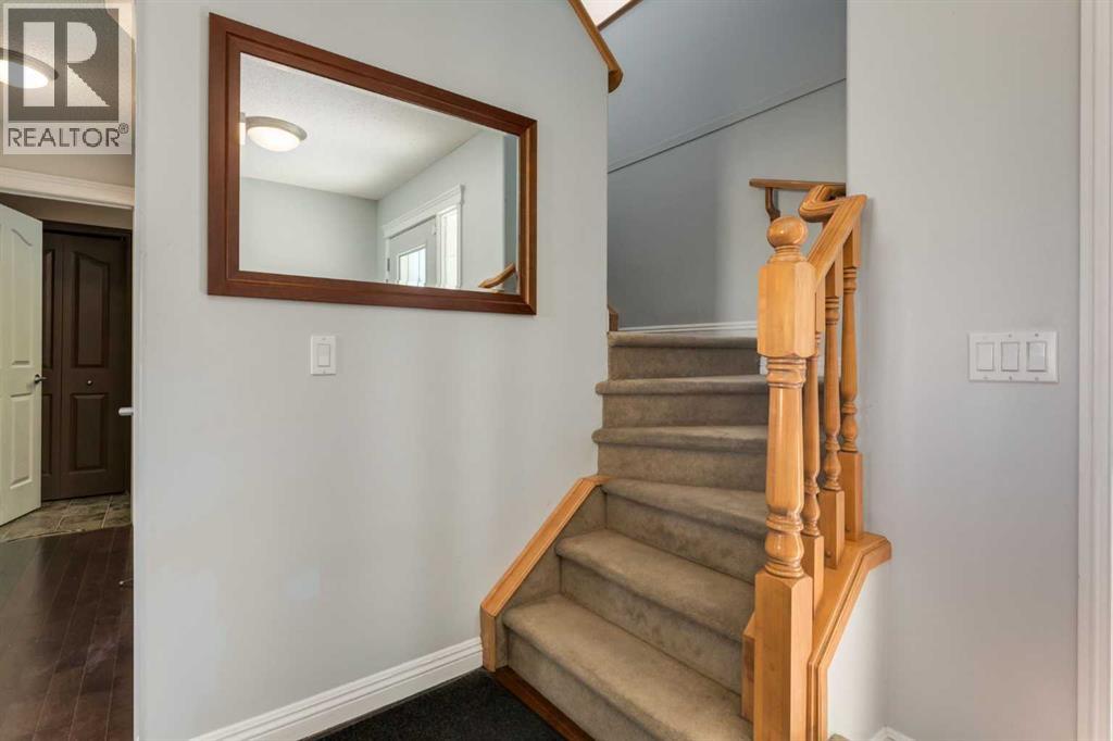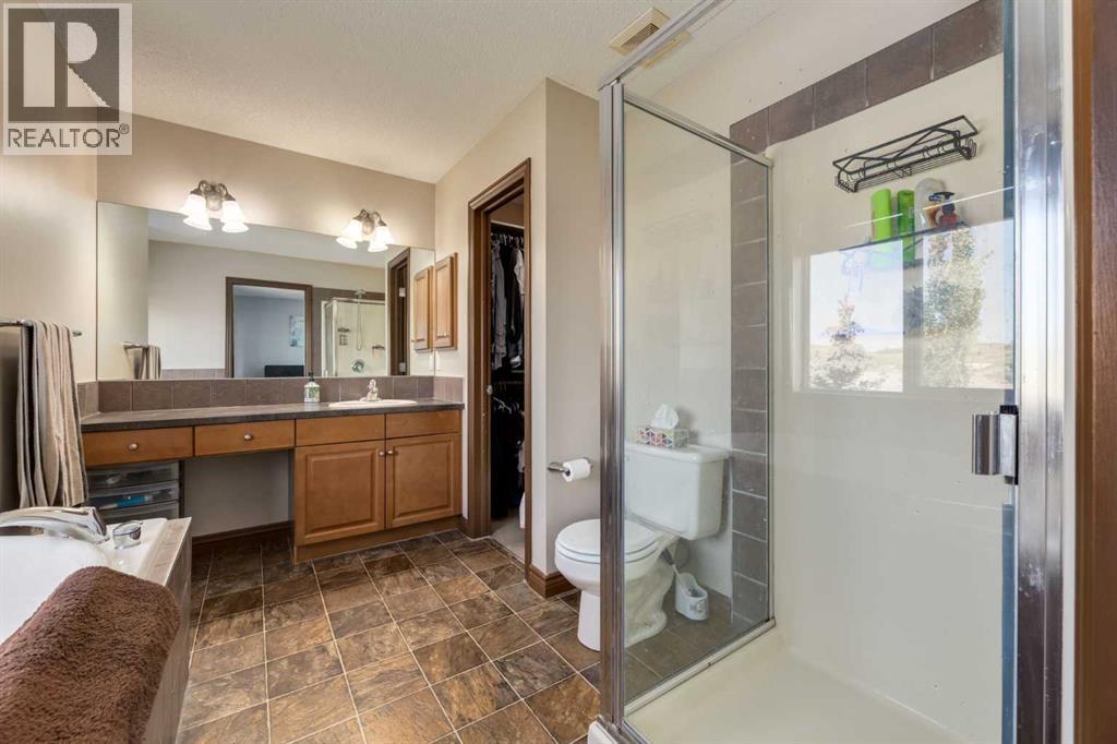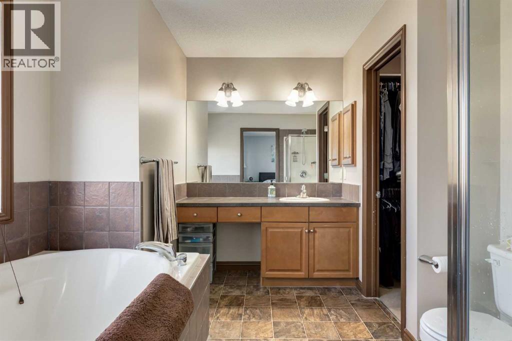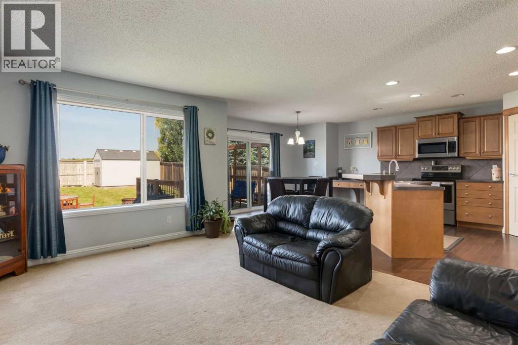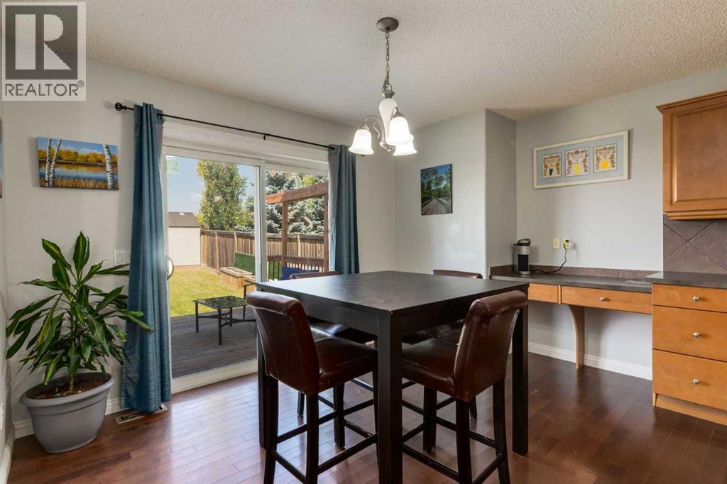 Situated on an oversized lot with a fully fenced backyard, this residence is ideal for those who appreciate outdoor living as much as the warmth of a well-appointed interior. The heart of the home begins in the kitchen, where raised breakfast bar seating invites casual conversations while stainless steel appliances, a corner pantry, and ample cabinetry make cooking both practical and enjoyable. A built-in desk space adds versatility, perfect for homework, meal planning, or a tidy home office nook. The adjoining eating area opens directly to the back deck, creating seamless indoor-outdoor living and easy access to summer barbecues or enjoying your morning coffee. Overlooking it all is the welcoming living room, anchored by a fireplace with a tile surround and wooden mantle. Large windows flood the space with natural light while framing views of the expansive backyard, a true retreat featuring a fire pit for cozy evenings, a storage shed, and plenty of room for gardening, play, or entertaining. A 2pc powder room and main floor laundry complete this main level. Upstairs, a spacious bonus room offers endless possibilities—a playroom, media lounge, or quiet retreat. The primary suite is a haven of its own with a large bedroom, walk-in closet, and a 4-piece ensuite boasting a soaking tub and separate stand-alone shower. Two additional bedrooms share another 4-piece bathroom, completing a family-friendly upper level. The fully developed basement extends the living space with an open family room and wet bar—perfect for game nights or hosting friends. A fourth bedroom and full bathroom ensure comfort and privacy for guests or older children. Additional features include a newer roof in 2022. From its functional layout to its inviting outdoor spaces, this home is designed to meet the needs of modern living while offering plenty of room to grow, gather, and create lasting memories. (id:55577)