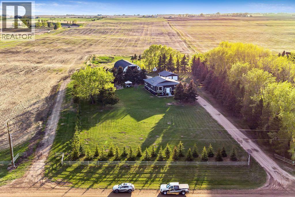 Live, work, and play on this 40 Acre parcel just minutes from Airdrie and Calgary. This beautiful property is zoned Agricultural providing endless opportunities for a home-based-business set up. Two tree-lined driveways into the property for direct access to the house/garage or the shop (Quonset). The exterior has been updated with new siding and the shingles were replaced approximately 5 years ago. A gated cul-de-sac gravel driveway leads you to the home with ample parking for the family with multiple vehicles or RV. The yard space around the home is well groomed with mature trees, planter beds and plenty of room for play or for your very own garden! As you enter the home you're greeted with a BRIGHT SUN ROOM with loads of windows & great outdoor patio space overlooking your private oasis. Fully finished Bi-level with 5 Bedrooms + 3 Bathrooms + Upgrades Galore + FULL ILLEGAL SUITE with private entrance to the basement. A perfect mother-in-law suite (Illegal, subject to approval and permitting by the city/municipality) or mortgage helper with a tenant/longer term guest. The home offers a spacious layout and plenty of room for the growing family. The main floor has 3 bedrooms and 2 full bathrooms. Large open concept kitchen with MASSIVE ISLAND, full set dining area and plenty of cupboard/counter space. Functional and bright living area with gas fireplace and again loads of natural light. A spacious primary bedroom with great views of the mature surroundings. An ultimate entertainment space in the Basement; full kitchen, TV area, flex room which can be used as an office or home gym, 2 more good-sized bedrooms, full bathroom and endless storage. There have been many recent upgrades including new tile and backsplash in the kitchen and bathrooms, granite countertops, huge butcher block island with storage, appliances, new tubs and toilets, all new windows in the lower level, new furnace and more! Beautiful vinyl planks are also new throughout the entire home. Limitless windows allow in plenty of natural light and spectacular views from all directions! The property is fully fenced, offers an outdoor firepit, SPA/HOT TUB with covered roof and multiple outdoor sitting areas. The property also has a 40' X 80' heated Quonset with an office/bathroom and heated floors. A 24’ x 34’ double detached heated garage with a workshop. The property features a new septic system for years of worry-free ownership, also a well offering a good flow rate. This gorgeous turn key farm is waiting for you! Just some of the other great features include: New septic tank, new additional 200-amp pole, 3 x 300-gallon fuel tanks, poured concrete walking paths & more. This is an ABSOLUTE MUST SEE! If you're looking for a property with income earning potential, a place to live and work in an unbeatable location this is the one for you! (id:55577)