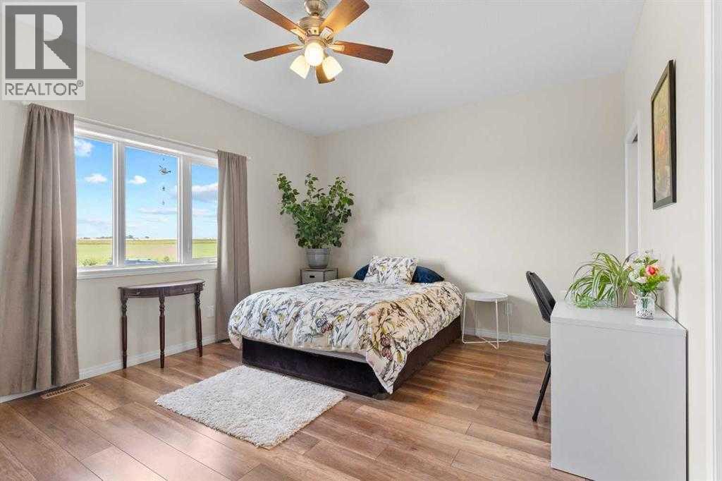 This beautiful 2,500 sq. ft. two-storey home, built in 2020, is located on a sprawling 50.14-acre parcel just East of Olds on Highway 27. As you enter, you're welcomed by an open concept layout with 9-foot ceilings. The living room features a cozy gas fireplace, perfect for those chilly evenings. The kitchen boasts ample cabinetry, a large walk through pantry, a movable island, and access to an East facing deck showcasing gorgeous views of the ravine. The main floor also includes a mudroom with laundry, a 2 pce bathroom, large bedroom with 4 pce ensuite with walk in closet (could be used as a main floor master) and access to a large attached garage (24x31). Upstairs, you'll find a spacious family room, ideal for kids or a secondary living area, along with four bedrooms. The master bedroom offers a spa like ensuite with a separate tub and shower. The upstairs is completed with a 4 pce main bathroom. The home includes a total of five bedrooms and 3.5 bathrooms, providing plenty of space for family and guests. The full, unfinished basement is framed and ready for your personal touch, with a roughed in bathroom and utility room featuring an oversized hot water tank and water softener. Outside, enjoy the tranquility of a garden area, fruit trees, raspberries and a natural treed area in the coulee, making this home very private. The property currently has 19 +/- cultivated acres producing and recent addition of a 16 x 24 Garage on skids. You don't want to miss calling this property your own!! Book your showing today!! (id:55577)