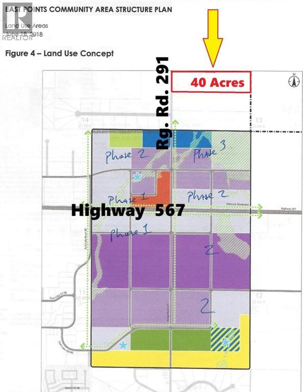 Opportunity knocks! 40 Acres on pavement INSIDE northeast Airdrie City Limits, north of the East Points Area Structure Plan and across from future 185 acre Airdrie Regional Park and Croxford Estates. Panoramic West Views! 660 foot frontage onto paved Range Road 291 (future Airdrie main route). Ideal for home business (by permit), mini ranch or variety of permitted and discretionary uses. Features a 1,505 sq.ft. fully developed bungalow with heated oversize attached garage. Bright open plan with a spacious great room with vaulted ceiling and fireplace, formal dining area, and roomy kitchen with nook and covered deck access. Lower level is fully developed with bedroom, full bath, large den, and spacious living area. Includes major appliances and window coverings. Ideal for animals or home business with detached heated 28' x 30' shop with box stalls and 10' x 25' storage shop. Highway 2 north, east on Highway 567, north on paved Range Road 291. Cabin in back trees also for sale. GST may be applicable. (id:55577)
