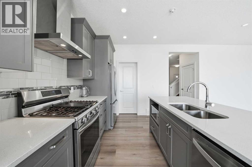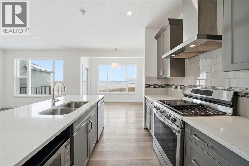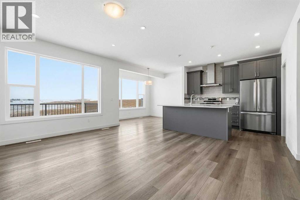 Welcome to this beautiful home offering FOUR bedrooms, a WALK-OUT basement, an enormous backyard, and a thoughtfully designed layout for modern living. Both the main floor and basement feature 9-foot ceilings, complemented by luxury vinyl plank flooring and expansive windows that fill the home with natural light. The kitchen is equipped with quartz countertops, a large central island, stainless steel appliances, a gas range, and an upgraded chimney-style hood fan, and flows seamlessly into the spacious living room featuring an electric fireplace and oversized windows. A versatile main-level room provides the perfect space for a home office, guest room, or flex area. Upstairs, the spacious primary bedroom offers a private ensuite with dual sinks, a walk-in shower, and a HUGE walk-in closet. Three additional bedrooms, a full bathroom with dual vanity, a central bonus room, and a convenient upper-floor laundry area complete the upper level. The walk-out basement features a 9-foot foundation and bathroom rough-ins, offering exceptional potential for future development and the opportunity to expand the total living space to nearly 3,000 sq. ft. A double attached garage with gas and 220V electrical connections adds everyday convenience and flexibility. Don’t forget to check out the enormous backyard, rarely found in newer communities, providing endless possibilities for a fire pit, trampoline, gardens, and more. Located in the growing southeast community of Belvedere, this home is within walking distance to parks, shopping, dining, and entertainment at East Hills Plaza. A fantastic opportunity to own a nearly new home in a vibrant and convenient location. Book your viewing today! (id:55577)