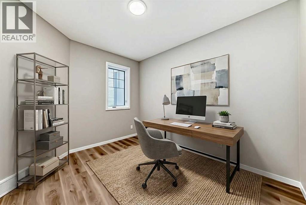 Welcome to the “Grada” by Hopewell Residential—where contemporary design meets family-friendly functionality in the vibrant community of Hotchkiss. This beautifully crafted home spans 2,112 sq. ft. and offers 3 spacious bedrooms with a layout designed to make everyday life feel easier, brighter, and more connected. Step inside and you’ll immediately feel how the main floor is built for real life. Just off the entry, a versatile flex space with a glass insert door is perfect for a home office, playroom, homework zone, or quiet retreat. The heart of the home opens up into an inviting dining area and lifestyle room that flow effortlessly for both daily routines and entertaining. The soaring open-to-above living room adds a wow factor with an airy, light-filled feel, and large windows keep the space feeling fresh from morning to evening. At the center of it all, the kitchen is designed to impress and perform. You’ll love the upgraded layout with a stylish chimney-style hood fan, built-in microwave, extra storage drawers, elegant quartz countertops, and a large island that anchors the space for casual meals, coffee catch-ups, or hosting friends. The two-tone cabinetry is a standout feature, with wood grain upper cabinets extended to the bulkhead and crisp white lower cabinets, paired with a classic subway tile backsplash for a clean, timeless look. Thoughtful upgrades continue with black interior hardware and knockdown ceiling textures, adding a modern edge throughout. The entertainment potential extends outdoors with a walkout lot and a generous 15’ x 10’ deck—perfect for summer dinners, morning coffee, or relaxing at the end of the day. An exterior gas line is already in place for a future BBQ, making it easy to enjoy Calgary’s long warm evenings. Upstairs, you’ll find three spacious bedrooms, including a luxurious primary suite featuring a step-in shower—your own private retreat. The additional bedrooms are the perfect size for the growing family and served by a beaut iful full bathroom, while the upper-floor laundry room is perfectly placed to keep day-to-day life running smoothly. Downstairs, the walkout basement is ready for your future plans with a 9-foot foundation, offering the opportunity for added living space or a potential mortgage-helper suite (a secondary suite would be subject to approval and permitting by the city/municipality). Located in southeast Calgary, Hotchkiss offers stunning mountain views, 51 acres of park space, walking pathways, and a beautiful central wetland. Designed with families in mind, this community delivers the green space, connectivity, and lifestyle that make it easy to settle in and feel at home. Discover the next chapter of your life with The Grada. (id:55577)