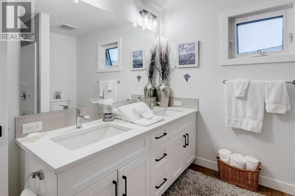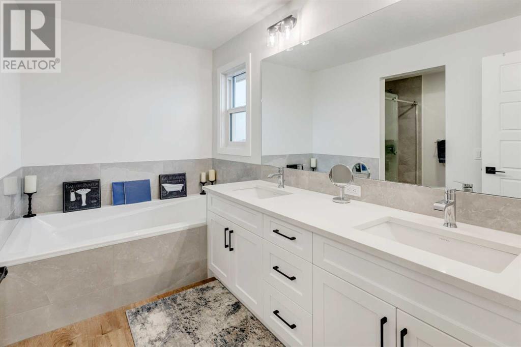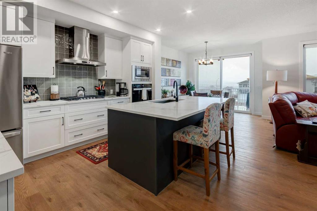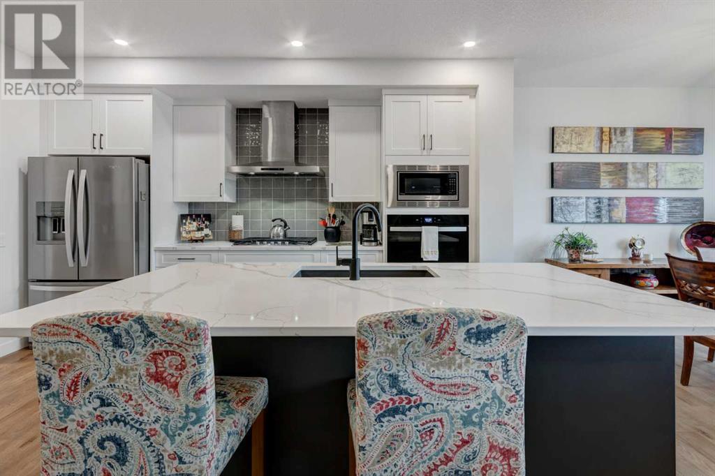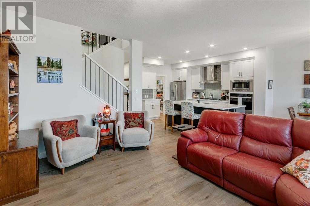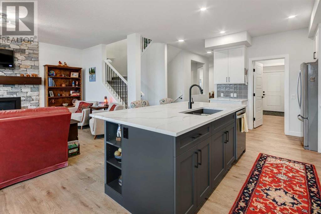 Discover your dream home in the heart of Rivercrest, Cochrane, with this stunning 2024-built, 2-storey detached home, offering 2,266 sq ft of modern elegance. Perfectly situated between Calgary and Banff for quick mountain getaways, this spacious 2.5-bath residence features 4 generous bedrooms upstairs, a versatile bonus room ideal for a playroom or media space, and a gourmet kitchen with quartz countertops, two-tone cabinetry, high-end stainless steel appliances, and a convenient walk-through pantry for effortless storage. The main level boasts chic luxury vinyl flooring and soaring 9-foot ceilings, while the unfinished walkout basement offers a blank canvas for your personal touch. Cozy up with two beautifully designed fireplaces, adding warmth and ambiance. The bathrooms feature elegant quartz countertops, with the primary ensuite showcasing a luxurious double vanity, and an upper-level laundry room adds everyday convenience. Step outside to a treated deck, perfect for enjoying the scenic surroundings. Ideally located across from a future school and nestled in one of Cochrane’s most sought-after communities, this home combines luxury, functionality, and an unbeatable location—ready to welcome you home! (id:55577)