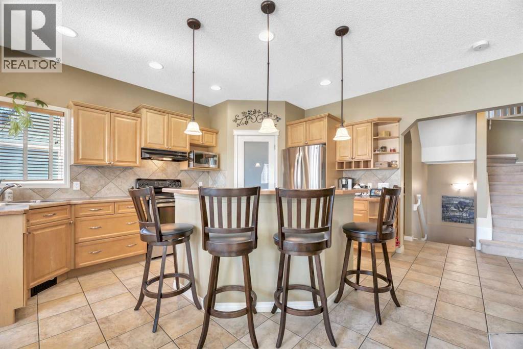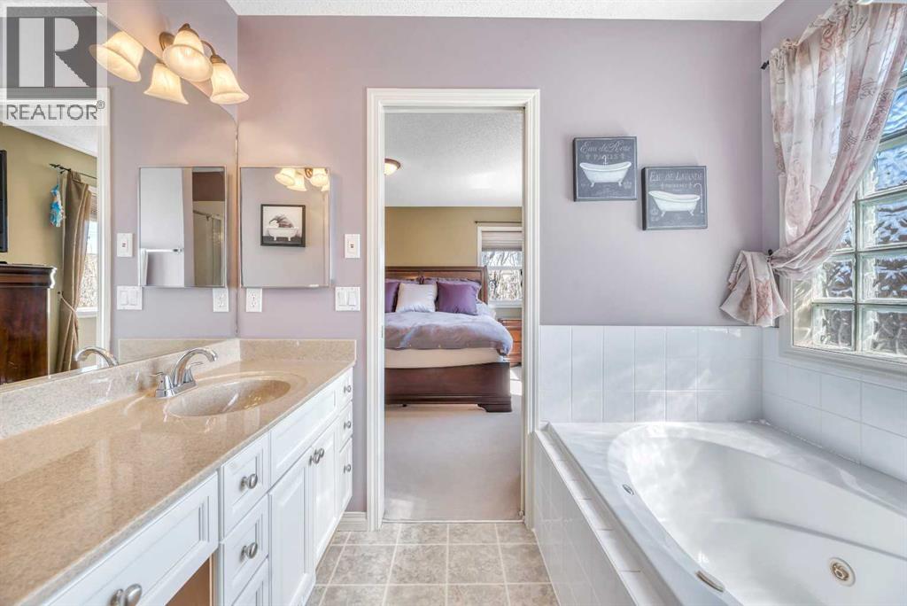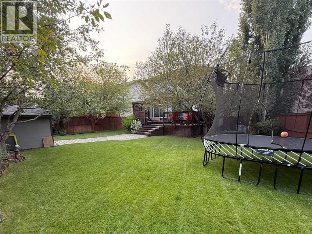 WOW! If you have been waiting for an immaculate home, with a HUGE LOT in a great location, with access to all of the benefits that Chaparral Lake has to offer, then you don't want to miss this one. With over 2500 sq ft of developed living space and an excellent floor plan, it is the perfect home for a growing family. The main floor features: a spacious foyer with a built-in bench to relax while changing footwear; a large living room with a gas fireplace; a dining room where you will enjoy your homemade "Poached Pear Dessert" from your own pear tree in the south facing backyard; a terrific kitchen with lots of cabinet & counterspace, a corner pantry, and a center island with a breakfast bar, all open to the main living space; main floor laundry and a 2 piece power room. The upper level features a great family room with lots of room to sit back and enjoy your favorite show or for the kids to play; 3 bedrooms including a very large primary suite with a jetted tub and a large walk-in closet; 2 secondary bedrooms for the kids and a 4 piece main bathroom. If you are an active family or a yard person, the huge backyard is a dream come true. Beautifully landscaped, with numerous trees for privacy and open spaces for recreational activities including room for a "Hockey Rink", you will have a tough time finding another one like this. If someone in the family enjoys puttering in their garage, there is even hot and cold water available in the garage. The current owners and their family have enjoyed this lovely home for many years, carefully maintaining and improving it over time: New Roof Shingles on the House and Shed, Siding, Garage Door, Exterior house trim painted, all in 2022; New Hot Water Tank in 2024, Humidifier, Air Conditioning, Kinetico Water softener & Reverse Osmosis system. This is one of those special properties that don't come along very often and combined with all of the amenities and enjoyment of living in a lake community make this home a must see! (id:55577)