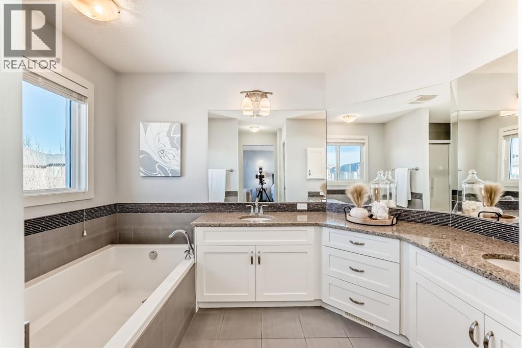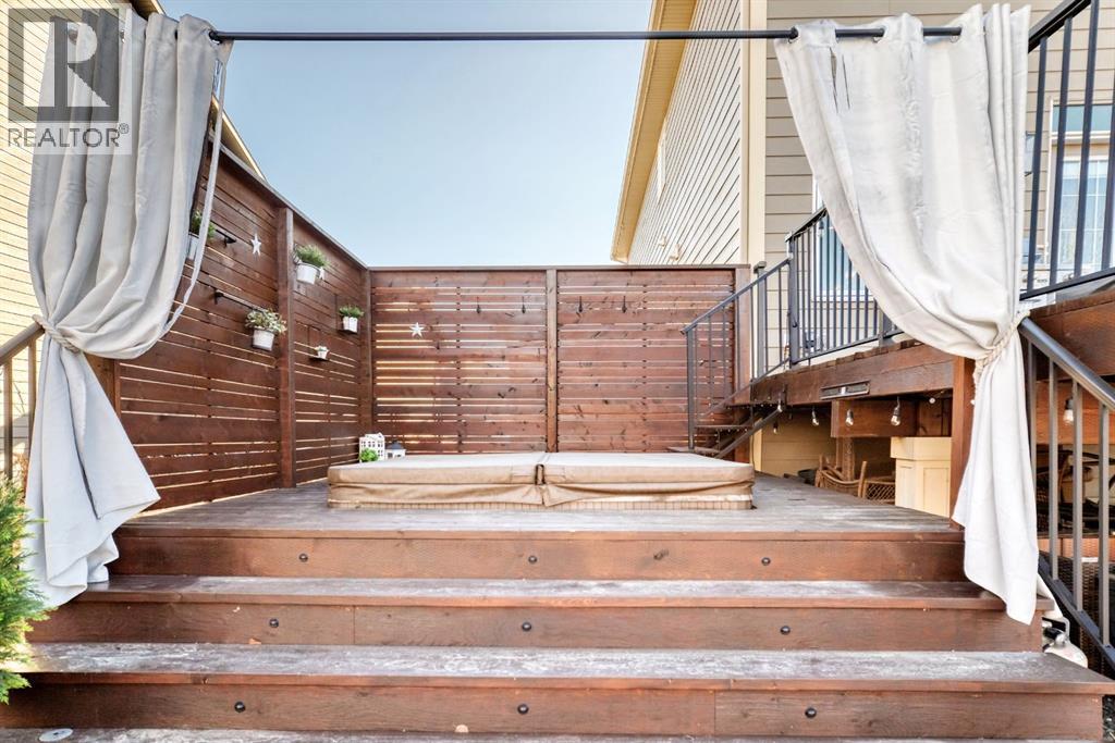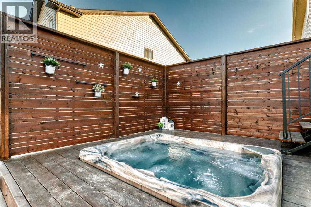 GORGEOUS ESTATE HOME | 4 BEDROOMS UP | TRIPLE GARAGE | INCREDIBLE BACKYARD | CUL-DE-SAC LOCATION | Stylishly appointed and impeccably maintained, this stunning 4 bedroom home offers the perfect blend of elegance, comfort & functionality…tucked away in a quiet cul-de-sac location. Step inside to discover a bright, open-concept layout featuring expansive windows, designer finishes, and thoughtfully designed living spaces ideal for both everyday living and entertaining. The inviting main floor showcases a beautifully styled living room with gas fireplace, a spacious dining area that opens to the large tiered deck, and a chef inspired kitchen…complete with beautiful white cabinetry (full height), contrasted with an elegant & dramatic custom tile backsplash, premium stainless steel appliances including an induction cook top, built-in oven & microwave and a wine fridge…plus granite countertops, a walk-through pantry & a large island perfect for entertaining! There is an open flex room, spacious foyer, 2pc powder room, & large mudroom with dual closets to complete this main level. The staircase to the upper level features a charming vignette with custom niches, built in deacons bench & a striking trio of windows! The upstairs is host to a central bonus room with an abundance of windows & natural light, and showcases a vaulted ceiling creating a bright & expansive sense of space! The sophisticated master bedroom, with vaulted ceiling, is generous in size, and offers a 5pc ensuite with granite counters, dual undermount sinks, soaker tub & oversized shower…plus there is a walk-in closet with custom built-ins! There are 3 additional bedrooms, with two sharing a well designed Jack & Jill bathroom offering a huge vanity with dual undermount sinks, a pocket door for added privacy to the tub & toilet area as well as a linen closet! Finishing this upper level is a convenient laundry room. You will love the backyard…fully fenced & landscaped, your oasis awaits! The upper deck is finished with steps down to either the large stamped concrete patio on the one side, or to the lower tiered deck with built-in hot tub, privacy screens & curtains on the other side…the perfect place to relax at the end of a long day!! The lower tiered deck is also finished with custom lighting in the staircase that creates a stunning night time effect! There are mature trees & shrubs…plus large side yard for seasonal storage or shed! The triple garage is great…fully insulated & drywalled, and there is a separate man door that opens to the yard! Other extras include central A/C, circulating hot water throughout the home, LVP flooring, 9’ ceilings, wrought iron railing & many more upgrades! (id:55577)