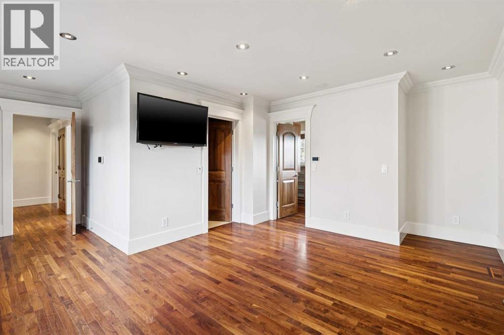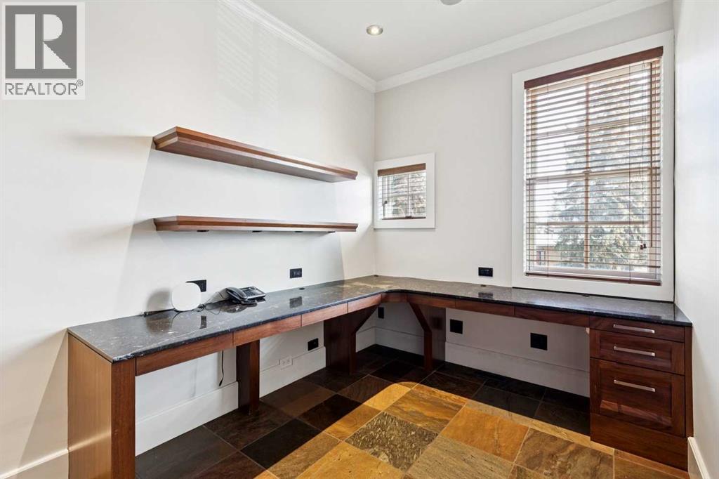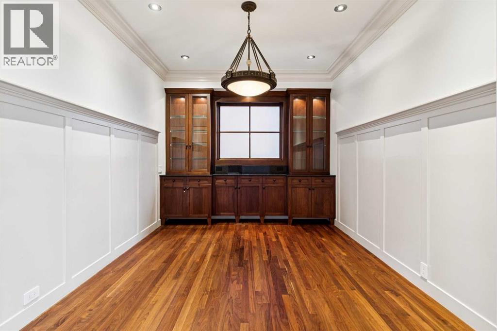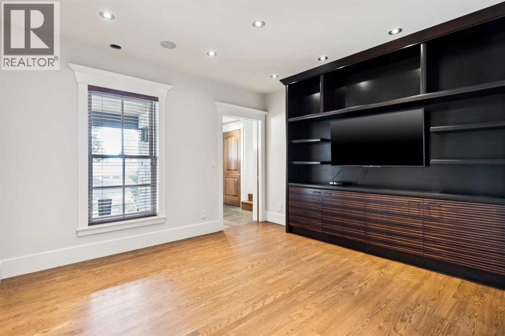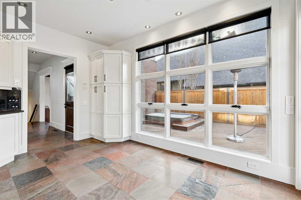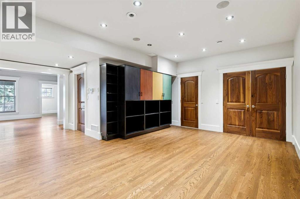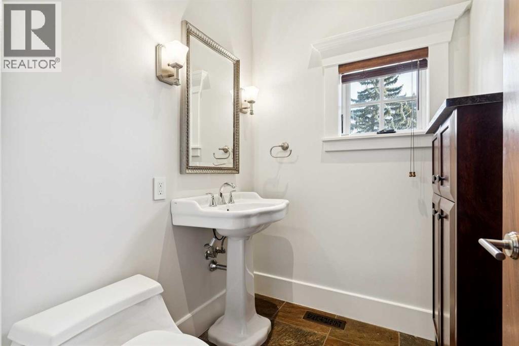 Situated in the highly desirable community of Mount Royal, this fantastic four-bedroom family home offers an exceptional lifestyle with walkability to all levels of schooling, including Earl Grey Elementary + Western Canada High School + an easy stroll to the Glencoe Club. The classic brick + stucco exterior is complemented by a large double attached garage + additional laneway parking beyond the backyard.The main floor is highlighted by a dynamic, expansive living room with dramatic beamed ceilings + a wood-burning fireplace framed by floor-to-ceiling stone. Flooring throughout the home is carpet-free, primarily showcasing hardwood + the interior has been freshly painted. A main-floor office features a built-in desk + an integrated storage system, while the designated formal dining room includes a built-in china cabinet for timeless entertaining.The legacy kitchen offers generous counter space + abundant cabinetry, complete with an island + a very spacious informal dining area with windows overlooking the expansive deck. Patio doors lead to a spectacular, flat, treed + landscaped west-facing backyard, creating an ideal setting for both everyday living + entertaining. The outdoor spaces truly shine with a huge deck equipped with a hot tub, making this an excellent home for indoor + outdoor living.Upstairs, you’ll find four very spacious bedrooms, a convenient laundry room + renovated bathrooms. The primary bedroom offers a 5 piece ensuite bath + dressing room complete with built in dressers. Two mudrooms enhance functionality for busy family life, with one located on the main floor + a second conveniently positioned off the attached under-drive garage with snowmelt. The lower level offers a huge family room/games area with built-in bookshelves + recently refinished hardwood flooring. This very bright, Air conditioned family home is available for quick occupancy. (id:55577)