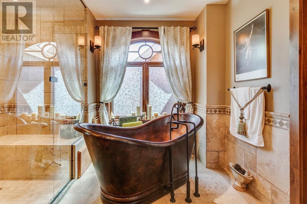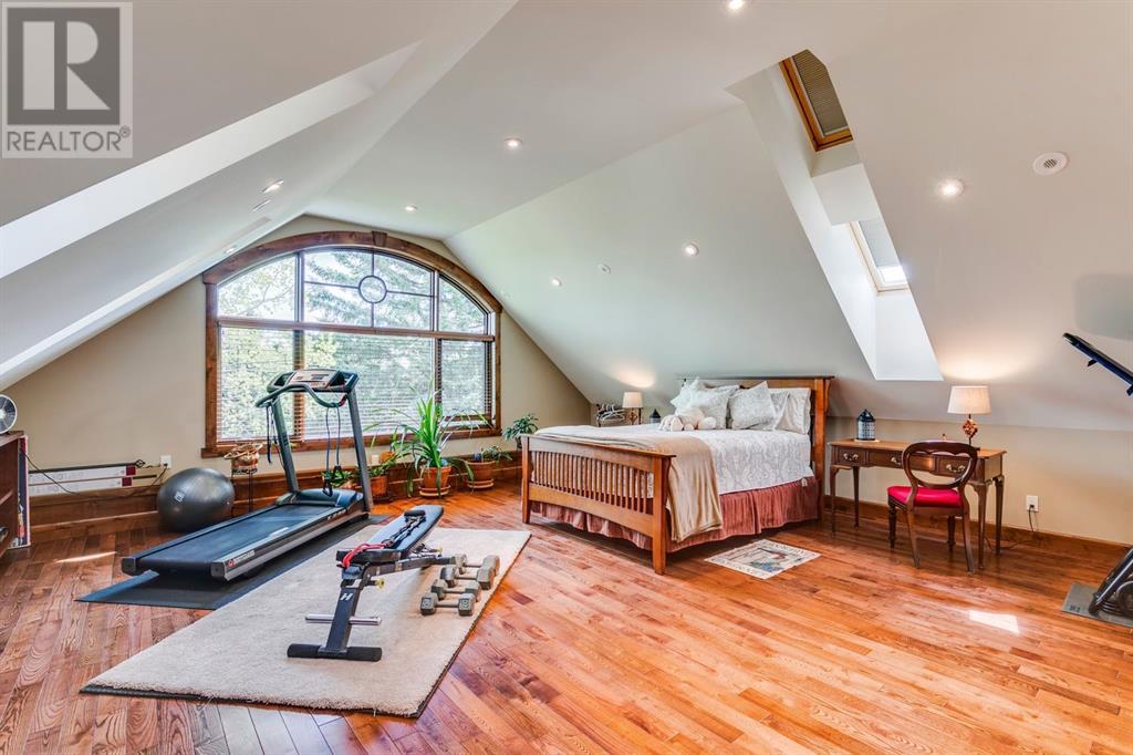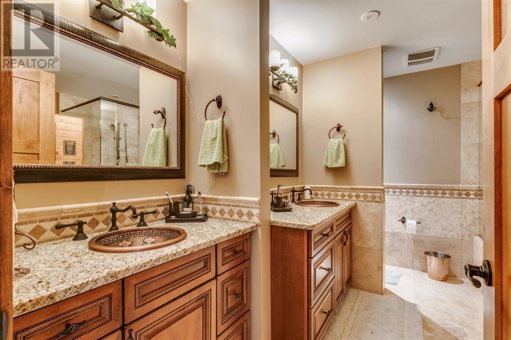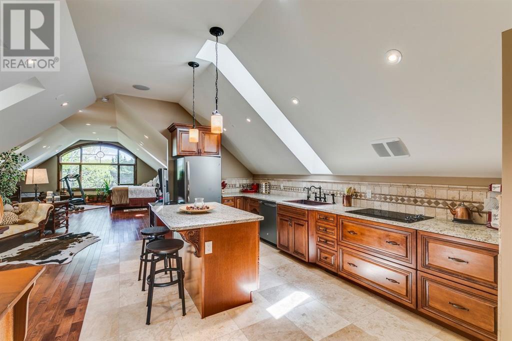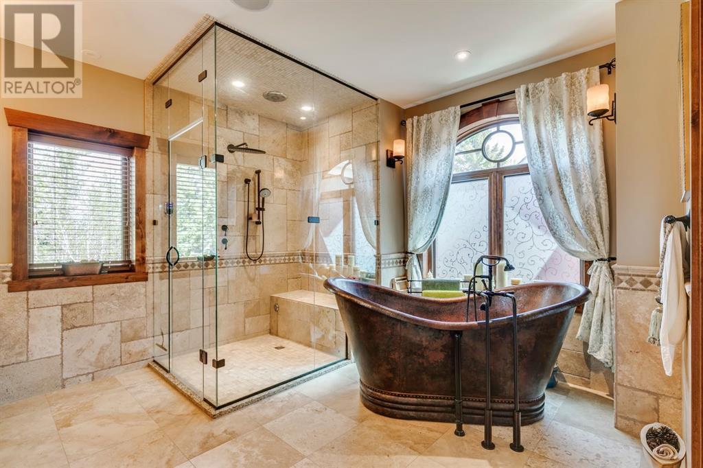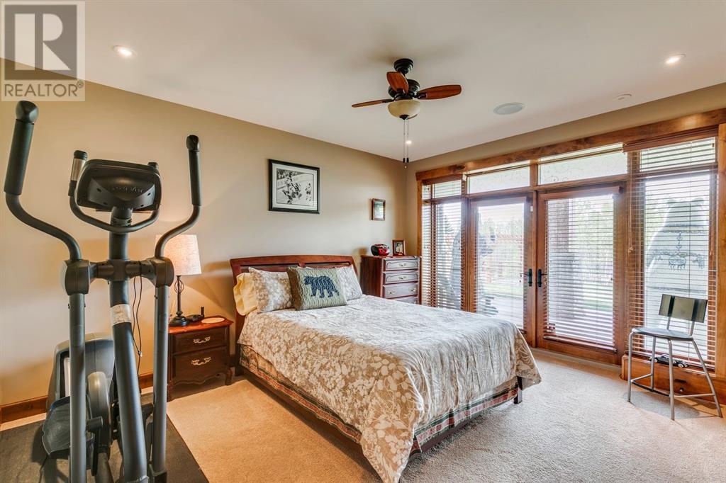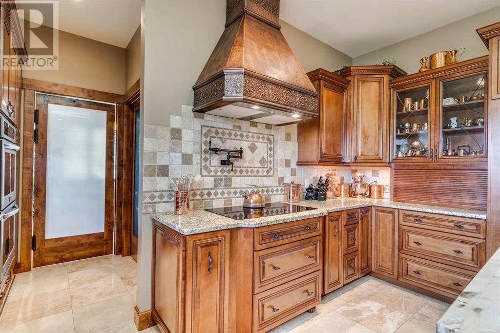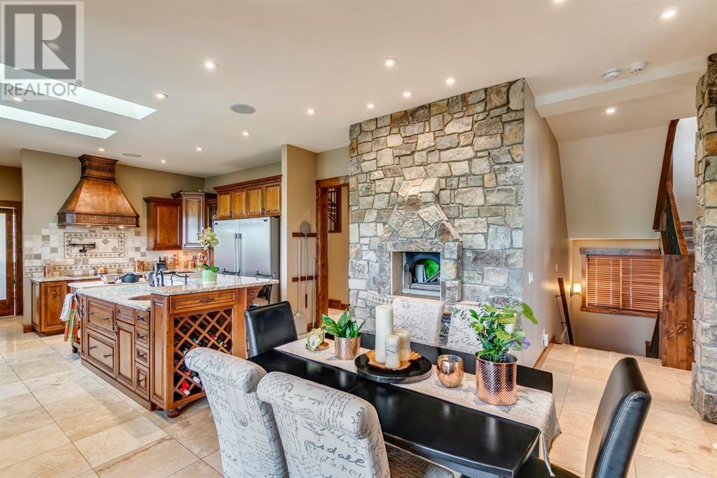 Spectacular Mountain Views & Luxurious Acreage Living Near Cochrane. Discover over 6,300 sq ft of refined living on 25 private acres (with the option to purchase the contiguous 125 acres for a total package of 150 acres) just 20 minutes north of Cochrane. This custom-built ICF home offers unparalleled energy efficiency, soundproofing, and fire resistance, enhanced by tornado clips and a security system. Enjoy breathtaking Rocky Mountain panoramas from expansive 20-foot windows in the grand living area. The home boasts travertine flooring, solid knotty Alder wood accents, Control 4 sound, AC, and in-floor heating throughout.Culinary enthusiasts will adore the gourmet kitchen featuring an induction cooktop, double ovens, double Thermidor fridge/freezer, a walk-in pantry, and a unique Artigiano Italian brick pizza oven. Custom cabinetry, granite countertops, and a farmhouse copper sink add to the elegance. Relax by one of two Napoleon wood-burning fireplaces or step onto the main deck from the dining room or sunroom to soak in the views.The property includes a versatile 860 sq ft legal suite above the 4-car garage, complete with a full kitchen, 3-pc bath, separate entrance, and individual climate control – perfect for guests or extended family. The primary suite offers a private balcony with stunning mountain vistas and a spa-like ensuite featuring a freestanding copper tub and steam shower.The fully finished basement provides exceptional an entertainment space with a games room (pool table included), wet bar, theatre room with surround sound, and two additional bedrooms with private backyard access. Should you decide you like this home but need more land the Sellers own a contiguous 125 acres on a separate title that could be purchased along with this home on its 25 acres. A total of 150 acres could be owned with this house. Enjoy the tranquility of rural living with easy access to Cochrane and Calgary. Schedule your private viewing today. (id:55577)