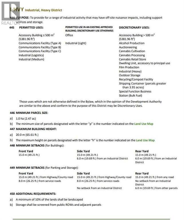A 4.65 Acre industrial property located in the High Plains Industrial Park. Located immediately north of the City of Calgary in Rocky View County, High Plains Industrial Park is a 1,500 acre master-planned park that is ‘center-ice’ for western Canada distribution centres and ecommerce fulfillment facilities. The Park is home to Walmart, Sobeys, Home Depot, Conagra, Rona, Smuckers, and numerous other Corporate Canada tenants. Importantly, Bison Transport, Canada Cartage, and Charger Logistics will offer over 60 acres of truck transport facilities to provide FTL and LTL services to Park tenants. In addition there is a large bungalow with a suite in the basement to provide either office space or revenue for the new owner. (id:55577)