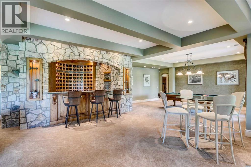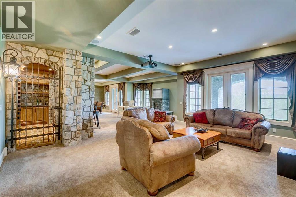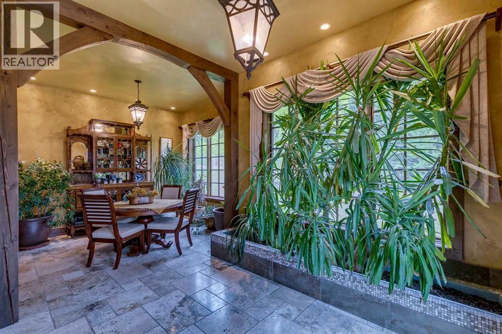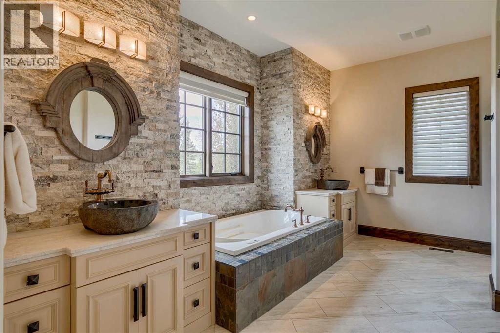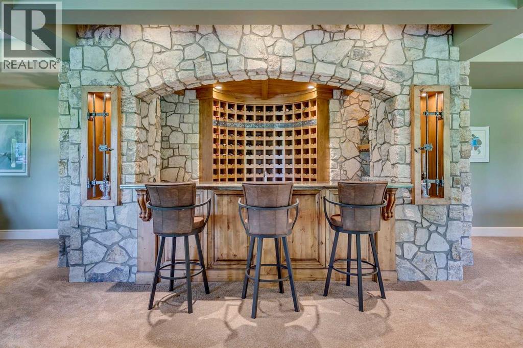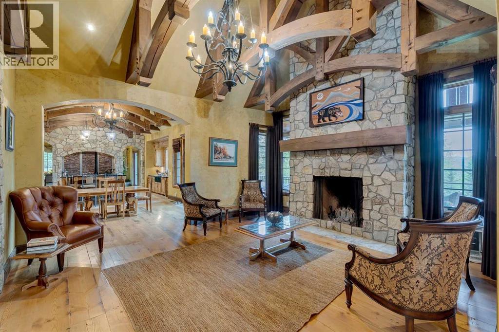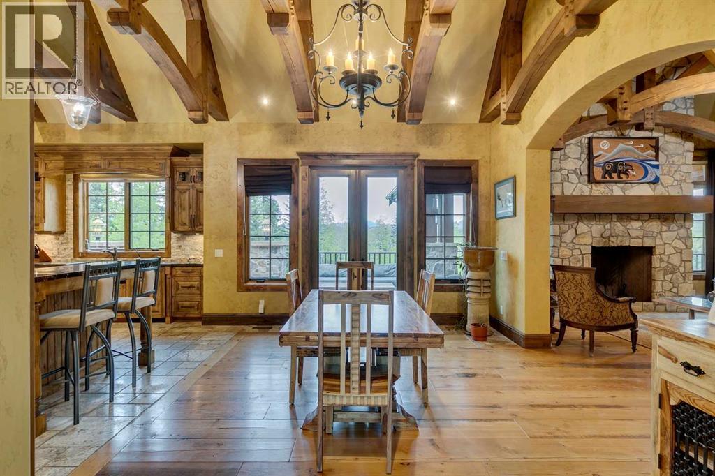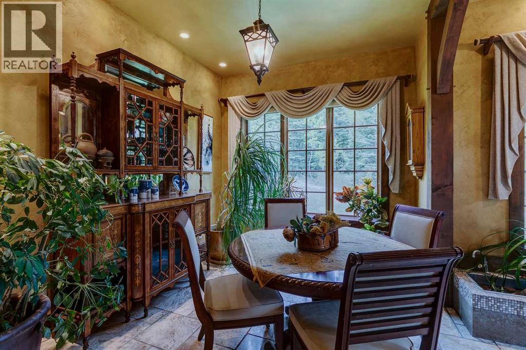 25 minutes from southwest Calgary city limits, this timber and stone masterpiece is set against the backdrop of the majestic Rockies, embraced by rolling ranch lands that offer endless natural beauty. Nestled between Brown-Lowery Provincial Park and Kananaskis Forest Reserve the home promises a lifestyle rooted in nature and refined living . The nearby charming towns of Millarville, Black Diamond and Bragg Creek host festivals and markets year round along with access to esteemed schools, shopping, entertainment and medical facilities. This 2011 SAM Award–Best New Custom Home-winning residence captivates with its stone fireplaces, exposed timber beams, tall French doors under vaulted ceilings. By design, mornings begin in a bright courtyard featuring a serene fountain, while evenings are reserved for unwinding on a west-facing deck that showcases sunsets and mountain vistas “as far as the eye can see.” With amenities like a built-in gas BBQ, an outdoor stone fireplace, and overhead heaters beneath the shelter of a timber truss roof, every season is met with inviting warmth and style. The home’s seamless flow unites a one and half story main floor, a walkout lower level, and an upper loft that can be converted to feature a fourth bedroom, ensuite bath and private den—totaling 6,561 square feet of thoughtfully planned living space. The chef’s kitchen is a dream come true, featuring custom-built alder cabinets, an Aga vented gas range, an integrated fridge and freezer, and a plumbed coffee maker. This culinary space adjoins rooms that facilitate both formal dining and casual family gatherings, ensuring that every meal becomes a shared experience. True to its natural spirit, the home is built almost entirely of organic materials. A copper-seamed Coppola roof crowns the exterior alongside natural stone and brick facades, while reclaimed hardwoods and honed stone floors lend an artisanal touch throughout. Metal-clad fir windows and oversized French doors open onto wood -planked decks that embrace the walkout patio and extend to the hot tub area—perfect for relaxing or entertaining in style. A Scandinavian-inspired spa, a three-piece bath, and a dedicated gym further round out a suite of wellness-oriented features. Inside, vaulted ceilings accented by fir timber beam trusses create a grand yet inviting atmosphere. Stone and granite countertops provide a luxurious touch in every room. Additional highlights include a home theater, wine cellar, billiards room, and a striking Tulikivi fireplace that anchors memorable family moments. An ensuite bedroom on the lower level ensures comfort and privacy for guests or extended family. Modern living integrated with timeless design. State-of-the-art equipment all working together to keep the air, water, and environment healthy, clean, and comfortable year-round. This move-in ready estate awaits your private viewing. (id:55577)