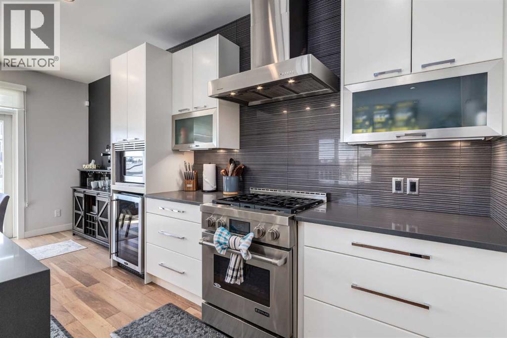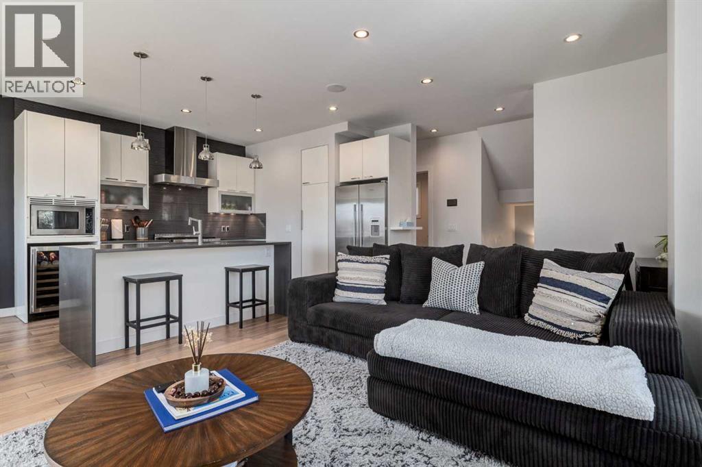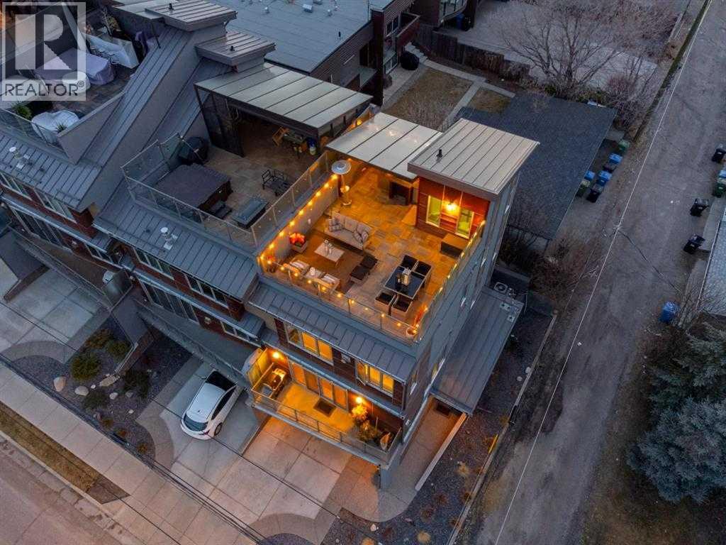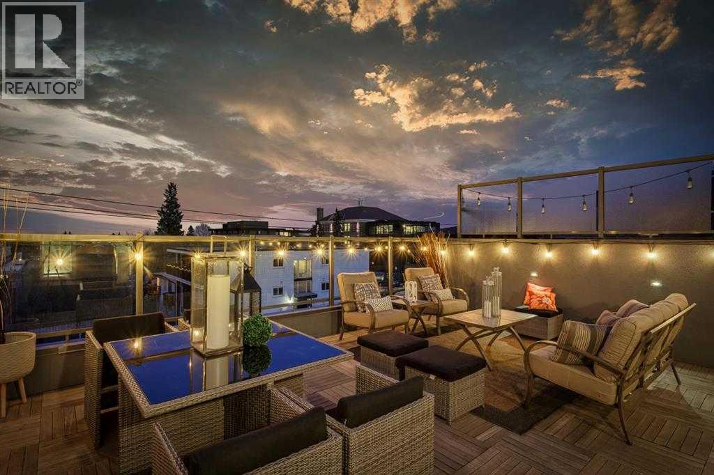 Welcome to an exceptional 3-bedroom townhouse nestled in the highly sought-after community of Marda Loop—where vibrant city living meets a true sense of community. Surrounded by boutique shopping, trendy cafés, and some of Calgary’s best dining, this is urban living at its finest. Step inside to a beautifully designed main floor featuring a bright, open-concept layout with rich hardwood flooring throughout. The modern kitchen is a true showpiece, complete with sleek stainless steel appliances, a gas range, and seamless flow into the dining and living areas—perfect for both everyday living and entertaining. A versatile main floor bedroom offers the ideal space for a home office or guest room, complemented by a stylish 2-piece bathroom. Upstairs, you’ll find two generously sized bedrooms with plush carpeting. The primary suite is a private retreat, offering stunning downtown views, a spacious walk-in closet, and a luxurious ensuite designed to impress—featuring a double vanity, a standalone soaker tub, a large glass shower, and a unique double-sided gas fireplace shared with the bedroom. A well-appointed 4-piece bathroom and convenient upper-floor laundry complete this level. The crown jewel of this home is the expansive third-level rooftop patio—a rare and highly desirable feature. Spanning approximately 30’ x 22’, this incredible outdoor space is built for entertaining and relaxation, showcasing breathtaking downtown views. Enjoy a fully equipped outdoor kitchen with a built-in BBQ, prep space, and covered area for year-round use. With ample room for lounging and dining—and even potential for a hot tub—this is your private urban oasis. Rounding out the home is an oversized 22’ x 22’ double heated garage with additional storage, along with key upgrades including a brand-new furnace and central air conditioning for year-round comfort. This is a rare opportunity to own a modern, feature-rich home in one of Calgary’s most desirable inner-city communities. (id:55577)