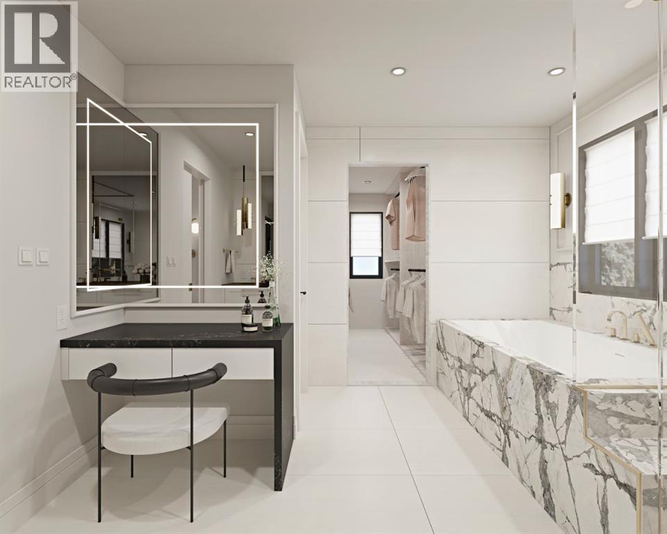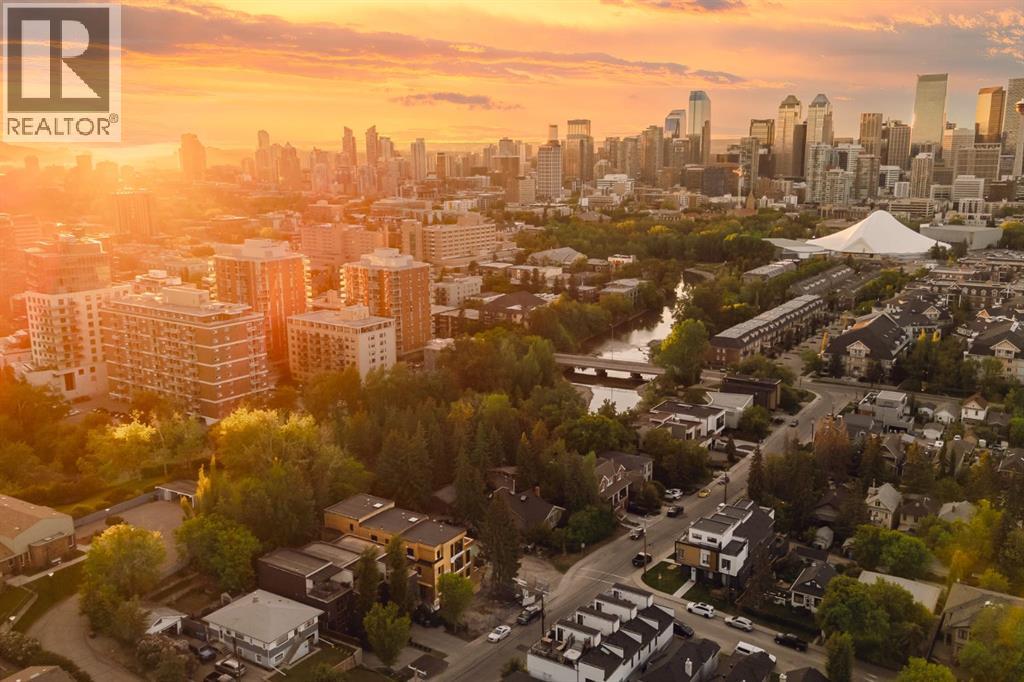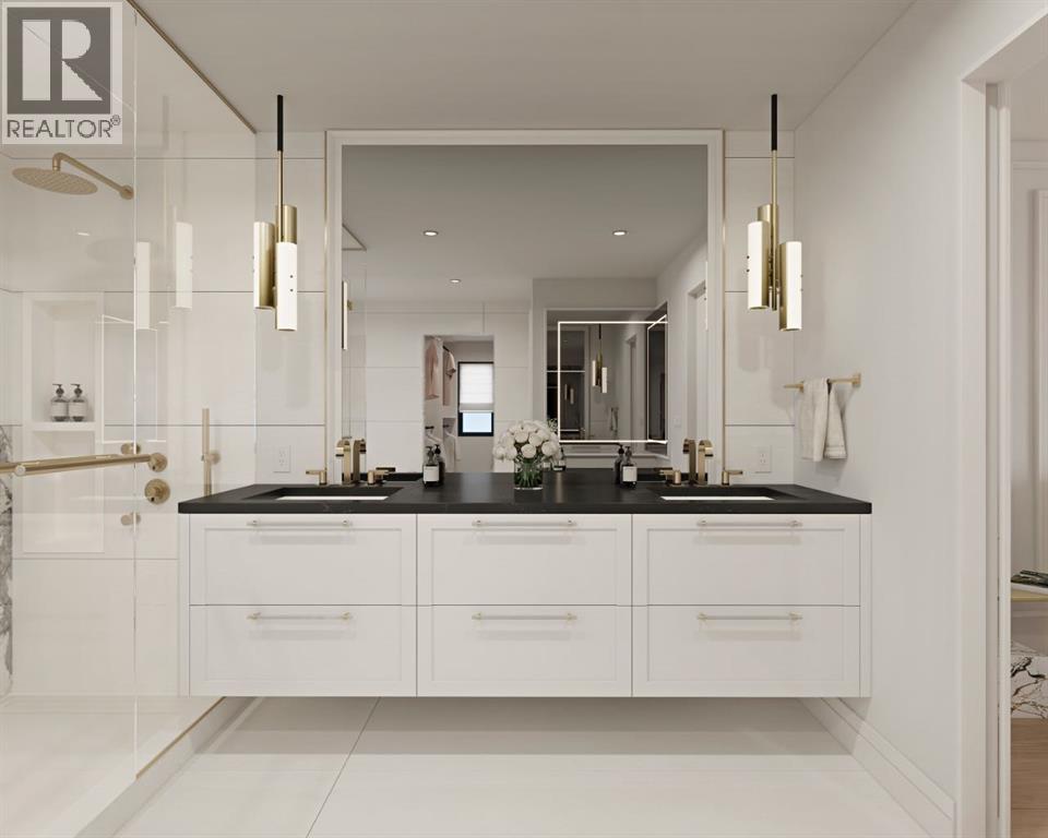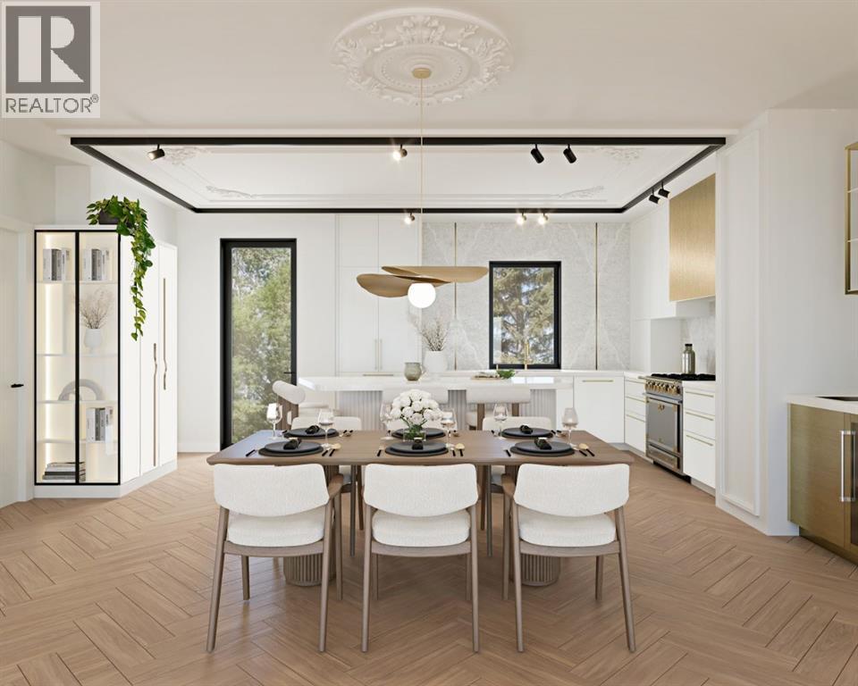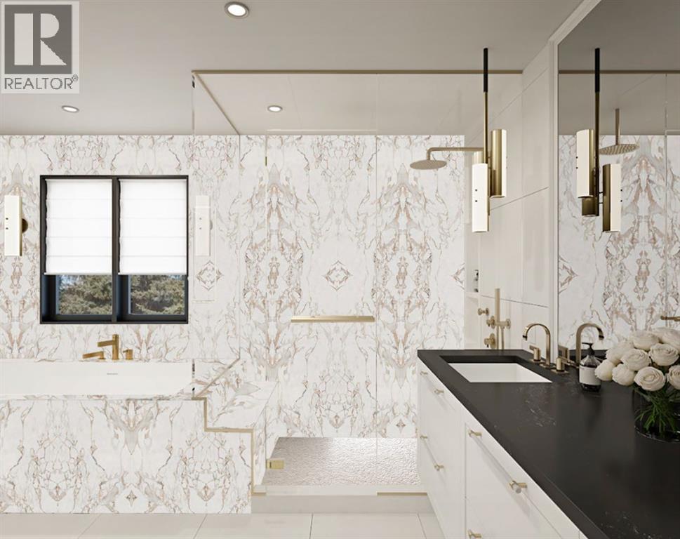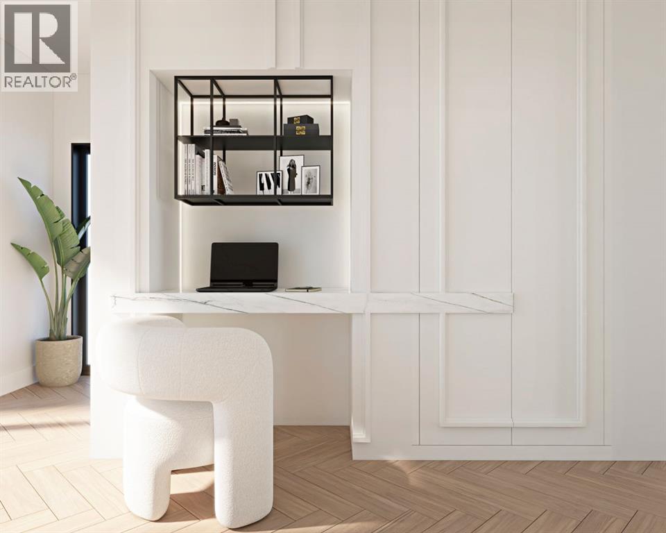 This three storey townhome incorporates modern-traditional interior design elements for a sophisticated and timeless aesthetic. Perched upon a hill in one of Calgary's most iconic river communities overlooking the picturesque skyline, this brand new unit is a culmination of high quality materials, thoughtful finishing selections, and grand inclusions. The attached triple car garage and private elevator are characteristic of the many luxurious additions strategically embedded within this home. The main floor layout includes a chef's kitchen with premium panel-ready appliances, dining room, living area with gas fireplace, powder room, wet bar, built-in desk area, main floor balcony with sweeping city views, and an outdoor BBQ deck at the rear. On the second level there are two bedrooms, each with walk-in closets and 4 piece ensuites, along with laundry and a den. The entire third floor is occupied almost entirely by a spacious primary retreat with another gas fireplace, a walk-in-closet, an attached 6 piece ensuite including a steam shower, bidet and in-floor heating, an additional wet bar, and a third level balcony (designed and loaded for a hot-tub) overlooking the city. This intentional floorplan prioritizes comfort and convenience while maximizing utilization of space. Intricate millwork, ornate wall and ceiling mouldings, curved kitchen island, brush gold accents, 9 foot ceilings, and herringbone hardwood all work together seamlessly to emulate carefully curated beauty. With unrivalled cityscape views, this home is a testament to deluxe inner city living. Notable specifications include: quartz countertops, Spanish porcelain tile, engineered European Oak hardwood, custom designed casing & mouldings, designer light fixtures, LED backlit staircase railings, millwork built-ins, satin brass and matte black hardware, along with rough-ins for speakers, a security system and power blinds.. Situated amongst the natural landscape of the river pathways and surrounded by som e of the city's most notable landmarks in the peaceful community of Erlton. Quickly access the shopping and dining opportunities along 4th street, the brand new Convention Centre, Calgary Stampede Grounds, and get to the downtown core in minutes. Expected Completion September 2025. Renderings are for artistic purposes only and to give a sense of space. Actual specifications of completed product may differ. Inquire for a list of customizable and/or upgradable features. (id:55577)