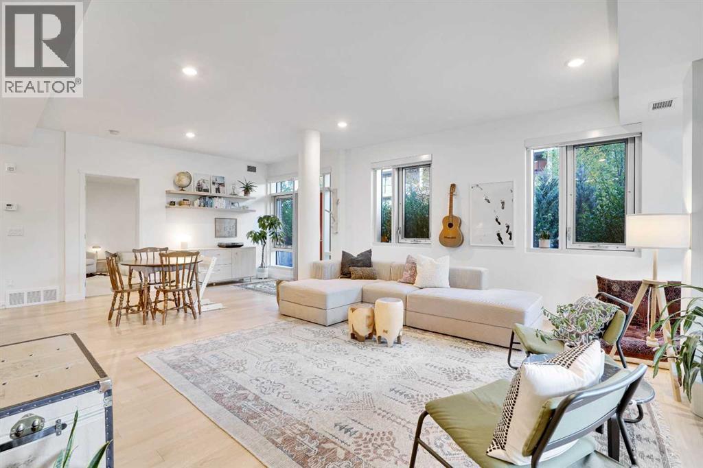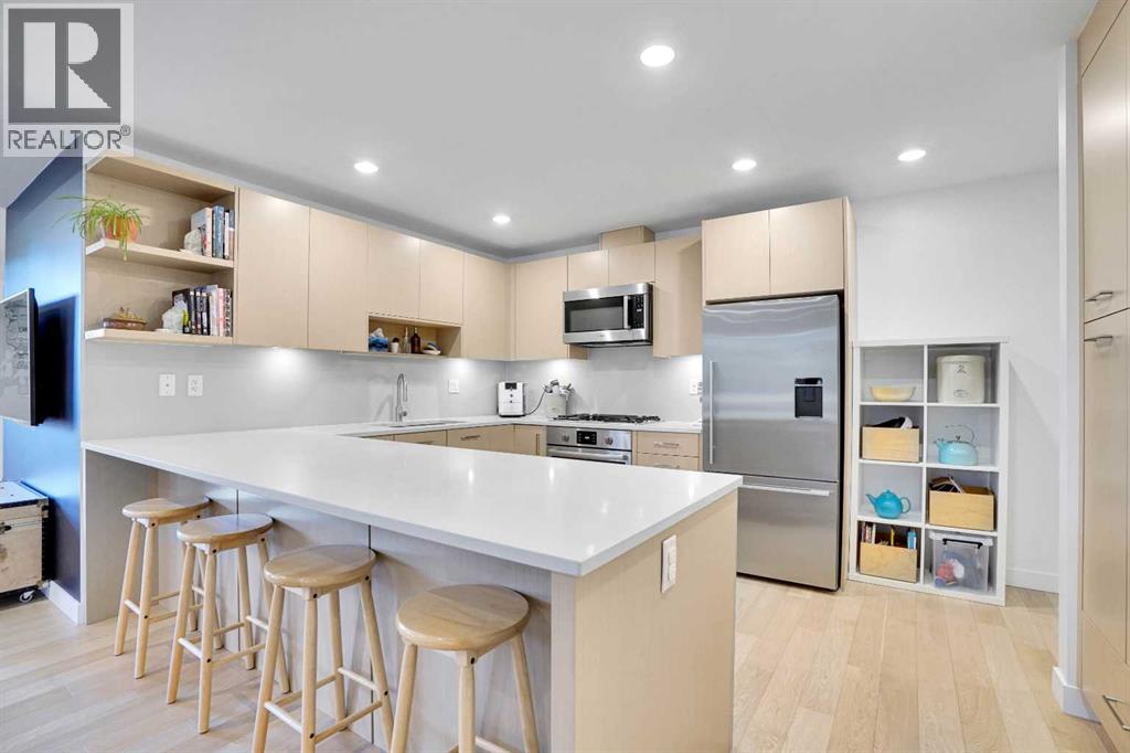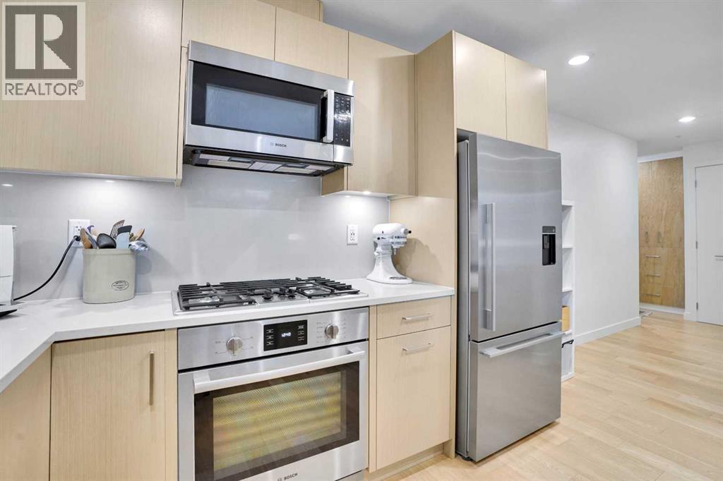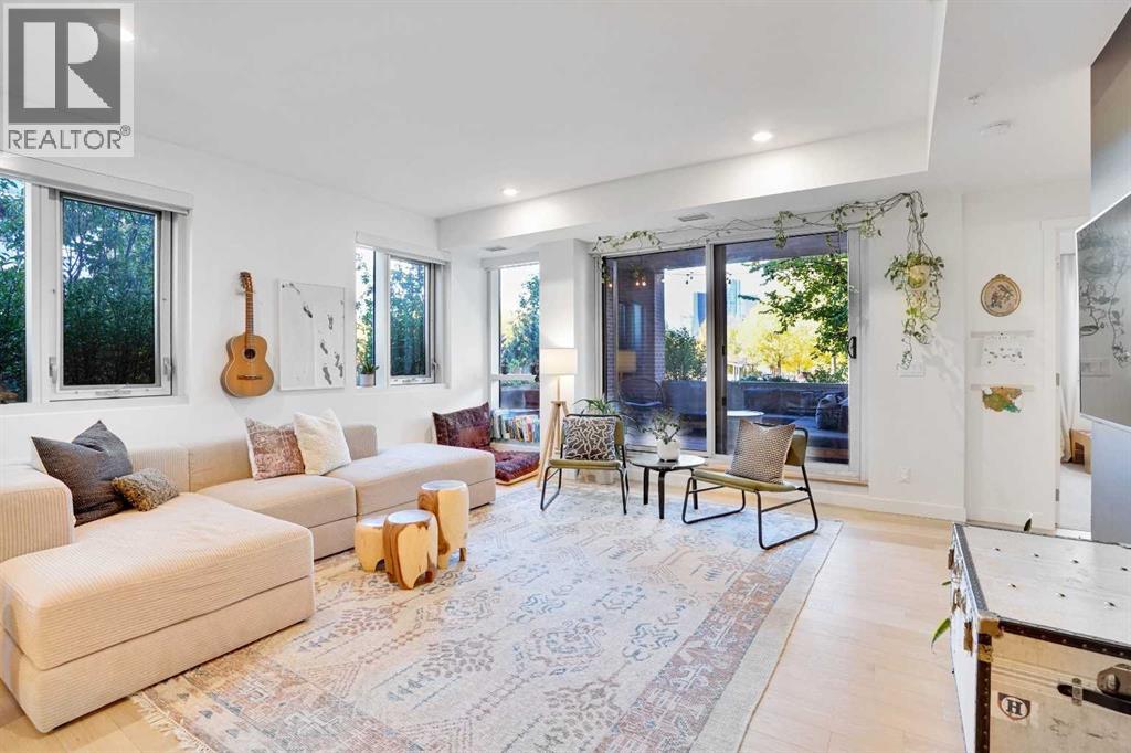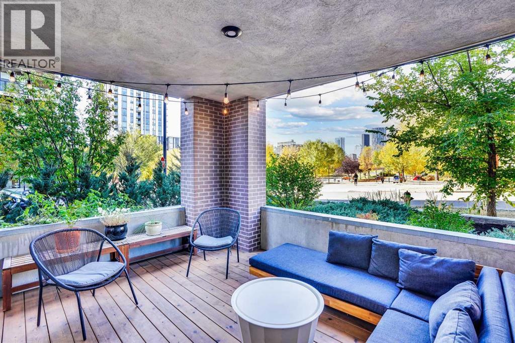 Public Open House, Sunday October 19th from 1:00-3:00pm at #003 - 88 9 Street NE. Exceptional opportunity in an ultimate inner-city location. Nestled park side in the heart of Bridgeland, across from Murdoch Park. Like new, corner unit with direct access features a great contemporary vibe. Open concept, spacious rooms and a great covered patio with lovely views of the Park and Downtown. Living is easy in this fresh and bright 2 bedroom plus den with 2 full baths. Enjoy hardwood floors, big beautiful windows, a sunny living room, large dining room and an airy kitchen with plenty of natural light. Upscale kitchen featuring quartz countertops, upgraded appliances, gas stove, pantry and a breakfast bar that comfortably seats four. Enjoy one of the largest patios in the building for your outdoor living space. A soothing color palette throughout creates a sense of balance and harmony. Radius is a concrete building with LEED platinum status offering superb soundproofing and sustainable operating costs. Amenities included in your condo fee are a concierge, a main gym, weight room, package delivery room, yoga studio, spin room, bike and ski workshop, dog wash, car wash bay, incredible roof top terrace with a BBQ area, an outdoor fireplace plus private garden plots. Other notable conveniences include underground parking with two parking stalls and an extra-large storage locker. You will love the vibrant, walkable location, with easy access to plenty of pathways, trails, 10 minute walk to downtown, the Bow River and St Patrick’s Island. Inner city at its best; quiet location, bubbling local restaurant/cafe scene, Farmer’s Market, and shopping. With such a high walking, wheeling, bicycling and transit score it would be a shame to live anywhere else.Bridgeland is proud to be home to some of the best local restaurants and walkable amenities in the city including Shiki Menya, Lil Empire, OEB Breakfast, UNA, Blue Star, Made by Marcus, Village ice cream, Phil & Sebastian, Starbu cks, Bridgeland Market, Luke's Drug Mart and Mari bakery. This is inner-city living at its best—modern comfort, unbeatable location, and a true sense of community. (id:55577)