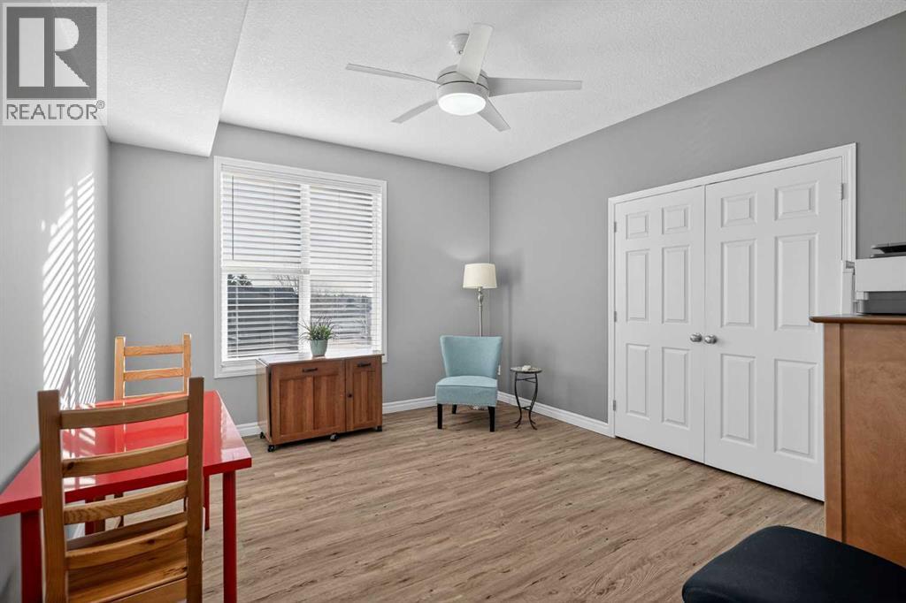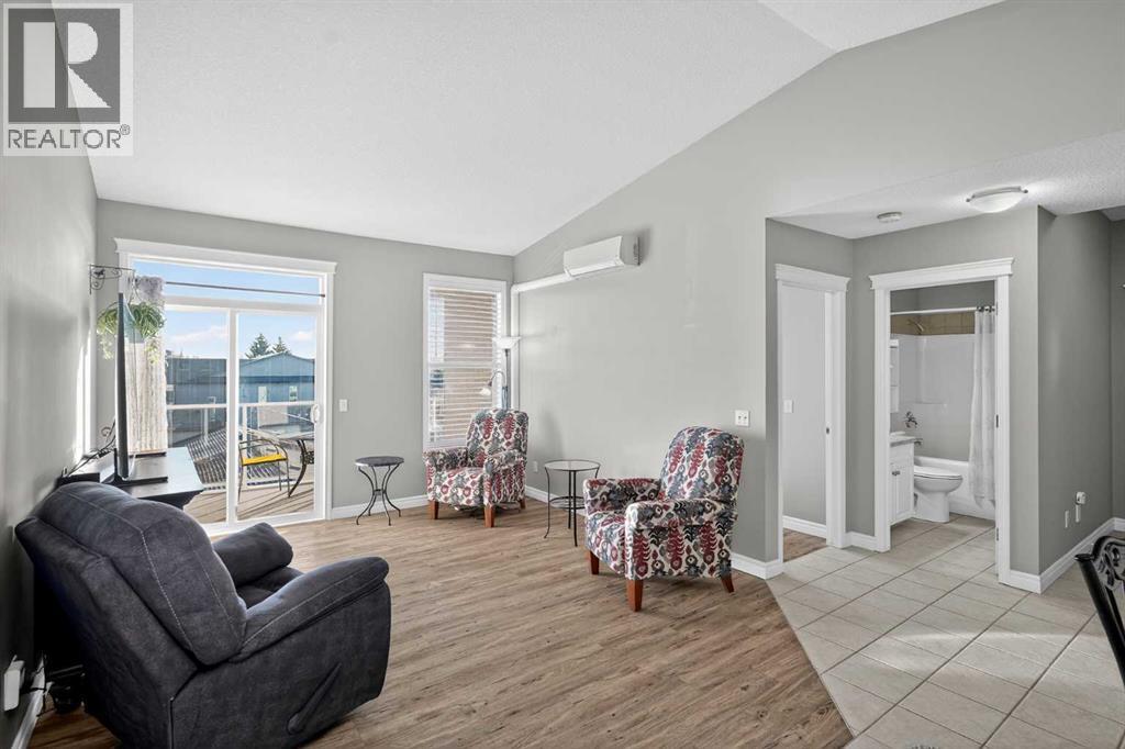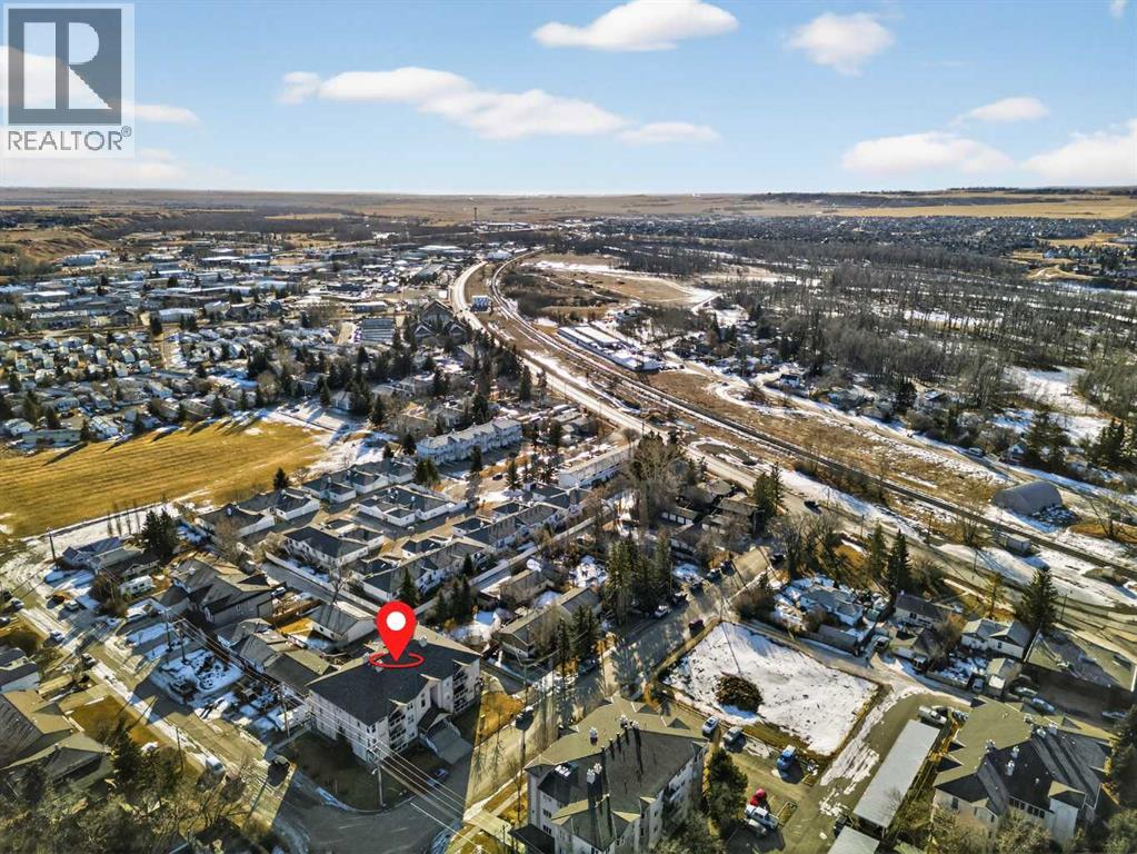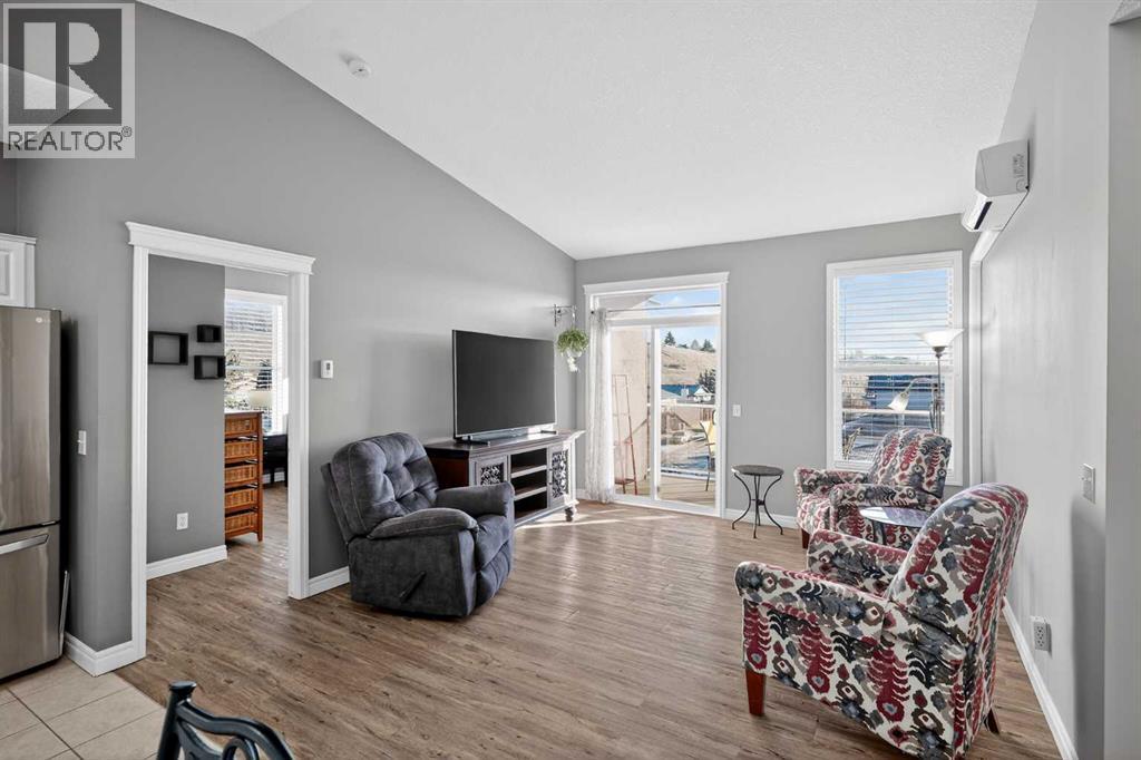 A rare find - top-floor corner unit with vaulted ceilings, offering 1066.71 sq ft of bright living space in the heart of downtown Heritage Okotoks. This spacious condo features two bedrooms and two full bathrooms. The vaulted ceilings in the living, dining, and kitchen areas make the space feel even larger and more inviting, while the kitchen offers plenty of white cabinetry. The oversized primary bedroom is extra bright with corner windows and includes a walk-through closet leading to a private ensuite with a window. The second bedroom is also generous in size and located next to another full 4-piece bathroom - good for guests, a roommate, or a home office. Step outside to your covered balcony with a gas line for your BBQ and a sunshade for added comfort. Additional features include a large storage room on the same floor, TWO titled heated underground parking stalls, security system in the parkade and entrances, and an automatic water shut-off safety system. Numerous upgrades have been completed in recent years, including stove range, refrigerator, washer and dryer, central A/C, microwave-hood, vinyl flooring and wall paint, updated higher-raised toilets, and window blinds. All of this in a well-kept 12-unit pet friendly building just steps from Elma Street, local coffee shops, boutique shopping, breweries, festivals, and the river pathways. Heritage is truly the heart of Okotoks - enjoy a walkable lifestyle and leave your car at home. It’s rare to find this much space, privacy, upgrades, and location at this price point. Book your showing - this one is worth seeing in person. (id:55577)