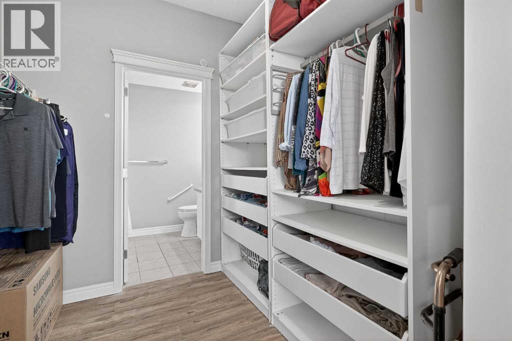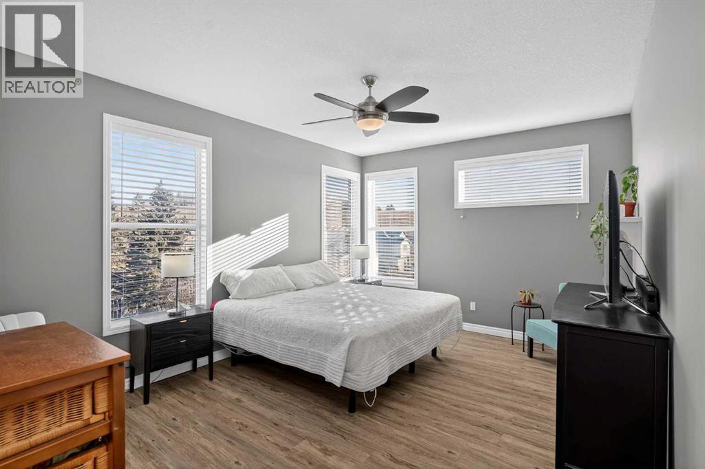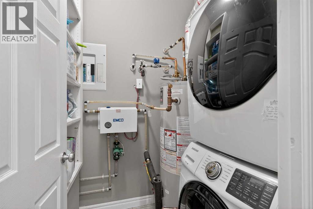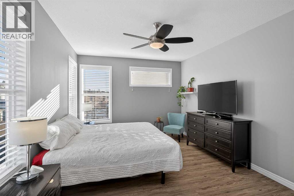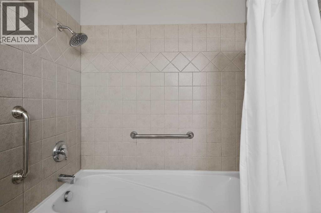 A rare find - top-floor corner unit with vaulted ceilings, offering 1066.71 sq ft of bright living space in the heart of downtown Heritage Okotoks. This spacious condo features two bedrooms and two full bathrooms. The vaulted ceilings in the living, dining, and kitchen areas make the space feel even larger and more inviting, while the kitchen offers plenty of white cabinetry. The oversized primary bedroom is extra bright with corner windows and includes a walk-through closet leading to a private ensuite with a window. The second bedroom is also generous in size and located next to another full 4-piece bathroom - good for guests, a roommate, or a home office. Step outside to your covered balcony with a gas line for your BBQ and a sunshade for added comfort. Additional features include a large storage room on the same floor, TWO titled heated underground parking stalls, security system in the parkade and entrances, and an automatic water shut-off safety system. Numerous upgrades have been completed in recent years, including stove range, refrigerator, washer and dryer, central A/C, microwave-hood, vinyl flooring and wall paint, updated higher-raised toilets, and window blinds. All of this in a well-kept 12-unit pet friendly building just steps from Elma Street, local coffee shops, boutique shopping, breweries, festivals, and the river pathways. Heritage is truly the heart of Okotoks - enjoy a walkable lifestyle and leave your car at home. It’s rare to find this much space, privacy, upgrades, and location at this price point. Book your showing - this one is worth seeing in person. (id:55577)