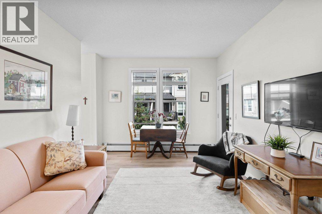 Welcome to this beautifully updated 1 bedroom + den condo located in the desirable community of Sunset Ridge in Cochrane. With 648 sq/ft of thoughtfully designed living space, this unit is perfect for first-time buyers, downsizers, or investors looking for a modern, low-maintenance home with mountain charm. Freshly updated throughout, the condo features new vinyl plank flooring, new carpet in the bedroom, and a fresh coat of paint, giving it a clean, contemporary feel. The open-concept layout offers a functional kitchen with ample cabinetry, a cozy living room with large windows, and a versatile, sunny, den that’s perfect for a home office, guest room, or extra storage. The spacious primary bedroom includes bright, sunny windows a large closet and is located next to the full 4-piece bathroom. Enjoy in-suite laundry, assigned parking, and a quiet, well-maintained building in a peaceful setting. Located in scenic Sunset Ridge, you’ll love the easy access to walking paths, schools, shopping, and all the amenities Cochrane has to offer, and just a short drive to Calgary and the mountains. (id:55577)