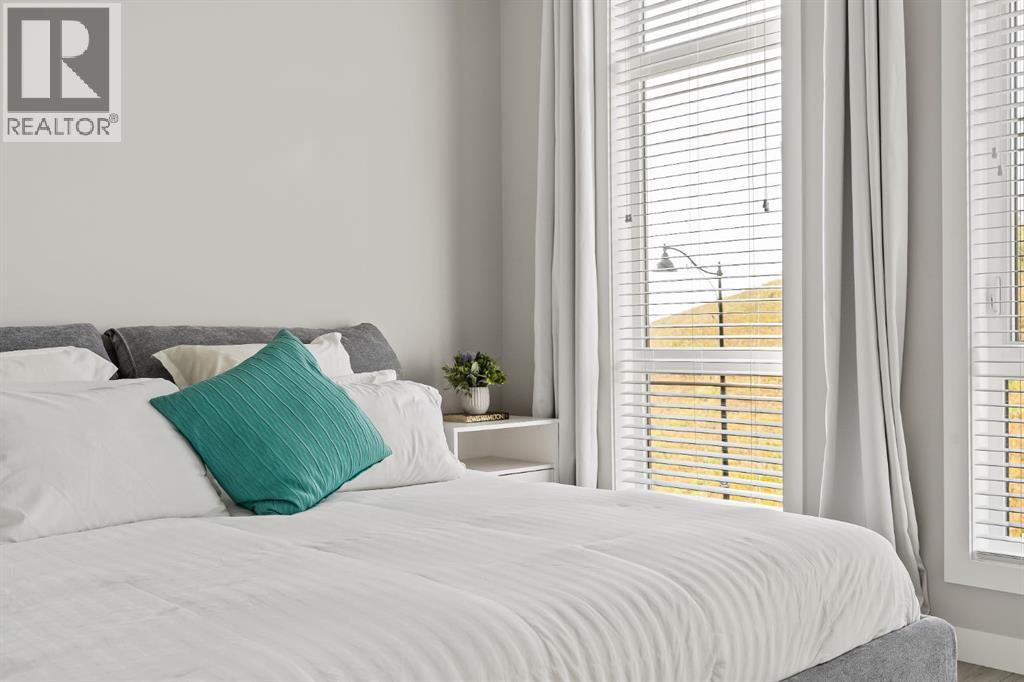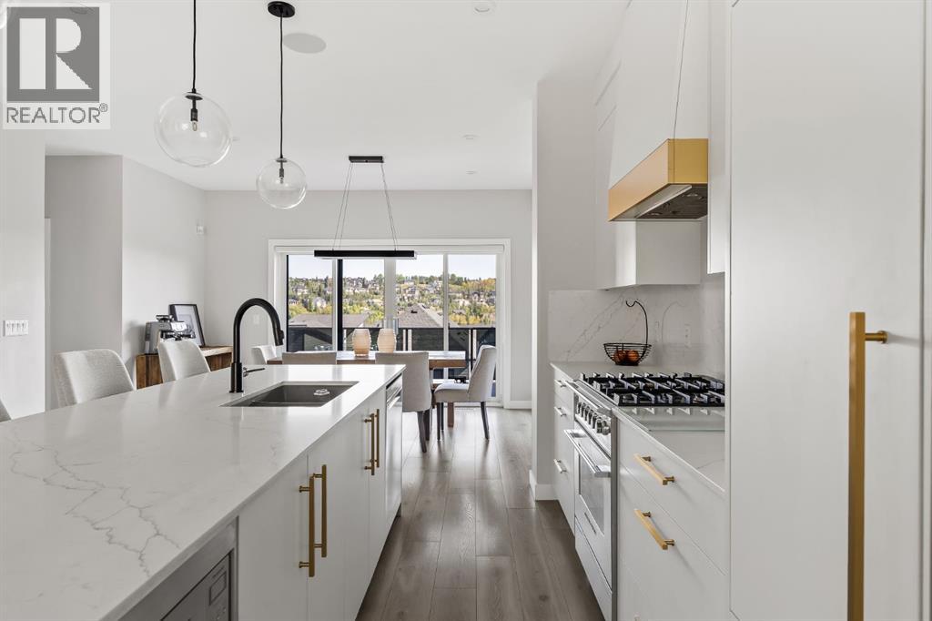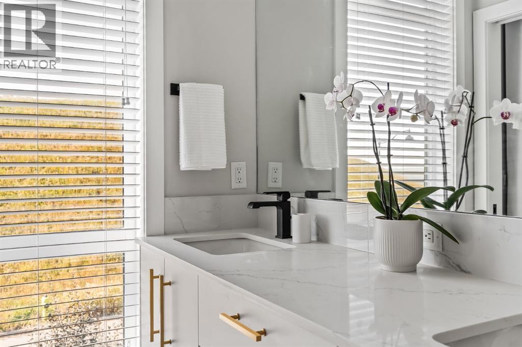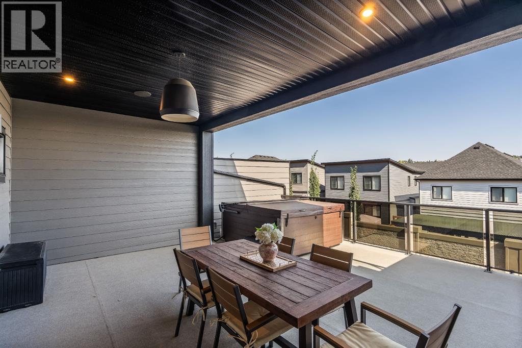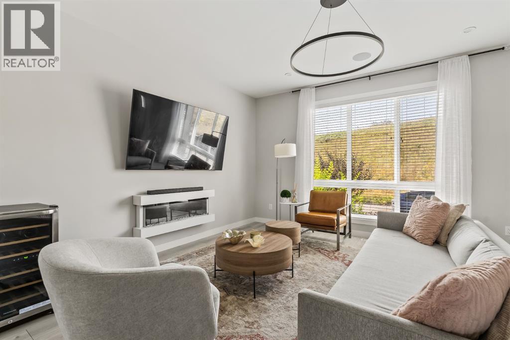 OPEN HOUSE – Sat Sept 27 (12-2pm) Executive living at its finest on Calgary’s WONDERFUL Upper Westside. This three storey townhome, just three years young, offers 2565 sq ft of living space over three levels with all of the latest design elements. Situated at the top of the hill this home presents a wonderful view to the SE, all the way to the Glenmore reservoir and exposure to a grassy knoll and the mountains to the west – a COMFORTING sense of space. With its east/west orientation, and generous window treatments, this home follows the sun, offering a WARM & BRIGHT home, on all three levels. On arrival you will enjoy the broad, open plan under 9’ ceilings with resilient luxury vinyl flooring, designer lighting and window treatments, B/I speakers throughout and a kitchen featuring Fisher Paykal s/s appliances, including a gas stove. There is a generous dining space here, leading directly to a large rear deck, measuring 240 sq ft – WITH A VIEW! Upstairs you will find a double primary floor plan. The primary bedroom sits under 10’ ceilings with a view to the west and features a 5pc en suite with quartz countertops and large walk-in closet. The second primary enjoys views to the Glenmore reservoir, a 4pc en suite and large walk-in closet. The lower level has been developed for entertaining with a large rec/media space leading directly to a second large covered deck… 423 sq ft with a FANTASTIC Hot Tub… WITH A VIEW! This level also enjoys a large flex space, which easily accommodates a sleeping space for guests and a 3rd full bathroom. This home offers an attached, HEATED & OVER-SIZED garage and an ELEVATOR serving all four levels! This home offers a turnkey lifestyle with the an ELEVATOR which presents an opportunity to age in place… on Calgary’s Upper Westside!! (id:55577)