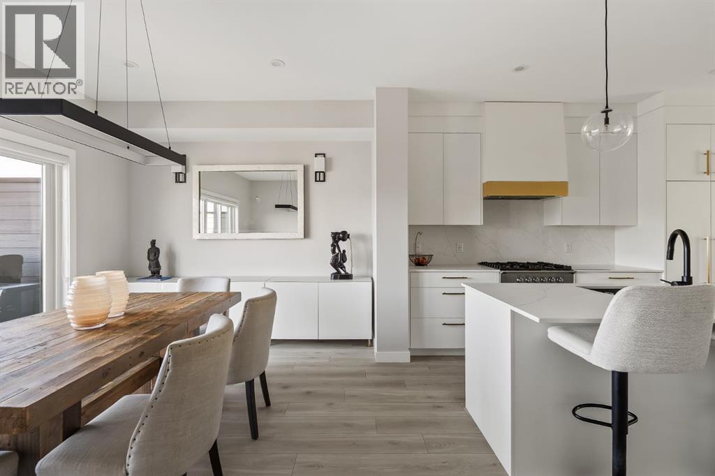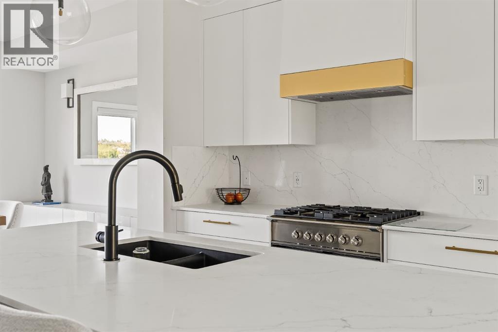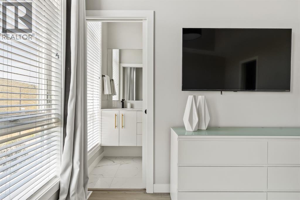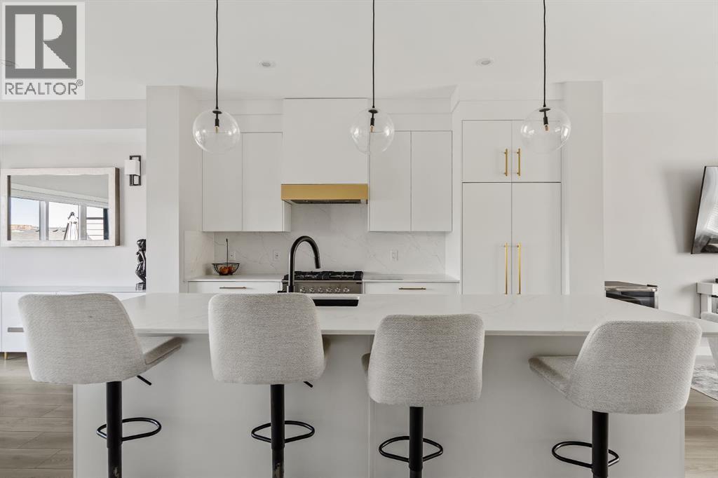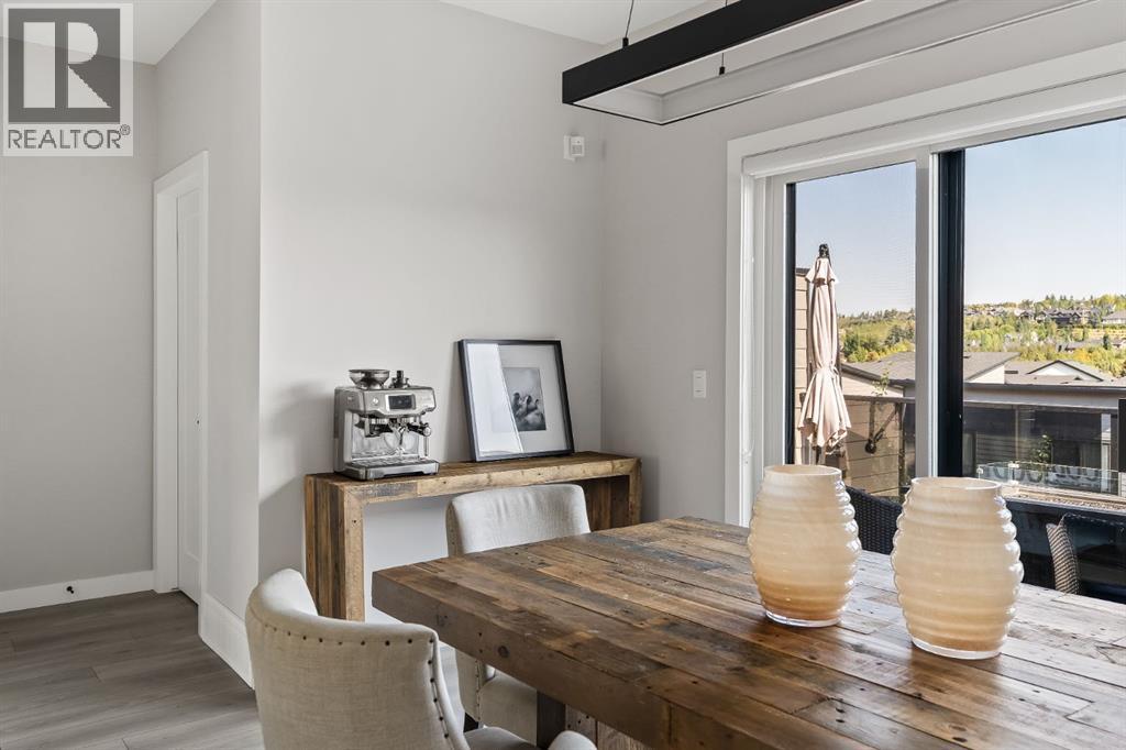 OPEN HOUSE – Sat Sept 27 (12-2pm) Executive living at its finest on Calgary’s WONDERFUL Upper Westside. This three storey townhome, just three years young, offers 2565 sq ft of living space over three levels with all of the latest design elements. Situated at the top of the hill this home presents a wonderful view to the SE, all the way to the Glenmore reservoir and exposure to a grassy knoll and the mountains to the west – a COMFORTING sense of space. With its east/west orientation, and generous window treatments, this home follows the sun, offering a WARM & BRIGHT home, on all three levels. On arrival you will enjoy the broad, open plan under 9’ ceilings with resilient luxury vinyl flooring, designer lighting and window treatments, B/I speakers throughout and a kitchen featuring Fisher Paykal s/s appliances, including a gas stove. There is a generous dining space here, leading directly to a large rear deck, measuring 240 sq ft – WITH A VIEW! Upstairs you will find a double primary floor plan. The primary bedroom sits under 10’ ceilings with a view to the west and features a 5pc en suite with quartz countertops and large walk-in closet. The second primary enjoys views to the Glenmore reservoir, a 4pc en suite and large walk-in closet. The lower level has been developed for entertaining with a large rec/media space leading directly to a second large covered deck… 423 sq ft with a FANTASTIC Hot Tub… WITH A VIEW! This level also enjoys a large flex space, which easily accommodates a sleeping space for guests and a 3rd full bathroom. This home offers an attached, HEATED & OVER-SIZED garage and an ELEVATOR serving all four levels! This home offers a turnkey lifestyle with the an ELEVATOR which presents an opportunity to age in place… on Calgary’s Upper Westside!! (id:55577)