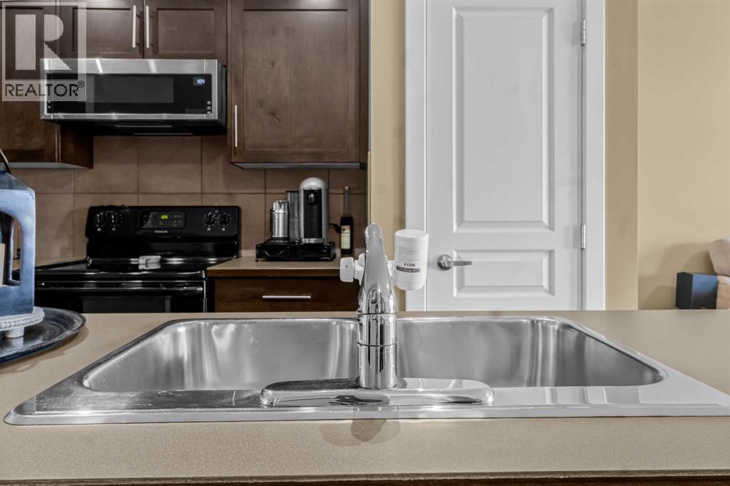 Welcome to Milano in Panorama Hills! Discover exceptional value in this bright and inviting one bedroom plus den condo, ideally situated in one of Northwest Calgary’s most convenient and desirable communities. Step outside your door and enjoy quick access to restaurants, parks, pathways, schools, and retail shops, everything you need is just moments away. Inside, you’ll find a beautifully designed kitchen featuring stainless steel appliances, rich cabinetry, and a convenient breakfast bar perfect for casual dining or entertaining. The open concept living area is bright and spacious, seamlessly connecting to a private balcony that overlooks a peaceful green space and pathway, creating the perfect extension of your living space. The primary bedroom offers plenty of room for comfort, while the den serves as a flexible area, ideal for a home office, guest space, or extra storage. This unit also includes a titled underground parking stall and assigned storage, adding everyday convenience. Milano is a pet friendly complex (cats and dogs up to 20 kg permitted), and your condo fees cover everything except electricity, making this an affordable, low maintenance choice for first time buyers, downsizers, or investors alike.A stylish, functional home in a fantastic location, this one truly delivers great value in the heart of Panorama Hills. (id:55577)