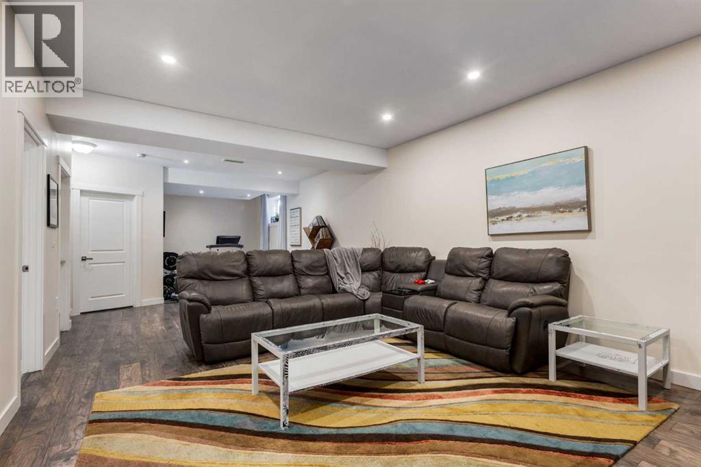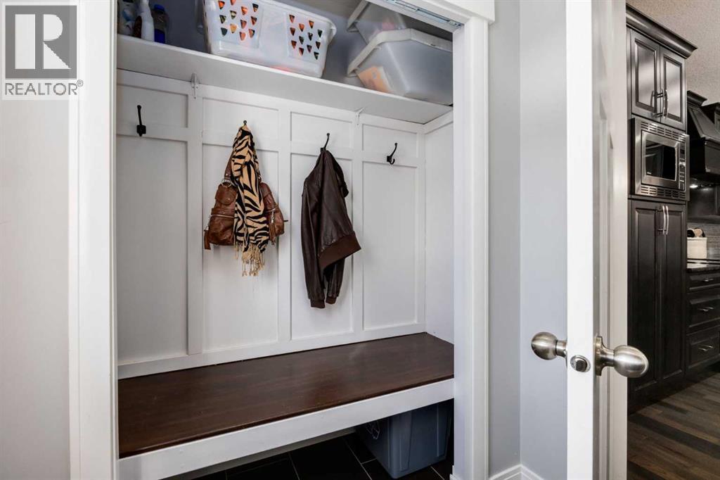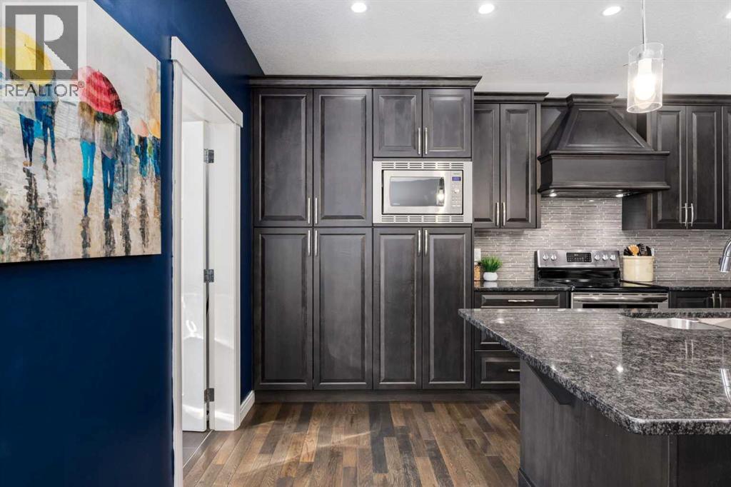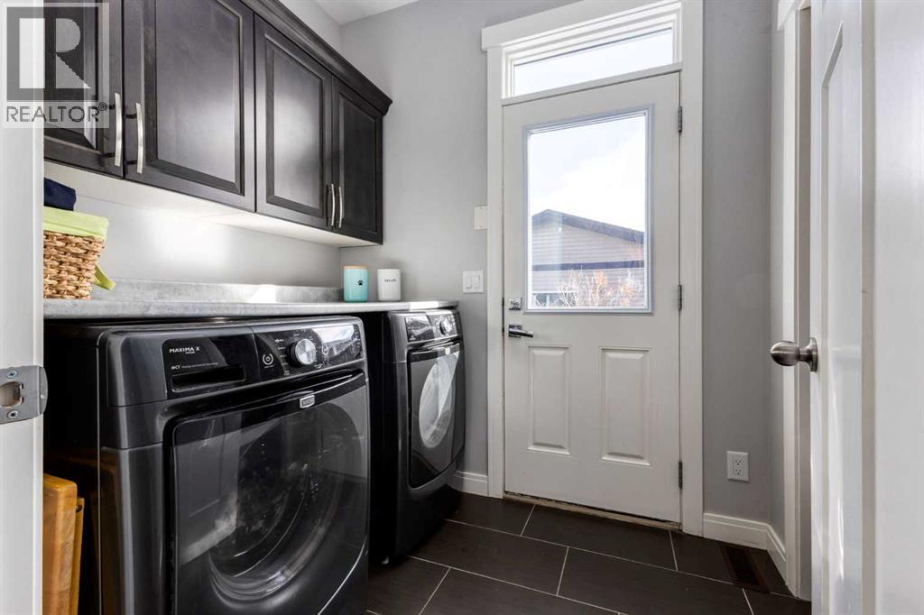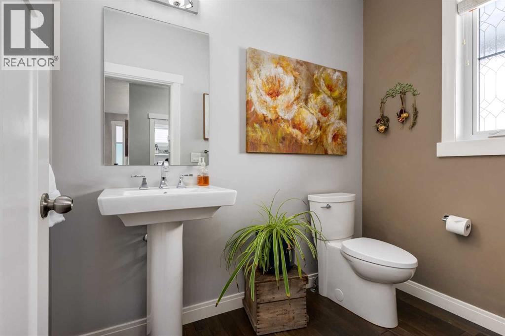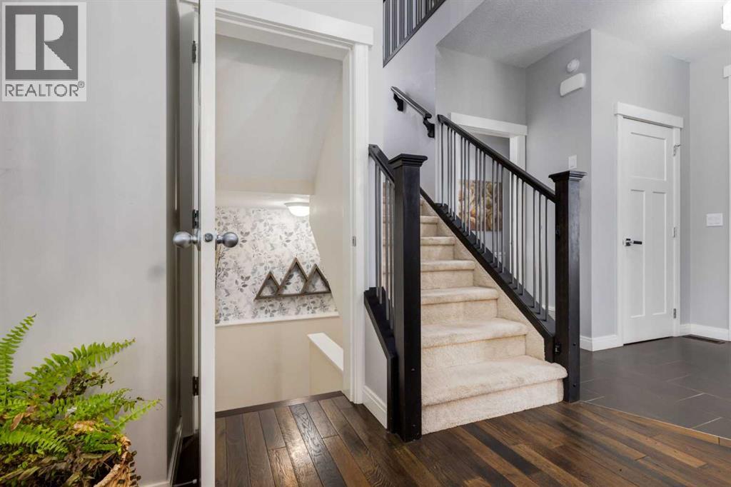 OPEN HOUSE Sunday March 15th at 11am-1pm ** Impeccably finished from top to bottom, with thoughtful upgrades, elegant spaces, a private backyard retreat, AND an OVERSIZED 24x22 Detached Double Garage! From the moment you step inside off the covered front porch , a welcoming tile Foyer leads you into a bright main floor where rich hardwood floors and elegant design details create a warm, inviting atmosphere. Just off the front entrance is a private Home Office with French doors and bright windows —perfect for working from home or a quiet study space. The Dining area is extremely spacious and features a striking chandelier, flowing seamlessly into the Living Room and Kitchen. Natural light floods the Living Room, with a cozy gas fireplace with a mantle, framed by two bookcase cabinets. French doors open to the partially covered back deck, creating a natural connection between indoor and outdoor living.The Kitchen is perfectly designed for both everyday life and entertaining, showcasing granite countertops, full-height cabinetry, SS appliances and a large island designed for gathering. A convenient tiled Laundry & Mudroom just off the kitchen offers a folding counter, additional cabinetry, and built-in bench with hooks, keeping coats and bags neatly organized. Completing this open-concept main level is a 2-pc Bathroom with pedestal sink & an opening window. Ushered upstairs by the wide carpeted, modern staircase you’ll find a spacious Bonus Room filled with sunshine, The Primary retreat boasts vaulted ceiling, a cozy window seat, and a walk-in closet. The 5-pc Ensuite is a true spa-inspired space featuring in-floor heating, a stand-alone soaker tub beneath the big window, separate walk-in corner shower, dual sinks with granite counters, and tons of cupboard / additional drawer storage. Central A/C and UV window protection has been added to enhance comfort and efficiency in this home. Also upstairs are 2 more spacious Bedrooms, an organized Linen Closet, and a beautifu lly finished 4-pc Bathroom with granite counters and tile flooring. The FULLY FINISHED BASEMENT expands your living space with impressive 9ft ceilings, a massive Family Room/ Recreation area, extra space for your Home Gym, a FOURTH BEDROOM, a stunning 3-pc Bathroom with an O/S walk-in shower and great vanity storage, AND loads of extra storage options. Outside, the beautifully landscaped backyard feels like a private oasis with mature trees & gardens, a partially covered deck for relaxing or entertaining, and a stamped concrete patio and pathway to the Garage. Last but certainly not least - the oversized 22'x24' Double Detached Garage with PAVED LANE ACCESS! Located in one of Airdrie’s most sought-after communities, this home is just steps from parks, pathways, schools, and the many amenities of Coopers Promenade. Don’t miss the chance to call this luxurious property HOME, book a private showing TODAY. (id:55577)