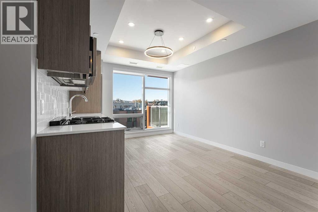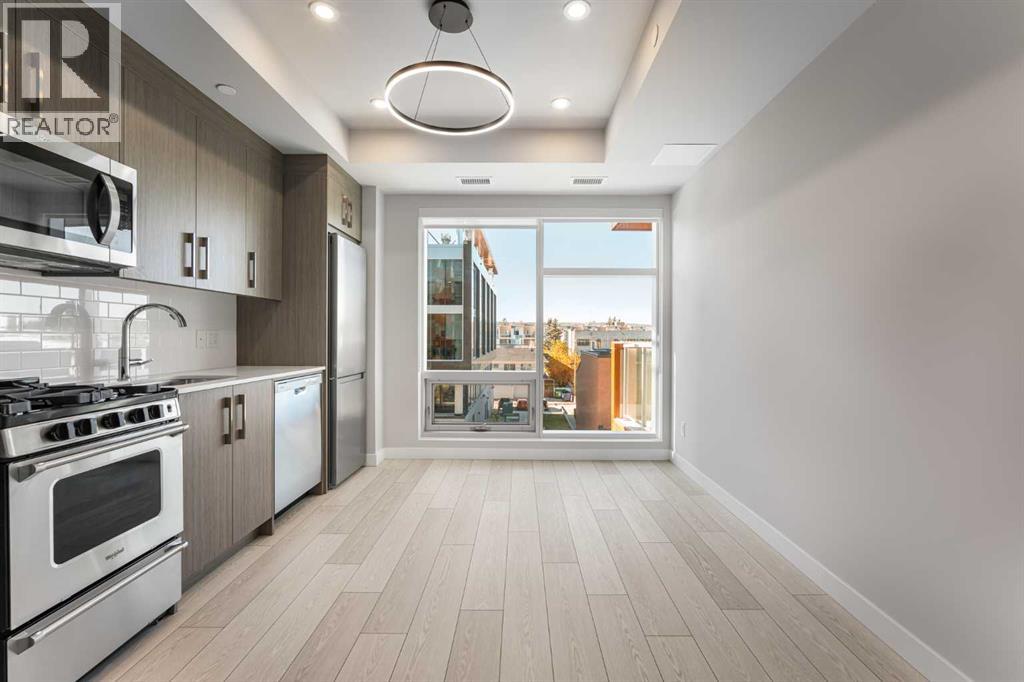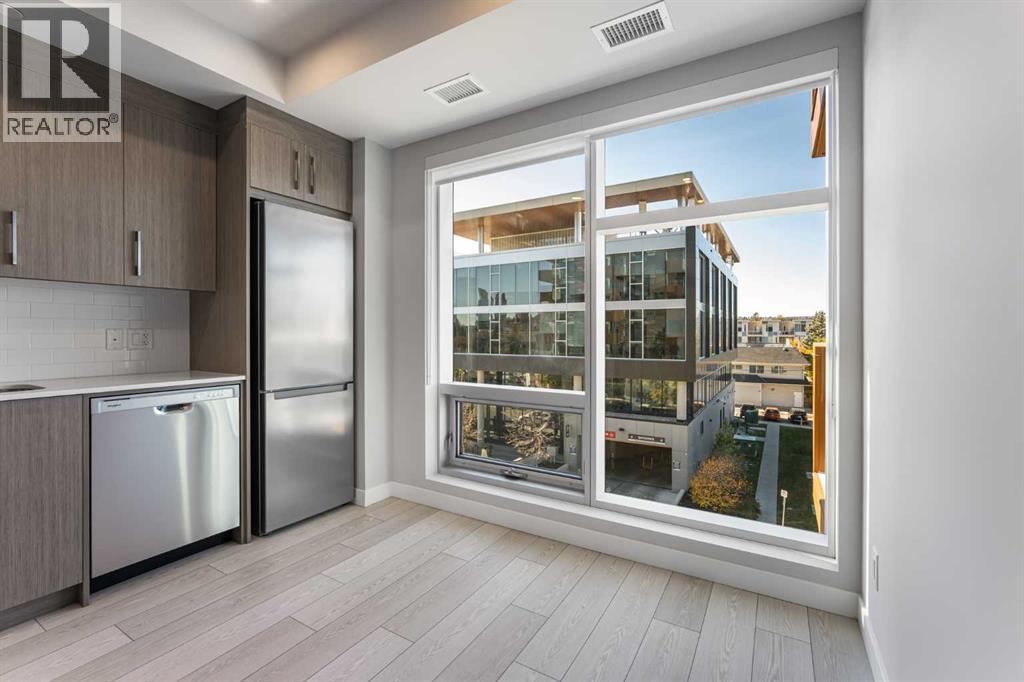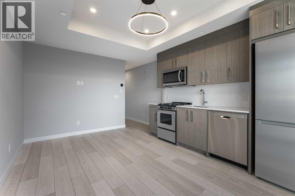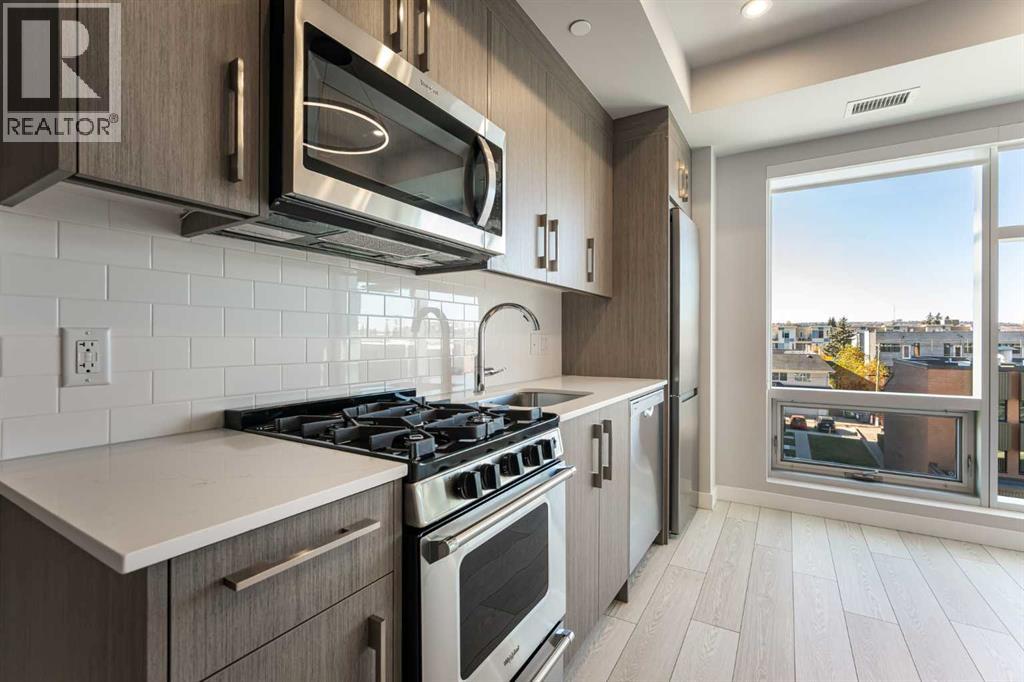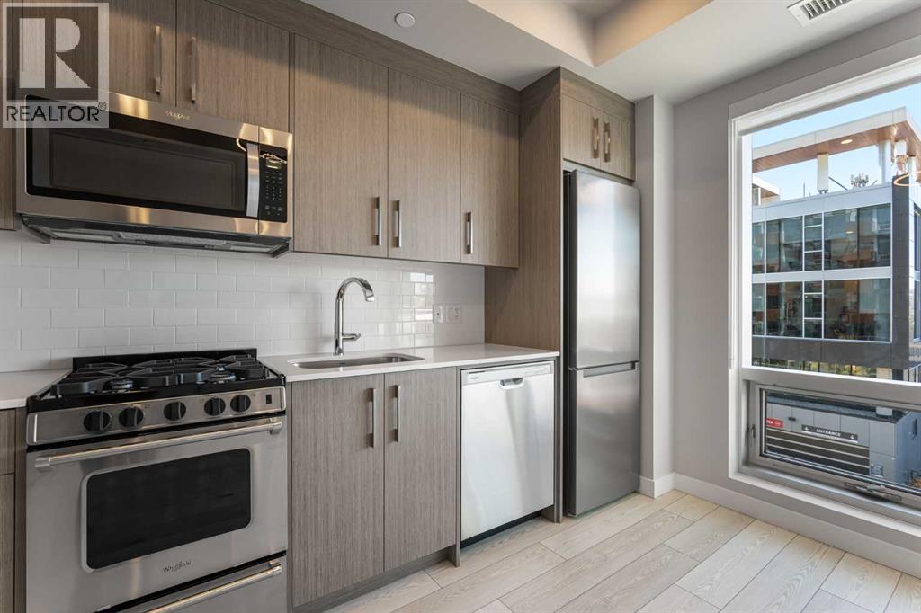 Welcome to a newly constructed 1 bedroom, 1 bathroom condo in Kensington, recognized as one of Calgary's finest neighborhoods for its exceptional combination of walkability, local character, culture, and access to green spaces. The unit boasts attractive upgrades, including a quartz countertop, central air conditioning, a gas stove, all stainless-steel appliances, a white front load washer/dryer, and a 4-piece bathroom. It includes a titled parking space underground. Residents can also utilize a fitness center, bike storage, visitor parking, and a beautifully landscaped terrace—perfect for staying active and engaging with the community. Nearby amenities include the Bow River and its pathway, downtown, Foothills Hospital, cafes, dining options, and much more. (id:55577)