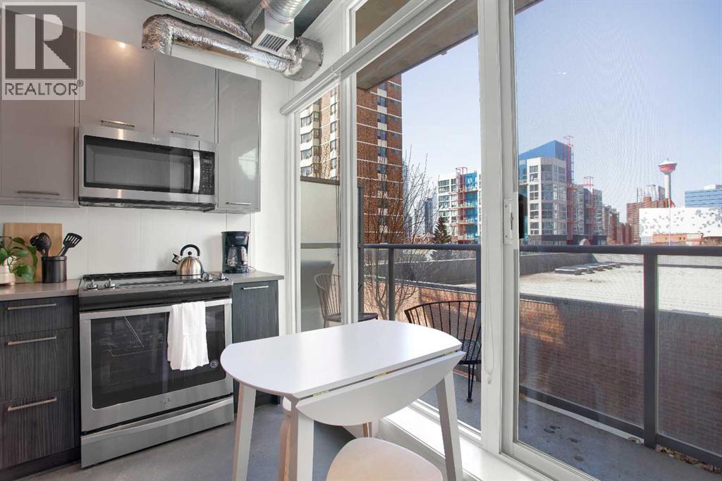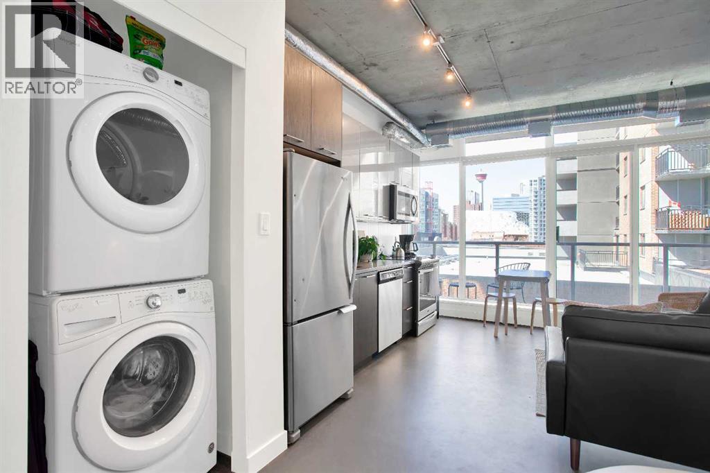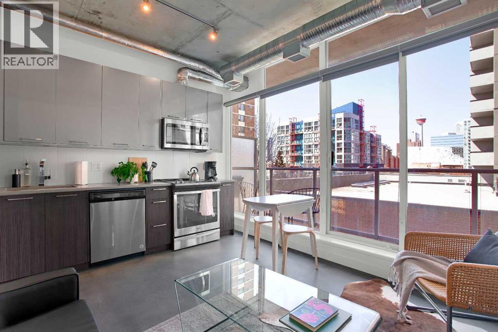 This thoughtfully designed studio at INK by Batistella offers a smart, efficient layout that truly has everything you need for comfortable urban living. Polished concrete floors and floor-to-ceiling windows give it that signature loft feel, while the West facing exposure brings in natural light and views of the Calgary Tower. Enhanced by 9’6” ceilings, the kitchen is finished with quartz countertops, stainless steel appliances, and plenty of cabinetry, all flowing seamlessly into the main living space. In-suite laundry and A/C add everyday convenience. INK is a well-known building for its cool, industrial design and strong community feel. The rooftop patio is a highlight, complete with a fireplace, perfect for relaxing, hosting friends, or catching the Calgary Stampede fireworks in the summer. The building also features a large main floor bike storage area with a repair station, as well as a fully equipped dog wash. Low condo fees keep ownership simple and efficient.The location is what really sets this apart. You can walk to work downtown, head out to the river pathways, grab coffee or dinner in East Village, and easily get to transit. Stampede Park, concerts, and the future Scotia Place event centre are all just minutes away, putting you right in the middle of Calgary’s entertainment district.A great opportunity to own a stylish, low-maintenance space in one of Calgary’s most connected and evolving neighbourhoods. (id:55577)