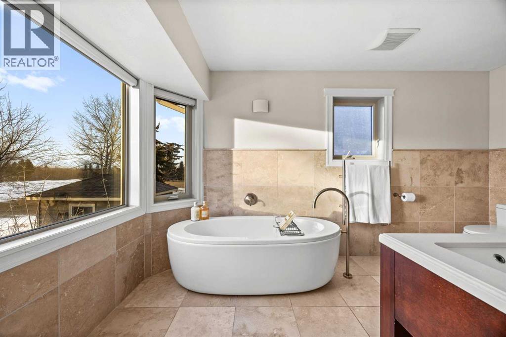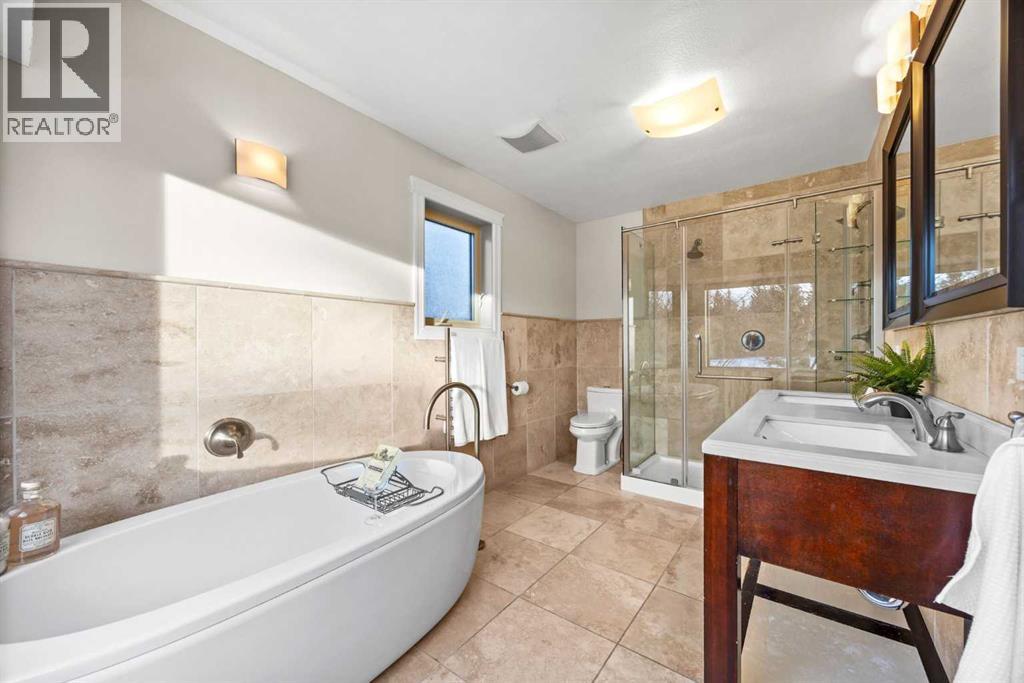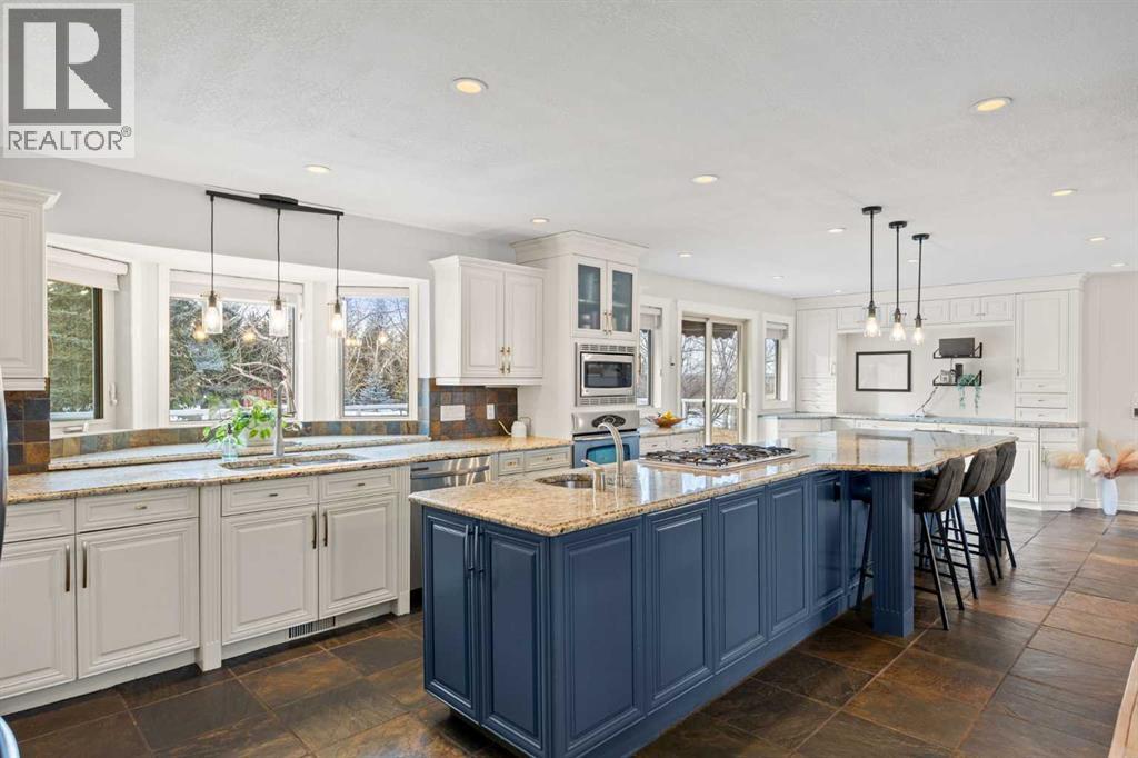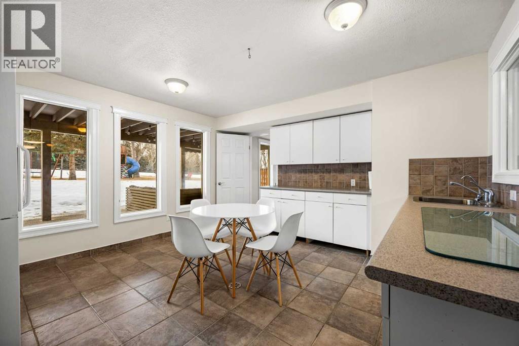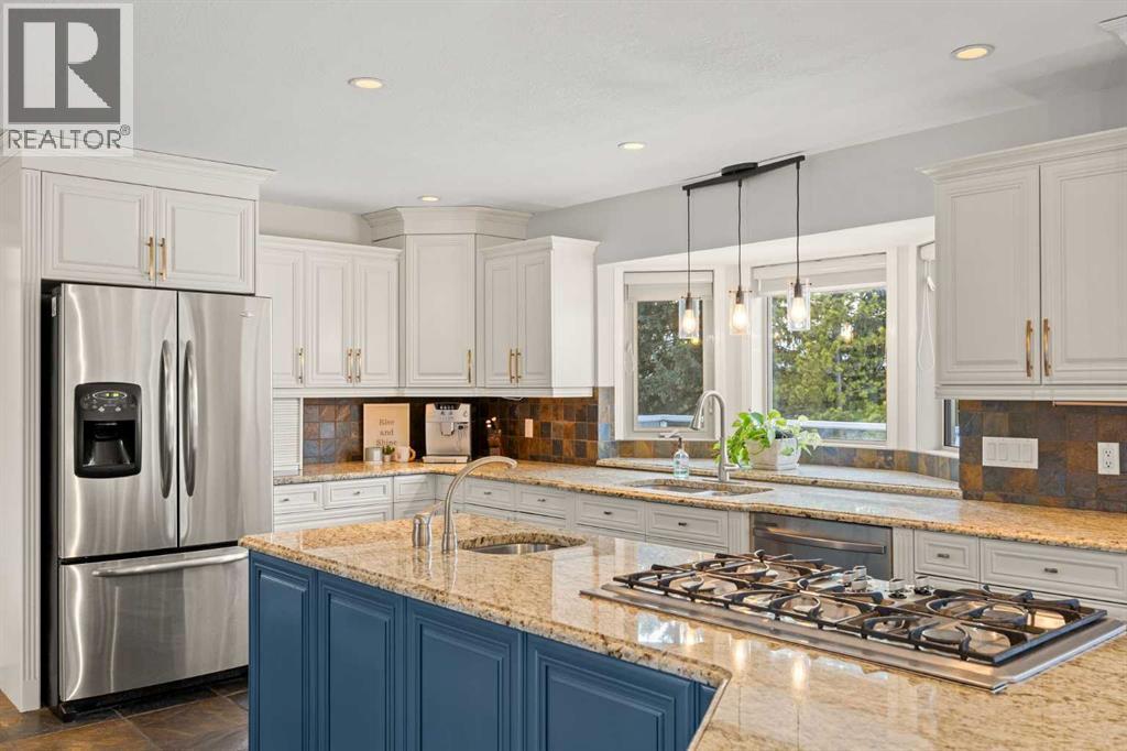 **OPEN HOUSE - Sat 1-3pm & Sun 12-2pm**This renovated walkout bungalow is ideally situated on 2 acres of pristine land in the sought-after Elbow River Estates, offering mountain views, exceptional privacy, and a rare combination of space and lifestyle.The home backs directly onto the Glencoe Golf and Country Club driveway—quite literally placing world-class golf just steps from your backyard. In addition, Elbow Springs Golf Club, Pinebrook Golf & Country Club, and River Spirit Golf Club are all moments away, making this an exceptional location for golf enthusiasts.Inside, the home is bright, open, and thoughtfully updated, featuring new flooring throughout (2024), including heated slate tile, and a striking double-sided fireplace anchoring the main living and dining spaces. The expansive kitchen is designed for entertaining, offering custom cabinetry, granite countertops, heated slate floors, and a massive centre island that truly serves as the heart of the home.Enjoy sunrises from the front porch and spectacular sunsets from the west-facing back deck, where mountain views create a stunning natural backdrop. The west-facing primary retreat features his-and-hers closets and a renovated 5-piece ensuite finished with heated travertine tile. Two additional large bedrooms and a full bathroom complete the main level.The fully developed walkout basement adds outstanding versatility with a fourth bedroom, full bathroom, wine room, family room, media space, gym, and more. A wet sauna, accessible from the exterior, enhances the home’s wellness appeal. Outside, a concrete slab at the rear of the home is perfectly suited for a future hot tub or pool, creating an exceptional outdoor entertaining area.Major mechanical upgrades include new high-efficiency furnaces, hot water tank, and water softener (2021). Garage space is equally impressive, featuring an oversized attached 2-car garage plus a 4-car oversized attached garage/shop, fully insulated and heated—ideal for veh icles, hobbies, or serious workspace.Residents of Elbow River Estates enjoy a true community lifestyle with access to a playground, tennis courts, basketball courts, a winter outdoor rink, and a community horse arena, all while being just minutes from Calgary. (id:55577)