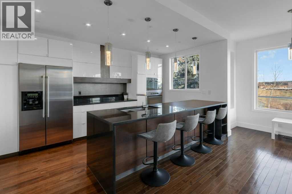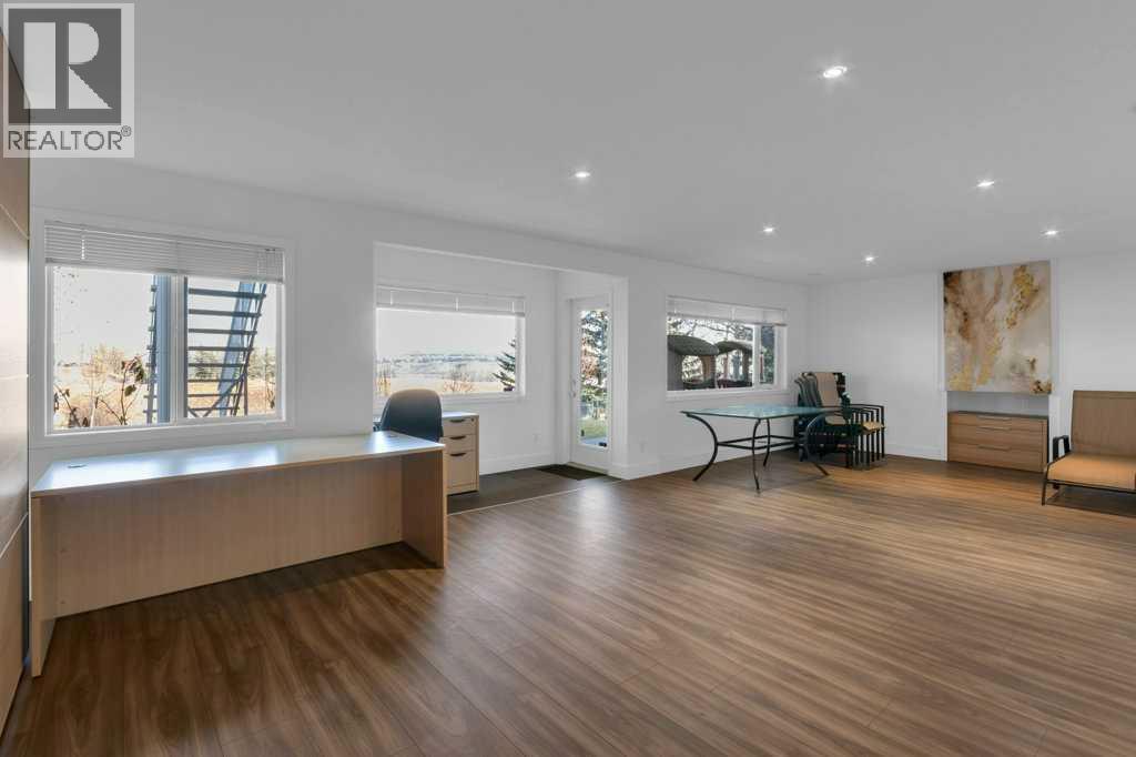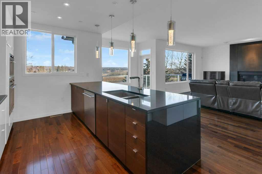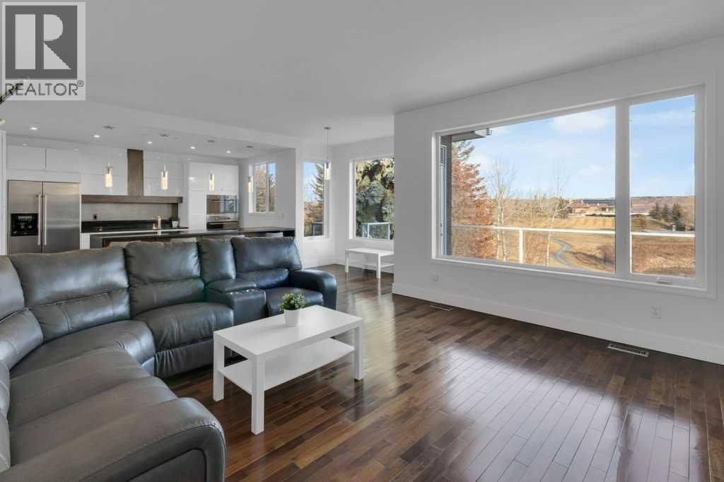 OPEN HOUSE SAT JAN. 31, 2:30-4:00pm and SUN. FEB. 1 2026, 1:30-3:00pm. The purchase of this contemporary home will offer you the benefits of country living, with only a 25-minute drive to downtown Calgary. The layout and location of this home give you panoramic views of Springbank Links Golf Course, Bow River Valley, and Calgary's skyline from all three levels of the residence. You enter this home through a roomy foyer, which leads into an open-concept main floor. The dining room is surrounded by windows and feeds into a modern kitchen, featuring a four-person eating bar. The kitchen overlooks the spacious living room with a gas fireplace encircled by a slate-colored metal facing. Both areas enjoy the spectacular views from the bank of windows, which leads onto the 27-foot expansive deck sharing the views through the glass-paneled railing.The upper floor has double doors leading into an immense primary bedroom with a large view window and a spa-like ensuite with two independent vanities, a generous shower, and room for a future tub of your choosing. There is also a large, functional walk-in closet with custom build-ins. The remaining two bedrooms have ample room, giving you options for their layout, and include walk-in closets.The basement has a spacious bedroom with its own ensuite (perfect for visiting guests). The balance of the basement is set up with a recreational/games room and has access to a large concrete patio.This home includes an attached, oversized triple garage for those looking to work on their cars or set up a workshop. The surrounding community includes a short walk to the Springbank Links clubhouse, open year-round with a variety of food, craft beer, and community events. It is located near exceptional schools with a variety of sporting activities. This home and community will give your family the quality of life they deserve. (id:55577)