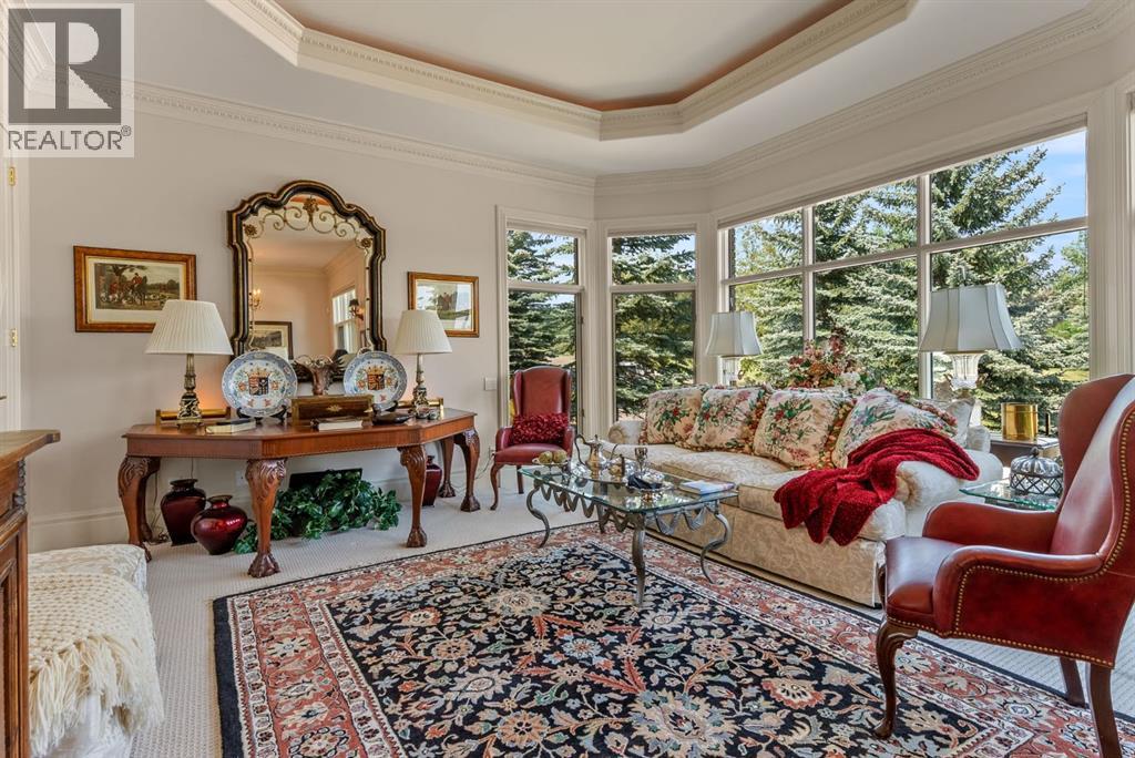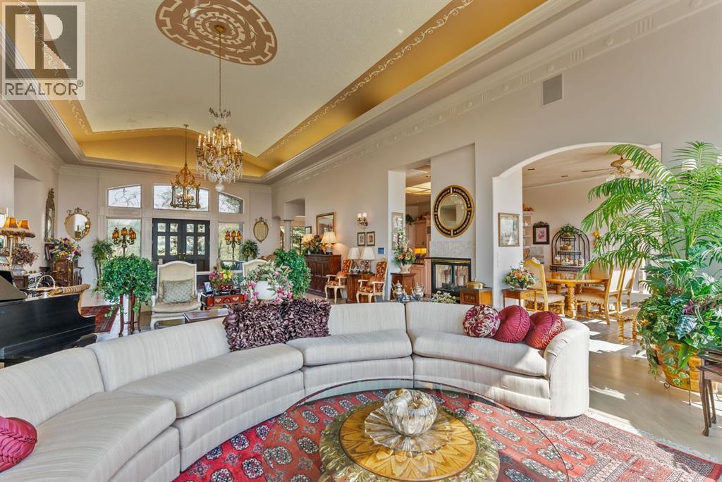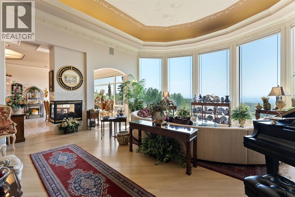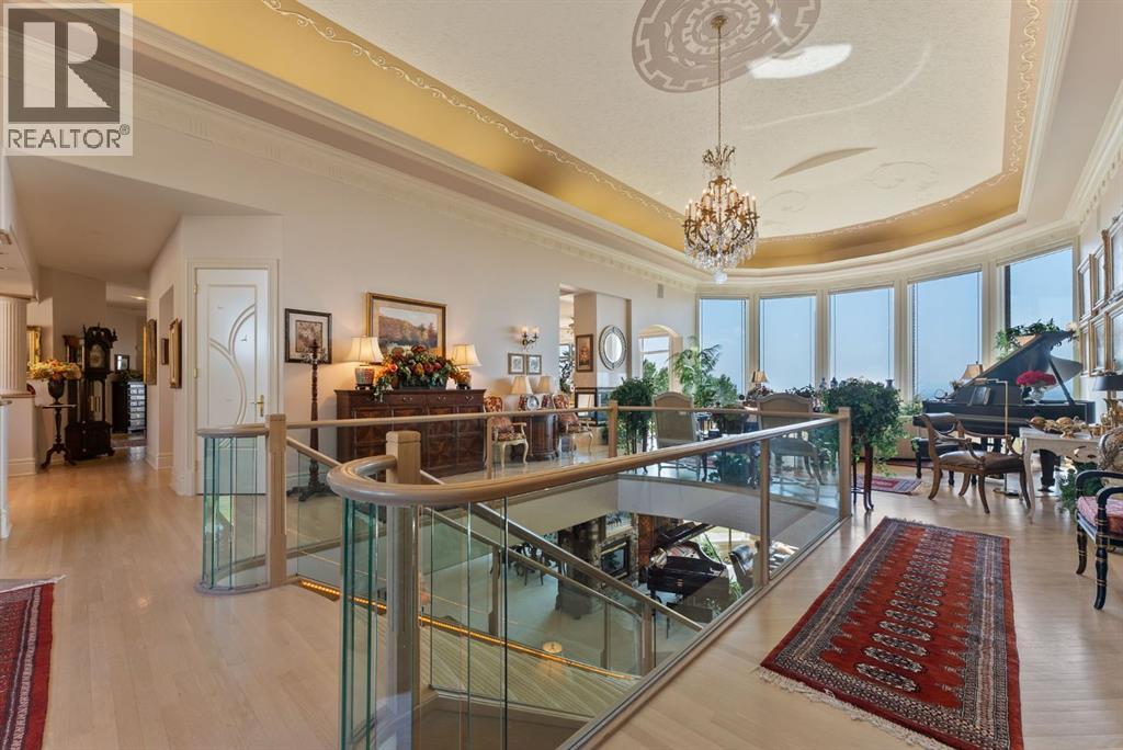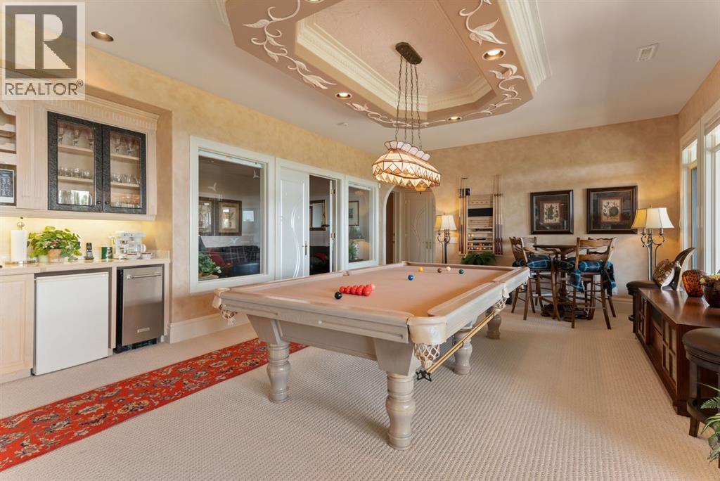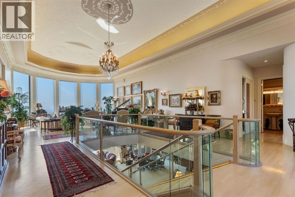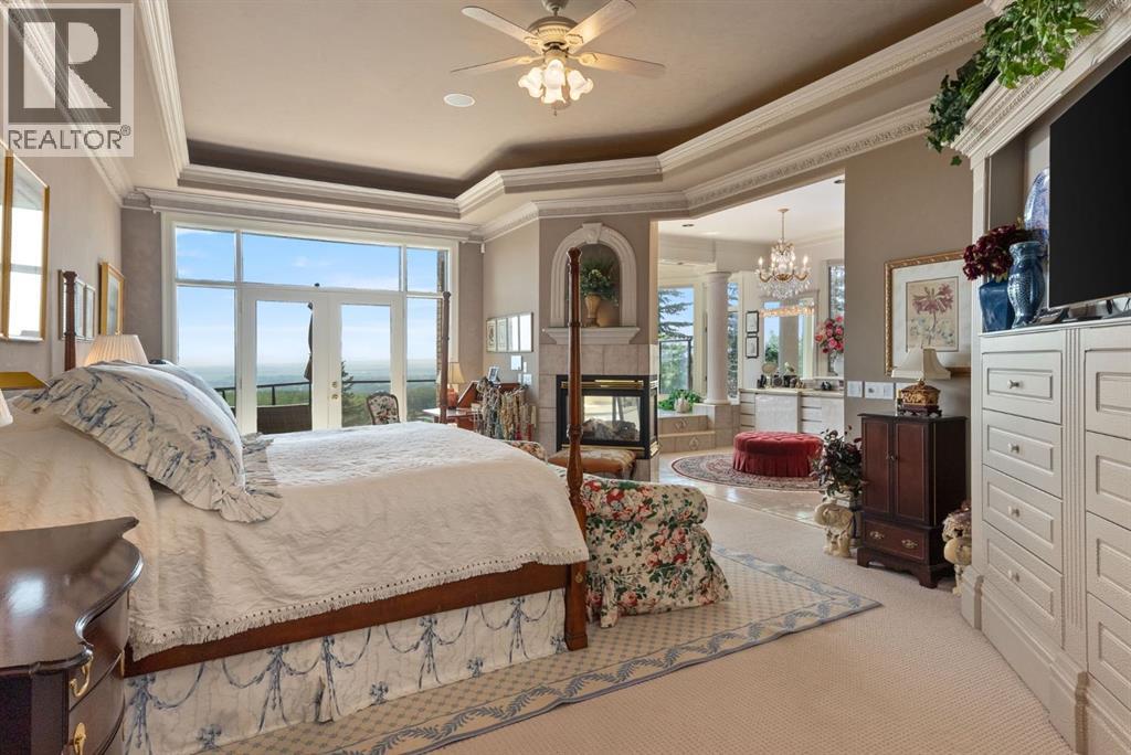 31 Pinnacle Ridge Drive SW – Luxurious Living | 6 Bed | 6 Bath | Walkout Bungalow | 2.32 Acres | Corner Lot | Triple Garage w/ Motorhome Parking | Prestigious Community | Prime LocationWelcome to 31 Pinnacle Ridge Drive SW—a one-of-a-kind estate offering 8400+ square feet of exquisite living space, situated on a private and beautifully landscaped 2.32-acre corner lot in one of Calgary’s most prestigious communities.This 6 bedroom, 6 bathroom walkout bungalow has been masterfully designed to showcase timeless architectural elegance with modern luxury. Perfectly positioned to capture extraordinary, unobstructed views of the Rocky Mountains and the sweeping valley beyond, the home offers complete privacy while remaining just minutes from Stoney Trail, top-rated schools, fine dining, and every major amenity.From the moment you arrive, the home impresses with its grand presence, meticulous stonework, and resort-inspired landscaping. A newly built pool with a cascading waterfall serves as the centrepiece of the outdoor living space—creating a serene oasis for both entertaining and relaxation.Inside, the home features soaring ceilings, ornate moldings, dramatic columns, high end light fixtures including dazzling chandeliers. The thoughtful floor plan offers a room for every occasion, including a den with French doors, a formal study, large wine cellar, an elegant dining room, and a fully developed lower level with a spacious billiard room.Multiple fireplaces add warmth and ambiance throughout, while the gourmet kitchen and easy-care tile flooring strike a perfect balance of function and sophistication.All seven bedrooms are generously appointed, with the primary suite offering a luxurious ensuite bath, an expansive closet/dressing room, and a private deck with jaw-dropping mountain views.Rounding out this exceptional offering is a triple attached garage with dedicated motorhome parking, providing ample space for all your vehicles and recreational needs.Thi s is a rare opportunity to own a landmark residence that combines privacy, prestige, and proximity in one of Calgary’s most sought-after neighbourhoods (id:55577)