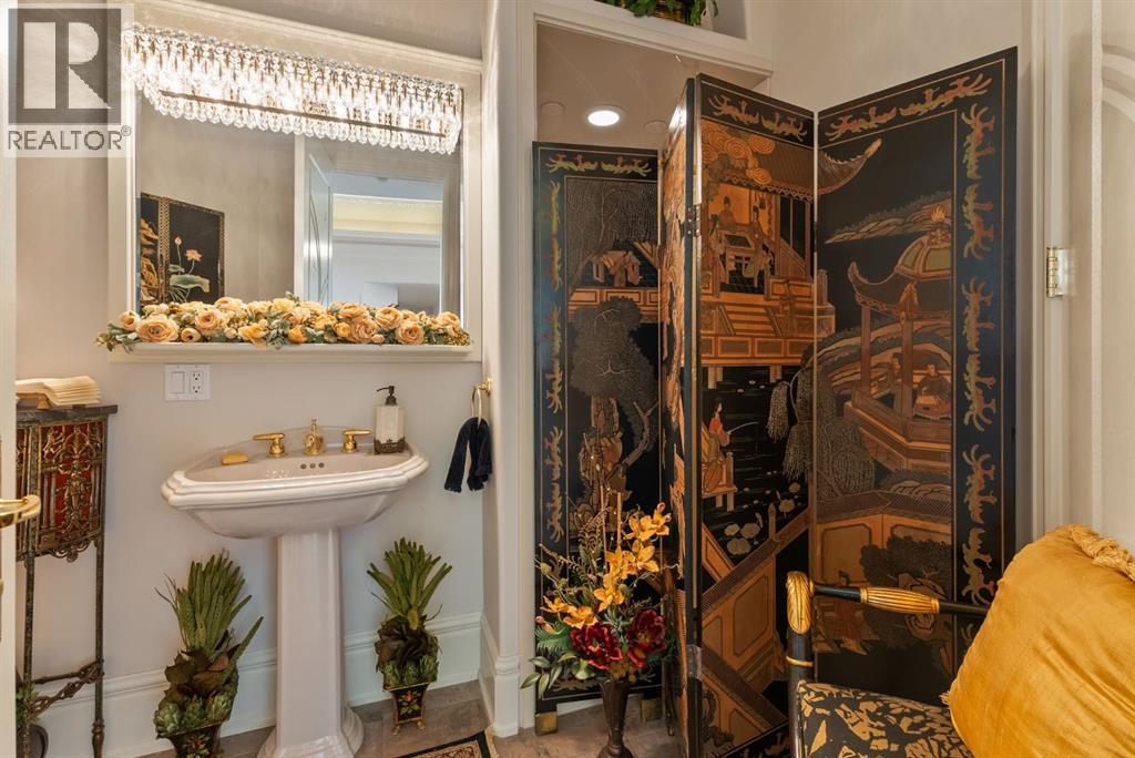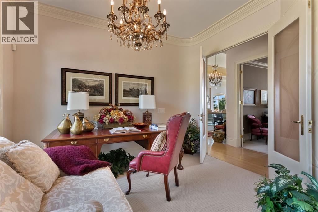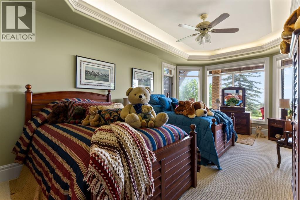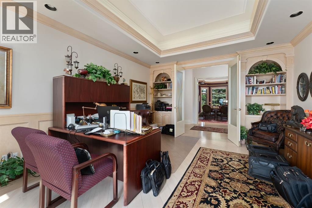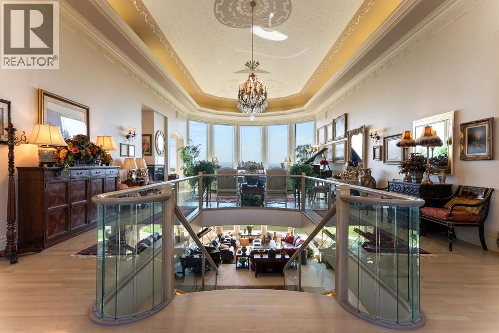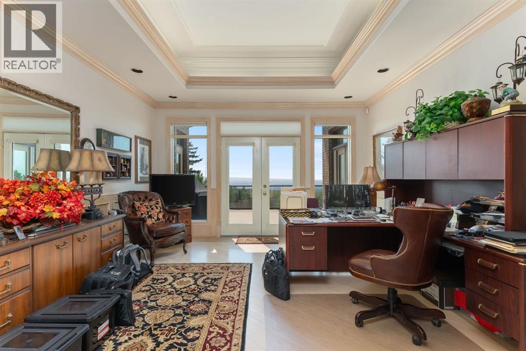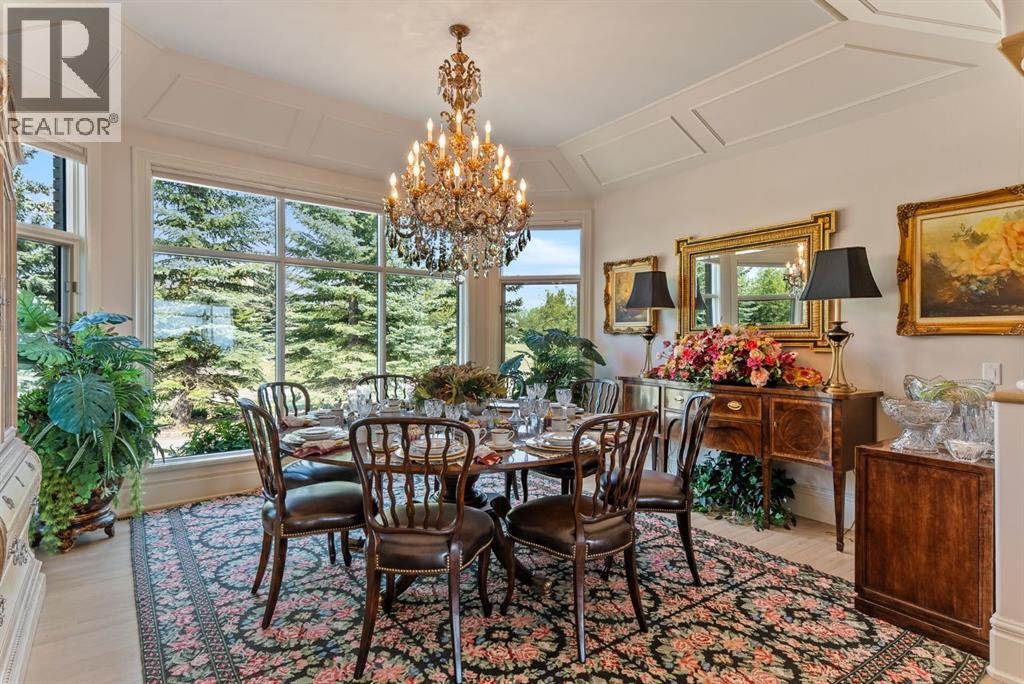 31 Pinnacle Ridge Drive SW – Luxurious Living | 6 Bed | 6 Bath | Walkout Bungalow | 2.32 Acres | Corner Lot | Triple Garage w/ Motorhome Parking | Prestigious Community | Prime LocationWelcome to 31 Pinnacle Ridge Drive SW—a one-of-a-kind estate offering 8400+ square feet of exquisite living space, situated on a private and beautifully landscaped 2.32-acre corner lot in one of Calgary’s most prestigious communities.This 6 bedroom, 6 bathroom walkout bungalow has been masterfully designed to showcase timeless architectural elegance with modern luxury. Perfectly positioned to capture extraordinary, unobstructed views of the Rocky Mountains and the sweeping valley beyond, the home offers complete privacy while remaining just minutes from Stoney Trail, top-rated schools, fine dining, and every major amenity.From the moment you arrive, the home impresses with its grand presence, meticulous stonework, and resort-inspired landscaping. A newly built pool with a cascading waterfall serves as the centrepiece of the outdoor living space—creating a serene oasis for both entertaining and relaxation.Inside, the home features soaring ceilings, ornate moldings, dramatic columns, high end light fixtures including dazzling chandeliers. The thoughtful floor plan offers a room for every occasion, including a den with French doors, a formal study, large wine cellar, an elegant dining room, and a fully developed lower level with a spacious billiard room.Multiple fireplaces add warmth and ambiance throughout, while the gourmet kitchen and easy-care tile flooring strike a perfect balance of function and sophistication.All seven bedrooms are generously appointed, with the primary suite offering a luxurious ensuite bath, an expansive closet/dressing room, and a private deck with jaw-dropping mountain views.Rounding out this exceptional offering is a triple attached garage with dedicated motorhome parking, providing ample space for all your vehicles and recreational needs.Thi s is a rare opportunity to own a landmark residence that combines privacy, prestige, and proximity in one of Calgary’s most sought-after neighbourhoods (id:55577)