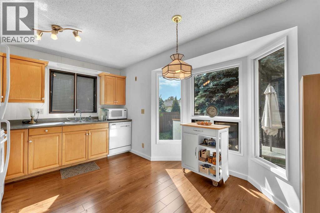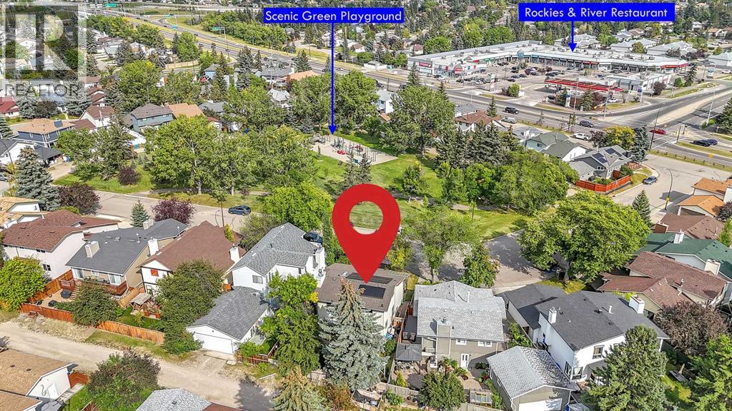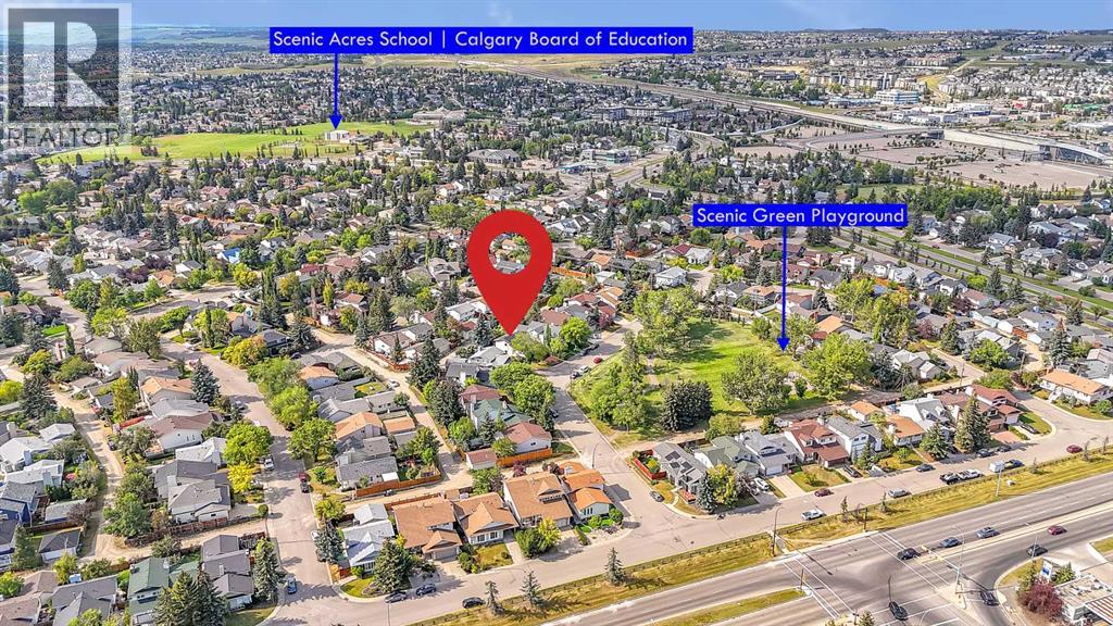 Welcome to the highly sought-after community of Scenic Acres! The location of this charming home couldn’t be better as it’s situated directly across from a large park, a short distance from top-rated schools, Crowfoot and Silver Springs shopping centers, a 10 minute walk to the LRT station, and all of the essential amenities that you could ask for. With 1,635 square feet of character and warmth, this home features 3 spacious bedrooms and 3 bathrooms, a double attached, heated garage and a great list of updates. Situated directly across from a large park, enjoy tranquil views and serenity at your doorstep. The curb appeal on this home is fantastic with the inviting front porch, covered pergola, and lush garden beds. As you step inside, you’re greeted by a soaring vaulted ceiling, and the warmth of laminate plank floors. Natural light flows through the large front windows illuminates the living and dining room. The kitchen is well equipped with maple cabinetry and a cozy breakfast nook that overlooks like picturesque backyard. Adorned with a classic wood burning fireplace and attractive built-in shelving, the family room makes for the perfect spot to relax, entertain guests, or enjoy the outdoor living space through the patio doors. You’ll love the west facing, dream backyard that’s filled with mature trees, plants, shrubs and flowers. The sizeable patio area is a great spot for bbqs, sipping on your morning coffee, or simply enjoying the peaceful ambiance under the retractable awning. On the second level of the home you’ll discover 3 generously sized bedrooms. The primary bedroom overlooks the backyard and has a 3-piece ensuite. Finishing off this area is a 4-piece main bathroom with skylight for natural light throughout the day. The basement is filled with potential to mold it to suit your unique lifestyle. It has a large rec room that can be setup in a variety of ways as a home theatre, media area, hobby/crafts room, or play space. With plenty of storage space, th ere’s incredible amounts of utility on this level. Additional upgrades to the home include a brand new rubberized driveway with 5 year transferrable warranty, 13 energy efficient solar panels, 2 furnaces installed in 2020 and an irrigation system. This home is not just a place to live, it’s a lifestyle waiting to be embraced. Don’t miss out on this fantastic opportunity — schedule a viewing today! (id:55577)
