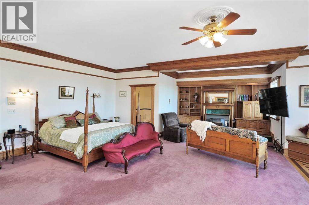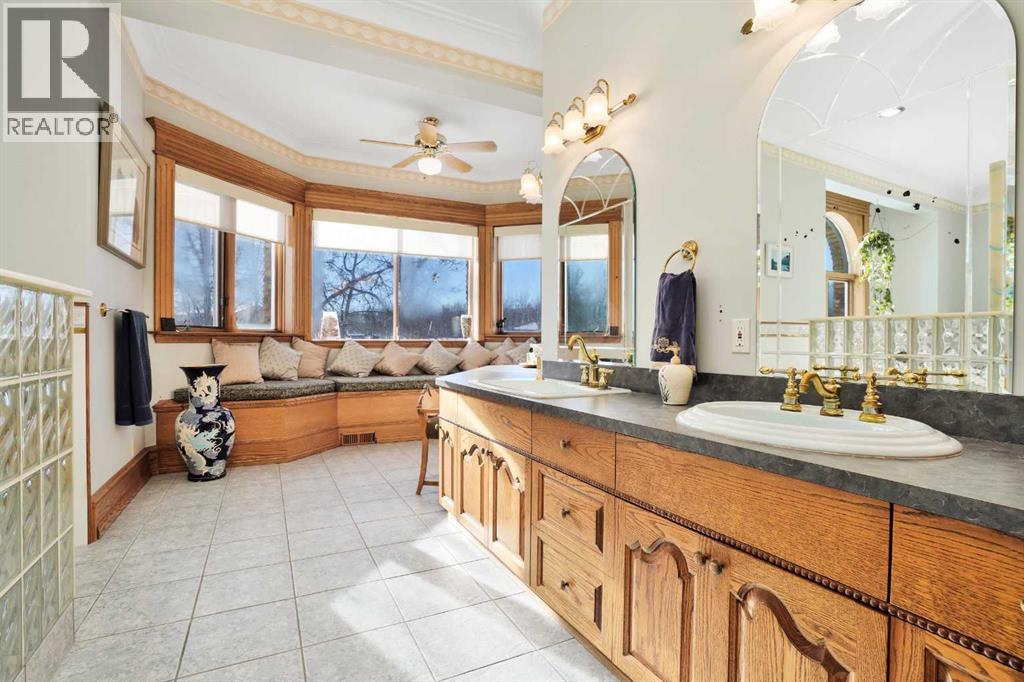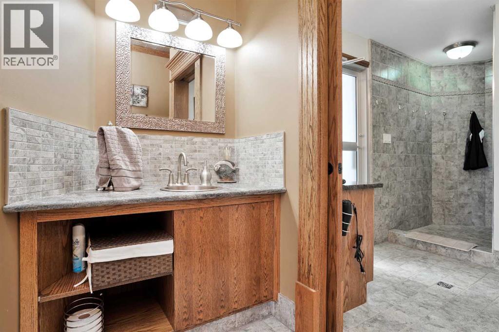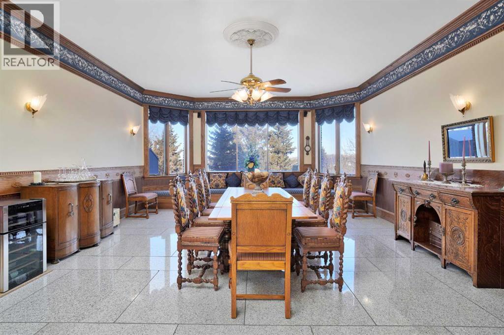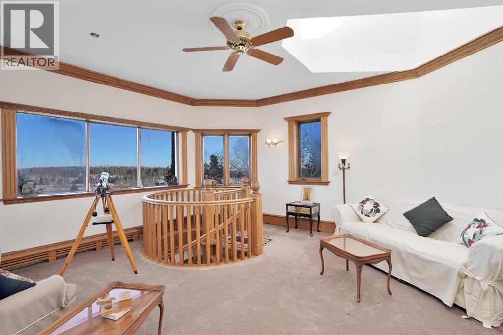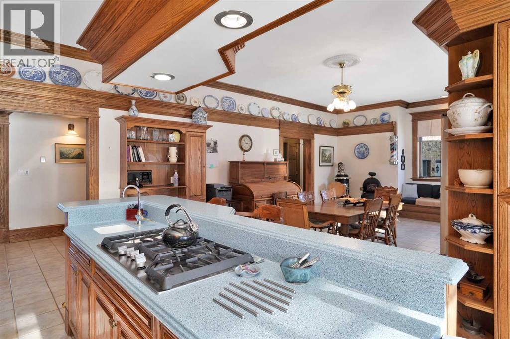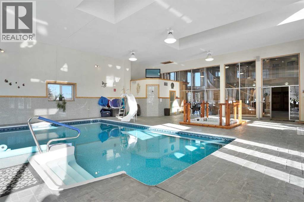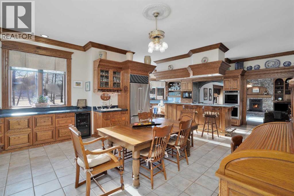 Nestled deep in the foothill, 45 minutes west of Calgary International airport, this completely custom-built masterpiece is a true work of art, designed for those who appreciate craftsmanship, privacy, and timeless beauty. The exterior is a testament to authentic, old-world craftsmanship, featuring hand-picked field stone sourced directly from the owner’s properties. The home hosts a level of craftsmanship rarely found today. Stepping inside, the grand foyer set the tone for the rest of the home. A vintage bronze fountain, meticulously built using porcelain, Alberta river rock, and Ammonites, adds an organic, artistic touch. The grand staircase, a structural and artistic masterpiece, was engineered for stability and handcrafted. An elevator, that services each floor. Through the main entrance is the stunning games room which is a true showpiece, A wine bar and custom full bar, complemented by a matching coffee bar and built-in window seats that double as discreet storage elevate the space. Off the games room is the indoor pool area which is a luxurious retreat. Whether you want to lounge in the warmth, swim at your leisure, soak in the hot tub , relax in the sauna, this space offers endless possibilities. At the heart of this home is a true “working” country kitchen, designed for multiple people to cook, prep, or gather. Conveniently located near the formal dining room and oversized pantry, it allows for providing both elegance and seamless functionality, while the spacious layout ensures effortless entertaining and everyday comfort. The basement level is a fully finished entertainer’s dream. Includes entertaining area with a 2 Pce bathroom and the theater room . The theater room is a dedicated cinematic retreat, featuring a custom-built permanent movie screen. Designed for peak sound retention, the entire space is fully insulated, ensuring an immersive experience. The main house includes 5 full bedrooms each with ensuites. The master suite is a private sanctuary, blending warmth, history, and comfort. A striking fireplace wall, handcrafted from solid oak, serves as a focal point, 2 walk-in closets and the private loft/turret. A hand-milled solid oak spiral staircase leads to this secluded space, which is bathed in natural light from multiple skylights. This loft offers a serene escape from the world below. An underground tunnel provides access between the lower agricultural level and the home. Three springs supply fresh, naturally sourced water straight from the property. A 3-bedroom suite above the garage and two apartments above the barn provide independent living space for staff, guests or family. The Upper Barn includes 9 Stalls, a wash bay & office perfect for an equestrian lifestyle. The original farmhouse & working barn yard adds to its functionality, charm and history. Every detail of this home has been carefully considered, combining expert craftsmanship, rare materials, and thoughtful design. This is more than a residence—it’s a true legacy property. (id:55577)