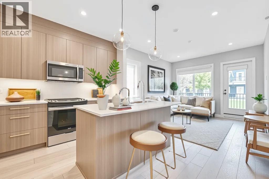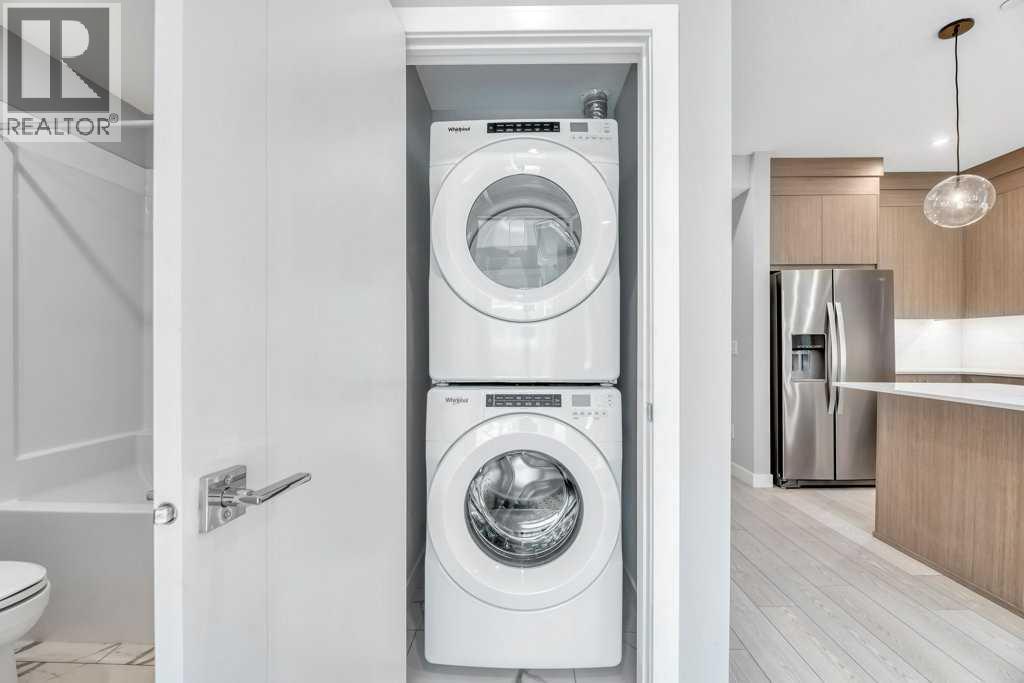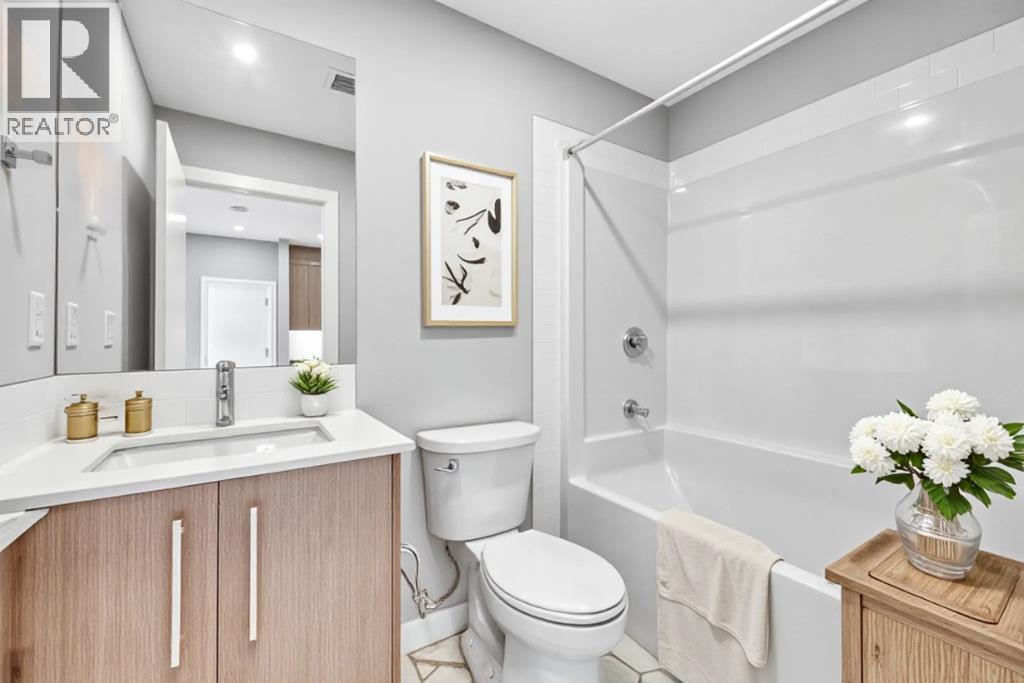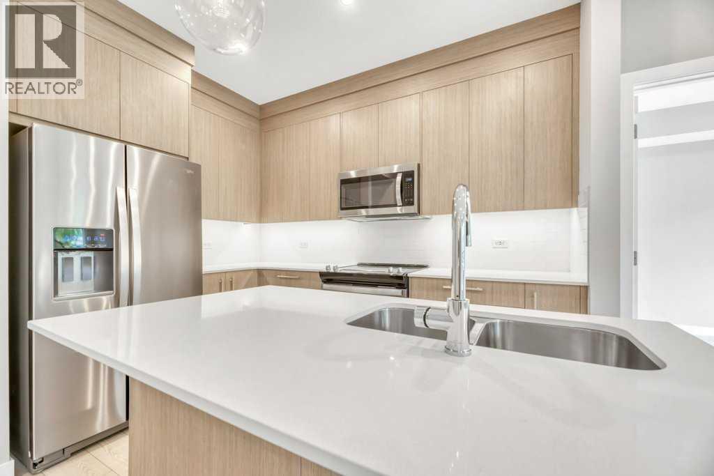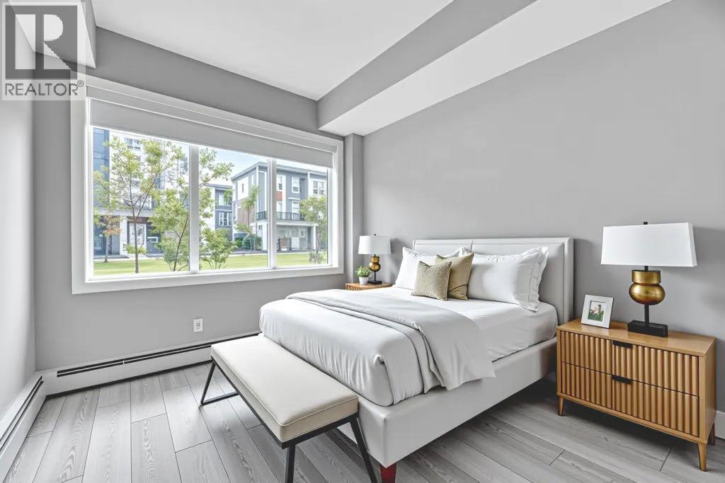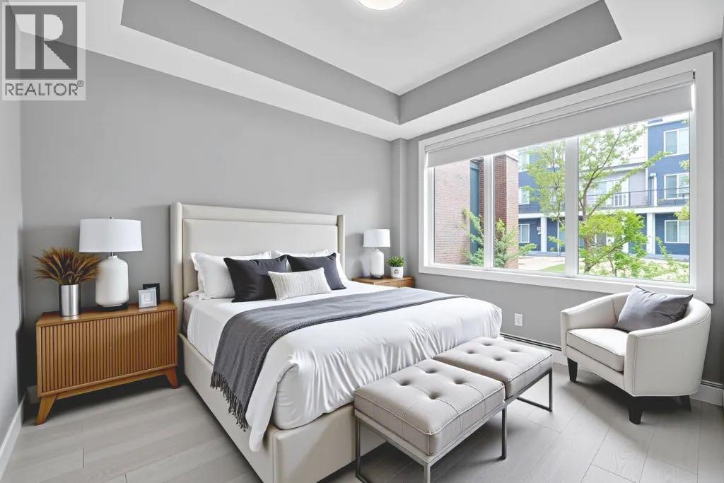Brand new and beautiful! This 2 bedroom condo in The Lockwood offers carefree living in the new and vibrant community of Chelsea in Chestermere. This sunny open concept unit features modern, stylish finishes in a functional layout. Enjoy the 9’ ceilings, luxury vinyl plank flooring and smart home technology. The heart of this unit is the contemporary kitchen complete with gleaming stainless steel appliances, full height wood grain cabinetry, quartz counter tops and a centre island for friends and family to gather. The kitchen flows seamlessly into the living area where you can step out onto your private balcony where you’ll enjoy the convenience of a gas outlet for your BBQ. This is the perfect place to enjoy your morning coffee or unwind at the end of the day. The owner’s retreat is spacious and bright with a walk through closet leading to your own 3 pc ensuite bath. The second bedroom is perfect as a child’s room, guest room, office or maybe get a room mate to help with the mortgage. You can enjoy easy access to the owner’s gym and lounge in this well kept, amenity rich building. You and your pets can enjoy the great outdoors in the expansive outdoor area and courtyard. There is also a bike room and even a pet spa. Get ready to enjoy all that Chestermere has to offer with scenic pathways and parks, a growing number of businesses and of course the lake itself all within an easy commute to the city. You’re going to love living here! (id:55577)