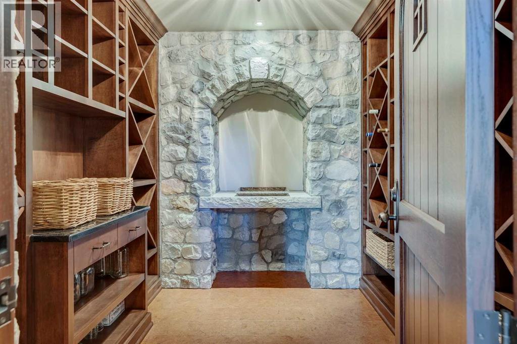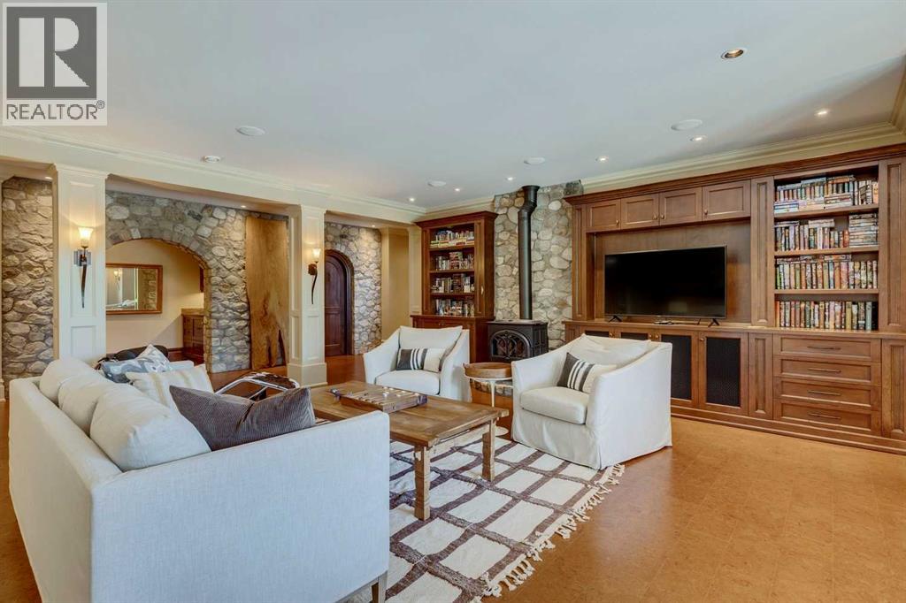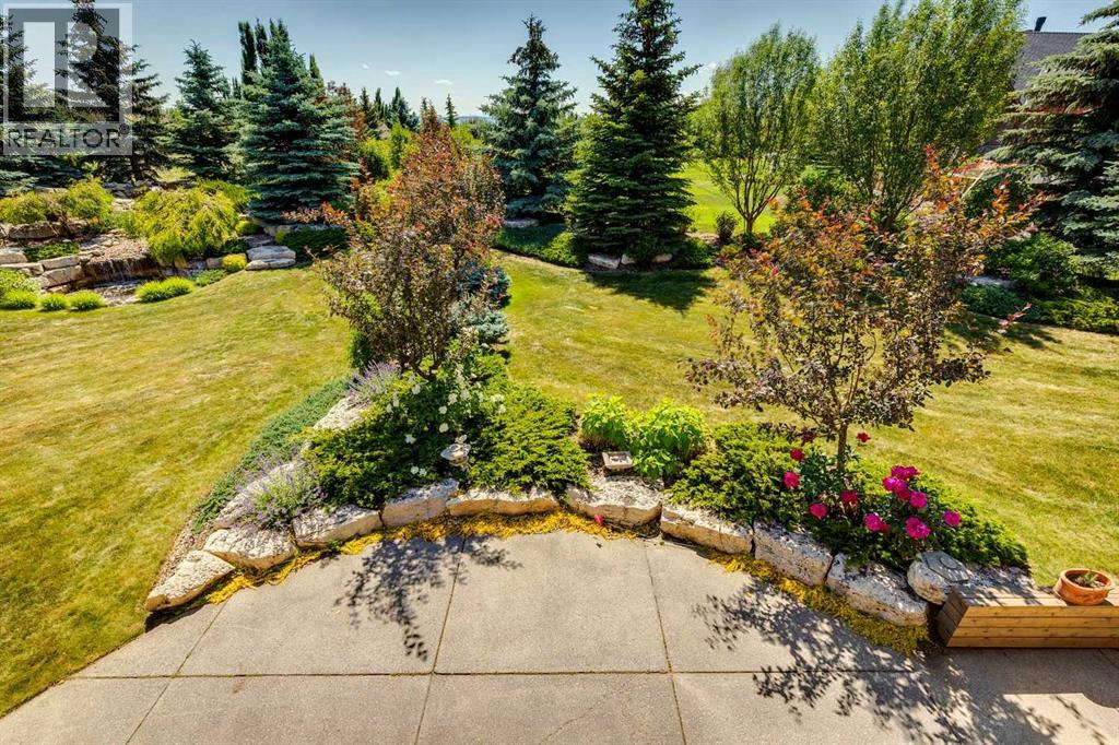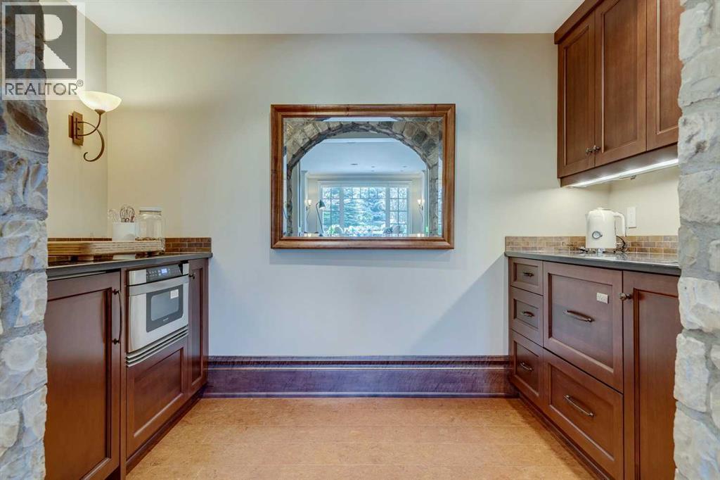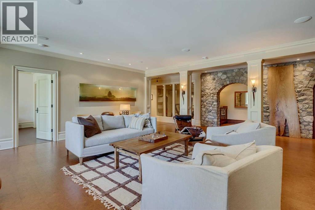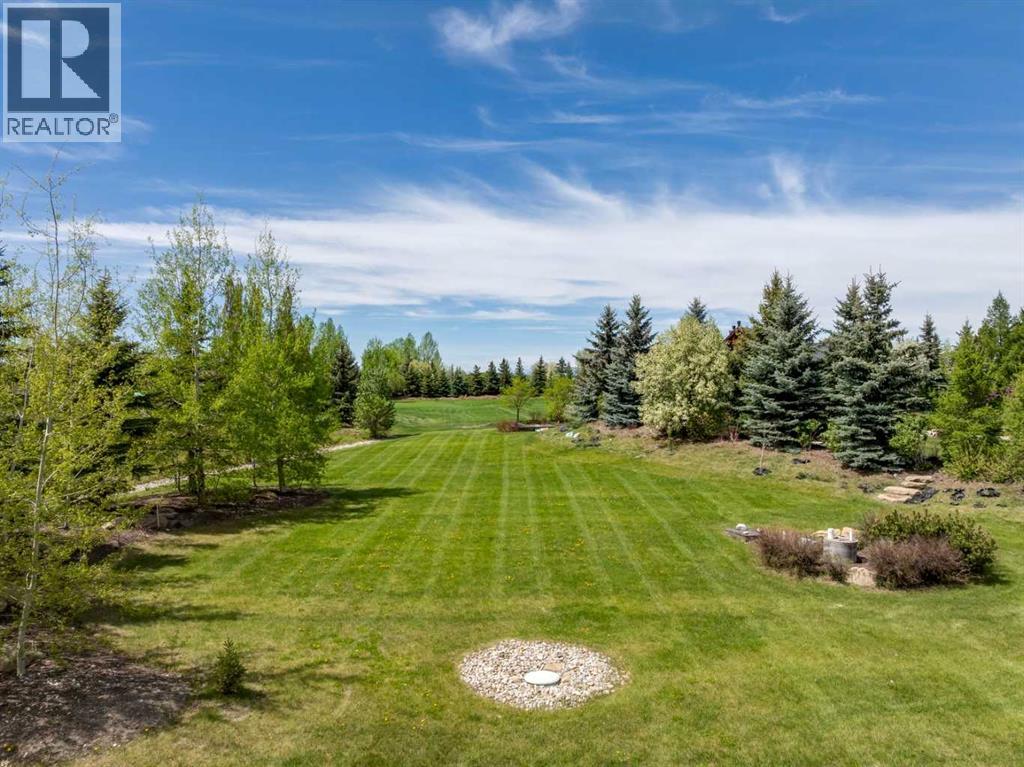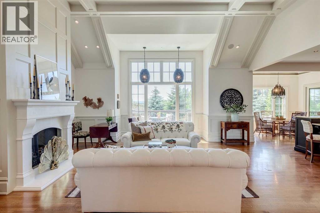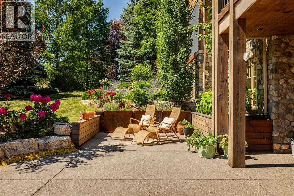 Nestled within the prestigious Morgans Rise estate community, this custom built 4 bedroom bungalow by Gallaghers Homes showcases refined craftsmanship with over 6,285 SF of luxurious living space, thoughtfully situated on a meticulously landscaped 2-acre parcel. Hear the gurgling water feature and the bird songs as you contemplate the beauty of the world famous Rocky Mountains. Step inside this luxurious architectural gem to experience premium finishes including site installed 1/4 sawn oak hardwood, cork flooring, glittering Schonbek chandeliers, intricate wainscoting and narrow French passage doors adorned with beveled and leaded glass. The grand foyer with its diamond-patterned limestone and marble tile opens to a sophisticated open-concept living area enhanced by Bermuda and double cornice ceilings. At the heart of the home is a chef's dream kitchen featuring a Wolf 6-burner gas range, wall oven and warming drawer, Subzero fridge and 2 fridge drawers and a Meile dishwasher. There is a spacious island, custom cabinetry, bronzed hardware and a walk-through pantry tucked behind the kitchen. Enjoy casual meals in the sunlit breakfast nook. Have morning coffee on the raised wood deck or cozy up with the gas heater or build a fire in the wood burning fireplace on the 3 season screened porch. A formal dining room with built-in bookshelves and wet bar makes entertaining a pleasure. The principal bedroom is a serene retreat complete with a sitting area, walk-in closet with a dressing table, and a spa-like 6-piece ensuite featuring a steam shower, soaker tub, towel warmer and double vanity. The main level also includes a den/flex room with fireplace, a laundry room and mudroom. The walk-out level is designed for comfort and entertaining. It is anchored by a spacious family room and gas fireplace that opens to the patio. There is a private guest suite with a 4 piece ensuite bath, 2 additional bedrooms, a full and half bath, fitness room, wine cellar, and wet bar, 2 oversize d storage rooms, cedar closet and lockers. Other appliances include a Subzero wine fridge, Subzero bar fridge, Sharp microwave drawer, 2 Fisher & Paykel dishwasher drawers, central vacuum system and a front loading Meile front load washer and dryer. Additional features include 4 fireplaces, an elevator, heated 4-car garage, Split faced fieldstone detailing inside and out, central a/c, water softener and purifier, cistern, underground sprinklers and a security system. Recent updates include fresh Farrow and Ball paint, new site installed oak hardwood flooring in the principal bedroom, warm cork flooring in the walk out level bedrooms, new lighting, chandeliers and pot lights, updated electrical wiring, updated Mother Board and hydraulics on the elevator and additional fruit trees/berry plants/perennials. Plenty of room to build a pool or guest house. This is more than a home in the country; it's an opportunity for an elevated lifestyle in this exceptional property only 6 minutes from Calgary's West Side. (id:55577)