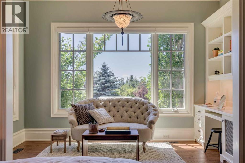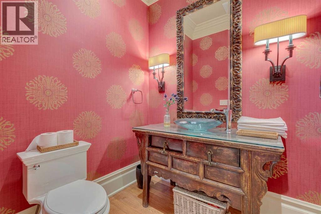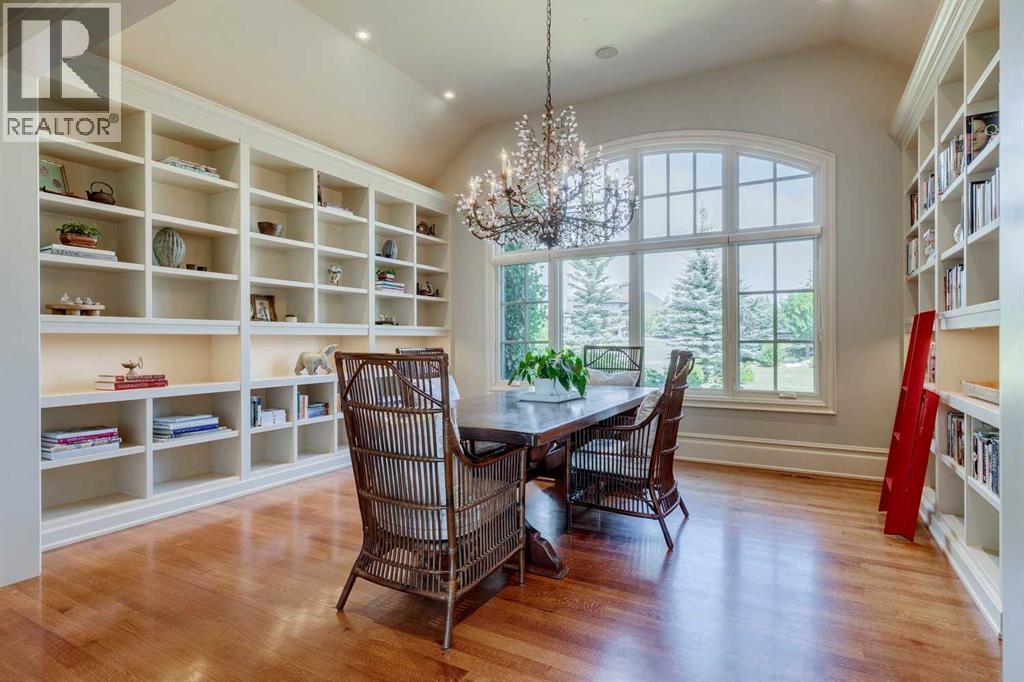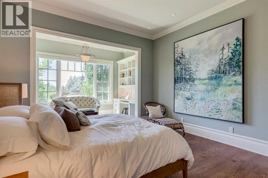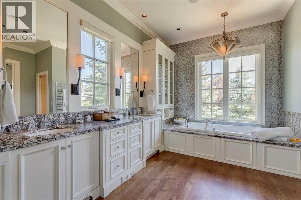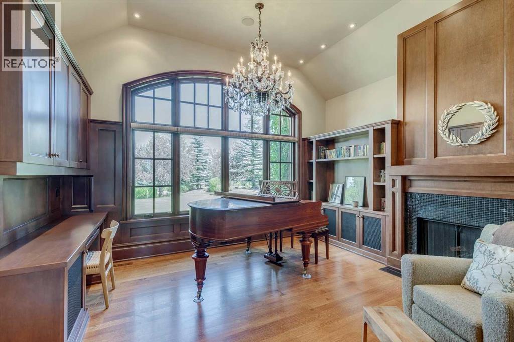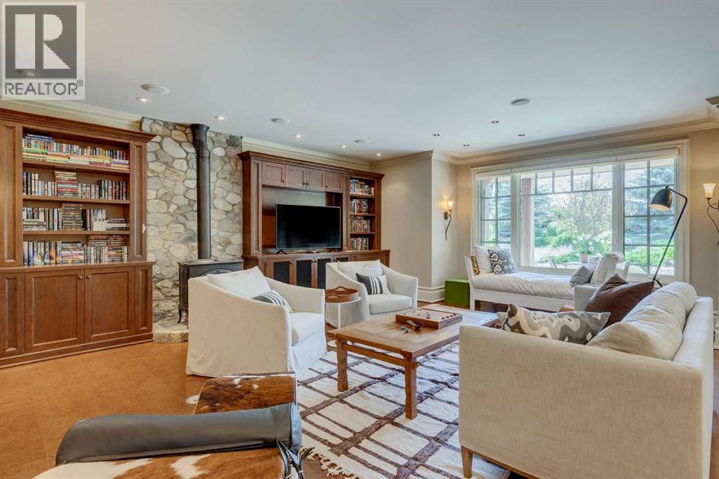 Nestled within the prestigious Morgans Rise estate community, this custom built 4 bedroom bungalow by Gallaghers Homes showcases refined craftsmanship with over 6,285 SF of luxurious living space, thoughtfully situated on a meticulously landscaped 2-acre parcel. Hear the gurgling water feature and the bird songs as you contemplate the beauty of the world famous Rocky Mountains. Step inside this luxurious architectural gem to experience premium finishes including site installed 1/4 sawn oak hardwood, cork flooring, glittering Schonbek chandeliers, intricate wainscoting and narrow French passage doors adorned with beveled and leaded glass. The grand foyer with its diamond-patterned limestone and marble tile opens to a sophisticated open-concept living area enhanced by Bermuda and double cornice ceilings. At the heart of the home is a chef's dream kitchen featuring a Wolf 6-burner gas range, wall oven and warming drawer, Subzero fridge and 2 fridge drawers and a Meile dishwasher. There is a spacious island, custom cabinetry, bronzed hardware and a walk-through pantry tucked behind the kitchen. Enjoy casual meals in the sunlit breakfast nook. Have morning coffee on the raised wood deck or cozy up with the gas heater or build a fire in the wood burning fireplace on the 3 season screened porch. A formal dining room with built-in bookshelves and wet bar makes entertaining a pleasure. The principal bedroom is a serene retreat complete with a sitting area, walk-in closet with a dressing table, and a spa-like 6-piece ensuite featuring a steam shower, soaker tub, towel warmer and double vanity. The main level also includes a den/flex room with fireplace, a laundry room and mudroom. The walk-out level is designed for comfort and entertaining. It is anchored by a spacious family room and gas fireplace that opens to the patio. There is a private guest suite with a 4 piece ensuite bath, 2 additional bedrooms, a full and half bath, fitness room, wine cellar, and wet bar, 2 oversize d storage rooms, cedar closet and lockers. Other appliances include a Subzero wine fridge, Subzero bar fridge, Sharp microwave drawer, 2 Fisher & Paykel dishwasher drawers, central vacuum system and a front loading Meile front load washer and dryer. Additional features include 4 fireplaces, an elevator, heated 4-car garage, Split faced fieldstone detailing inside and out, central a/c, water softener and purifier, cistern, underground sprinklers and a security system. Recent updates include fresh Farrow and Ball paint, new site installed oak hardwood flooring in the principal bedroom, warm cork flooring in the walk out level bedrooms, new lighting, chandeliers and pot lights, updated electrical wiring, updated Mother Board and hydraulics on the elevator and additional fruit trees/berry plants/perennials. Plenty of room to build a pool or guest house. This is more than a home in the country; it's an opportunity for an elevated lifestyle in this exceptional property only 6 minutes from Calgary's West Side. (id:55577)