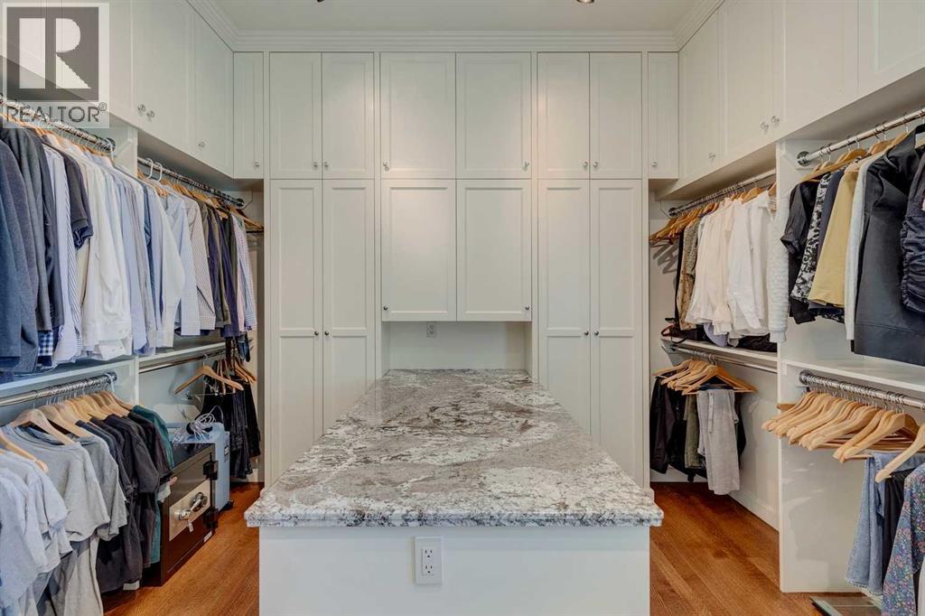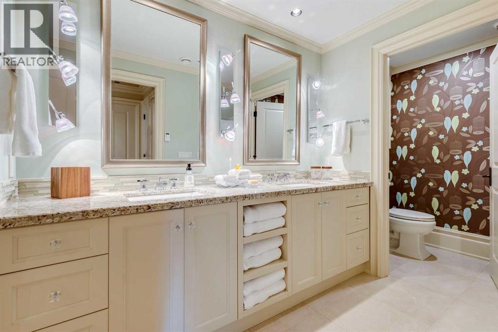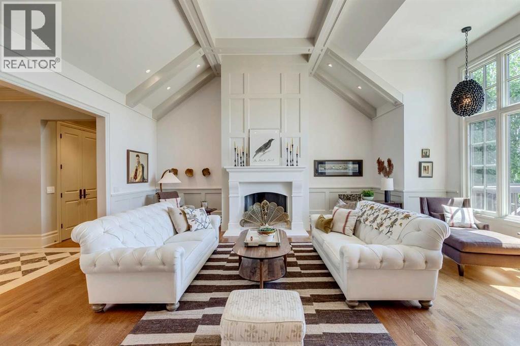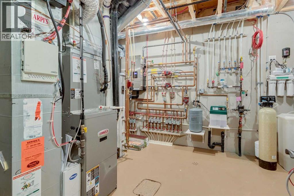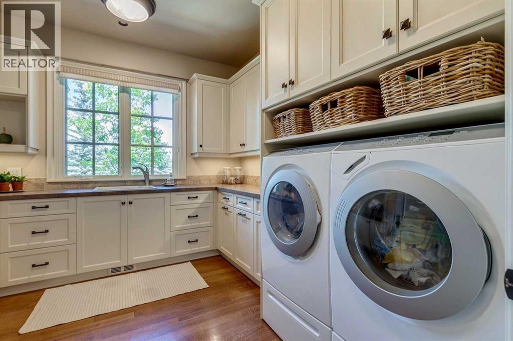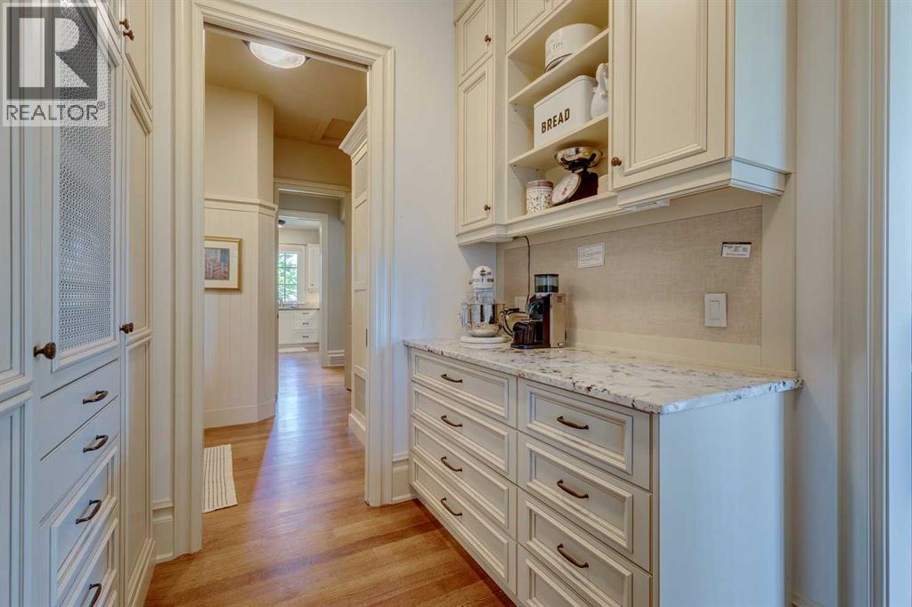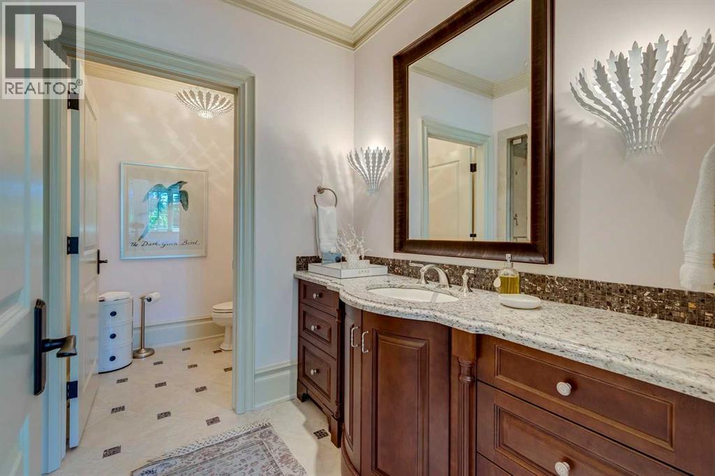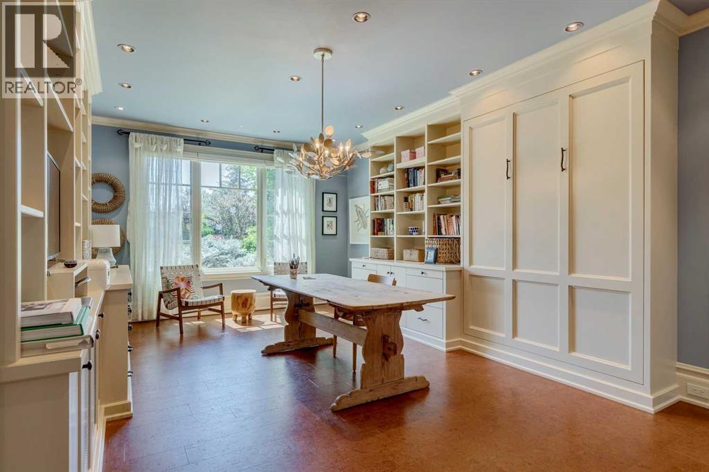 Nestled within the prestigious Morgans Rise estate community, this custom built 4 bedroom bungalow by Gallaghers Homes showcases refined craftsmanship with over 6,285 SF of luxurious living space, thoughtfully situated on a meticulously landscaped 2-acre parcel. Hear the gurgling water feature and the bird songs as you contemplate the beauty of the world famous Rocky Mountains. Step inside this luxurious architectural gem to experience premium finishes including site installed 1/4 sawn oak hardwood, cork flooring, glittering Schonbek chandeliers, intricate wainscoting and narrow French passage doors adorned with beveled and leaded glass. The grand foyer with its diamond-patterned limestone and marble tile opens to a sophisticated open-concept living area enhanced by Bermuda and double cornice ceilings. At the heart of the home is a chef's dream kitchen featuring a Wolf 6-burner gas range, wall oven and warming drawer, Subzero fridge and 2 fridge drawers and a Meile dishwasher. There is a spacious island, custom cabinetry, bronzed hardware and a walk-through pantry tucked behind the kitchen. Enjoy casual meals in the sunlit breakfast nook. Have morning coffee on the raised wood deck or cozy up with the gas heater or build a fire in the wood burning fireplace on the 3 season screened porch. A formal dining room with built-in bookshelves and wet bar makes entertaining a pleasure. The principal bedroom is a serene retreat complete with a sitting area, walk-in closet with a dressing table, and a spa-like 6-piece ensuite featuring a steam shower, soaker tub, towel warmer and double vanity. The main level also includes a den/flex room with fireplace, a laundry room and mudroom. The walk-out level is designed for comfort and entertaining. It is anchored by a spacious family room and gas fireplace that opens to the patio. There is a private guest suite with a 4 piece ensuite bath, 2 additional bedrooms, a full and half bath, fitness room, wine cellar, and wet bar, 2 oversize d storage rooms, cedar closet and lockers. Other appliances include a Subzero wine fridge, Subzero bar fridge, Sharp microwave drawer, 2 Fisher & Paykel dishwasher drawers, central vacuum system and a front loading Meile front load washer and dryer. Additional features include 4 fireplaces, an elevator, heated 4-car garage, Split faced fieldstone detailing inside and out, central a/c, water softener and purifier, cistern, underground sprinklers and a security system. Recent updates include fresh Farrow and Ball paint, new site installed oak hardwood flooring in the principal bedroom, warm cork flooring in the walk out level bedrooms, new lighting, chandeliers and pot lights, updated electrical wiring, updated Mother Board and hydraulics on the elevator and additional fruit trees/berry plants/perennials. Plenty of room to build a pool or guest house. This is more than a home in the country; it's an opportunity for an elevated lifestyle in this exceptional property only 6 minutes from Calgary's West Side. (id:55577)