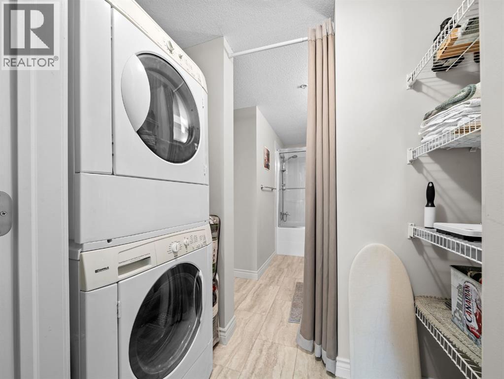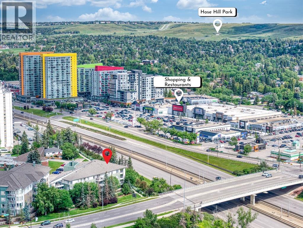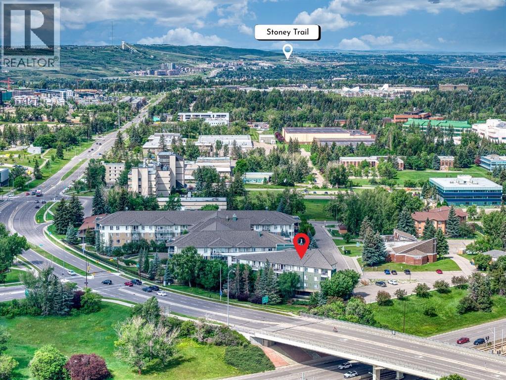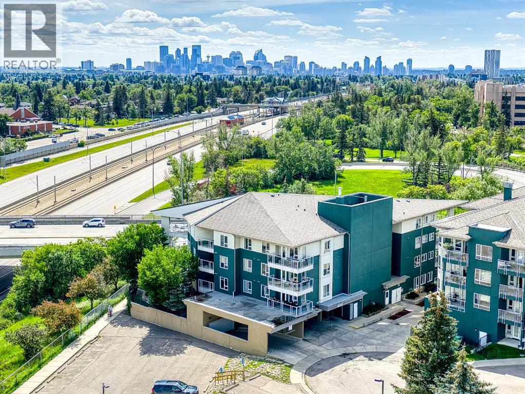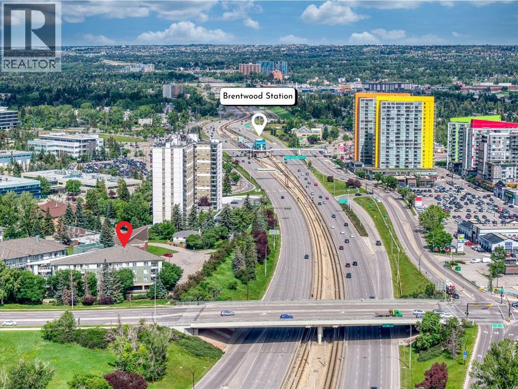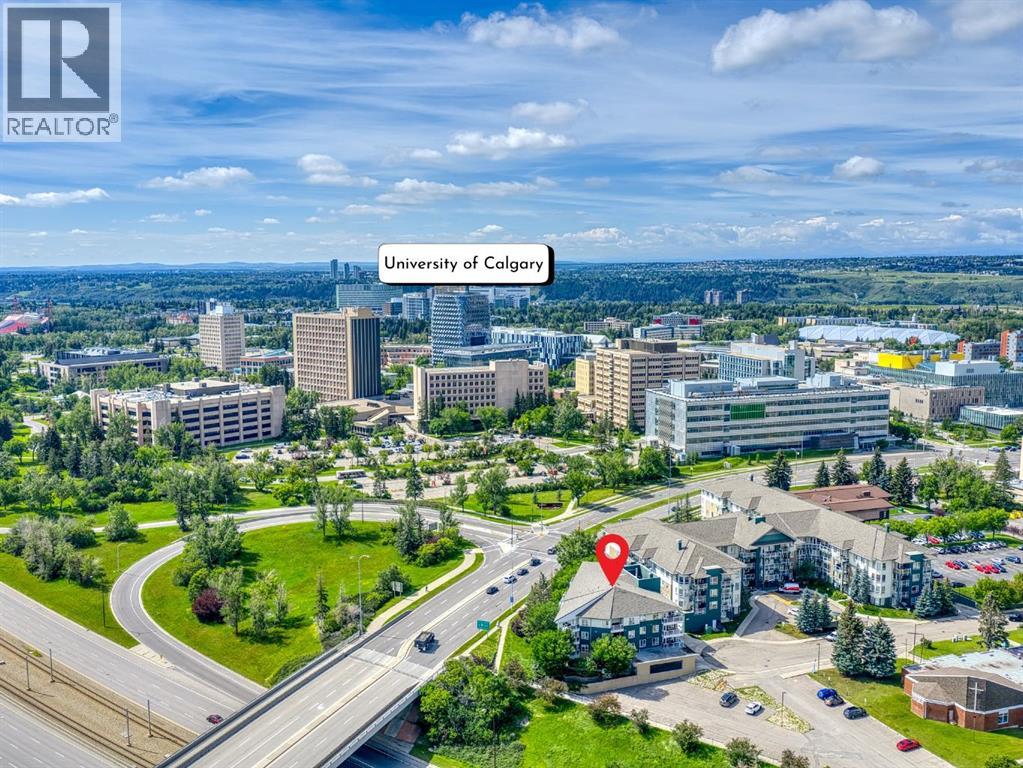 This stylish, FULLY FURNISHED, VALUE-PRICED one-bedroom condo offers MOVE-IN or RENT-READY convenience. Just steps from the University of Calgary, it features a spacious layout and comes COMPLETELY EQUIPPED for IMMEDIATE, COMFORTABLE LIVING — an ideal opportunity for students, professionals, or investors alike. The kitchen features sleek black appliances, including a cooktop stove and built-in BOSCH oven, along with ample cupboard and counter space and a functional island with an eating bar - perfect for both everyday living and entertaining. The adjacent dining area easily accommodates larger gatherings, whereas the built-in desk provides seamless convenience for work or study. The bright family room leads to a southeast facing private balcony with a glass railing, surrounded by mature trees and greenery — a peaceful, secluded outdoor space. The bright and spacious primary bedroom features a portable air conditioning unit (vented outside) and offers direct access to the 4-piece bathroom through a generous walk-through closet and in-suite laundry area with a linen closet. Additional features include a titled underground parking stall, secure bike storage and covered guest parking. Ideally located within walking distance to the University of Calgary, Brentwood and University LRT stations, University District, Market Mall, Brentwood Village, McMahon Stadium, and the Alberta Children’s and Foothills Hospitals, this condo is a smart investment and an equally ideal place to call home. (id:55577)