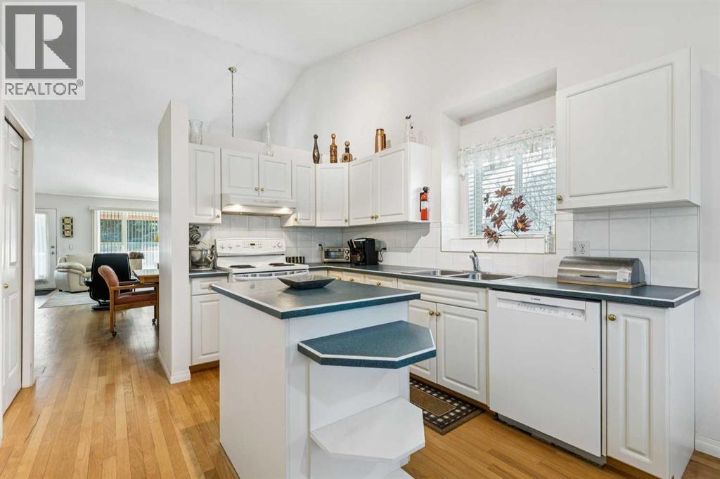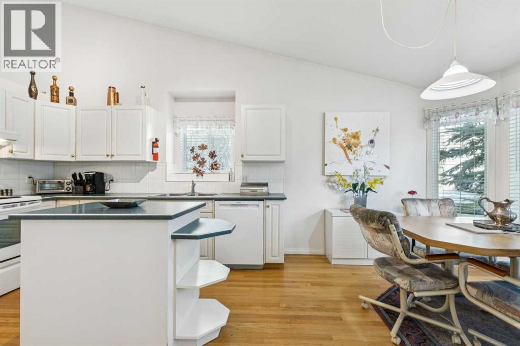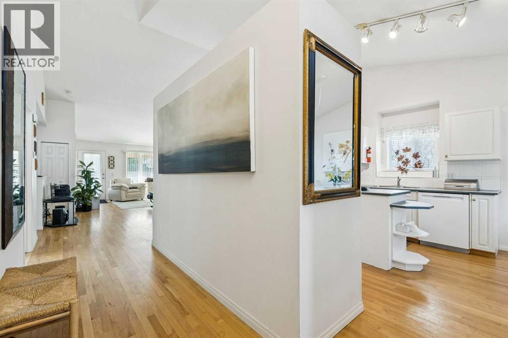 OPEN HOUSE SATURDAY JAN 24, 2-4PM. JUST LISTED in PATTERSON! Fully finished 4 bedroom, 3 bathroom, END UNIT BUNGALOW in “Prominence Hills”! QUIET AMAZING LOCATION with NO NEIGHBOURS BEHIND, SUNNY SOUTHWEST facing backyard, right across the street from the OFF-LEASH PARK, and QUICK ACCESS TO OLD BANFF COACH ROAD! Open floor plan with HIGH VAULTED CEILINGS, white kitchen cabinets & island, PANTRY, HARDWOOD FLOORING, GAS FIREPLACE, good sized dining areas, and more! Large primary bedroom with 4 PCE bathroom ensuite, standing shower, corner tub, and walk-in closet. There is also a 2nd main floor bedroom and full bathroom for added convenience. The lower level is fully finished, has a wide open recreation area, large windows, 2 additional bedrooms with huge closet space, a full bath, and laundry. So many extras in this home - DOUBLE ATTACHED GARAGE, bay windows in the kitchen nook, master bedroom, and dining room. Maintenance free SW facing private deck with power awning, knockdown ceiling texture, large mechanical room for storage, underground sprinklers, and more. LOW CONDO FEES include clubhouse with games room and kitchen! Request your showing today as this property is priced to sell at $599,900 and will not last long! (id:55577)