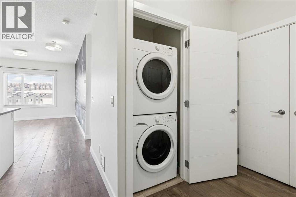 Top-Floor Corner Unit! Don’t miss this rare opportunity to own arguably the most desirable suite in the building: a bright and spacious top-floor corner 2-bedroom + den, 2-bathroom condo in the highly sought-after Viridian in Sage Hill. Built in 2015, this stylish home offers superb design, functionality and a sense of peace that sets it apart from other units in the building. As you step inside, you’ll be greeted by abundant natural light spilling through large windows into an open-concept living space with 9-foot ceilings, sleek quartz countertops, modern stainless steel appliances in the kitchen as well as a convenient breakfast bar, and durable LVP flooring - all meticulously chosen for contemporary living. The bright south-facing balcony provides a lovely place to relax with a morning coffee or evening glass of wine, and the den adds enviable versatility - ideal as a home office, guest room or hobby space - giving this home true 2-plus-flex appeal. Residents will appreciate the comforts of in-floor heating, no carpet throughout, in-suite laundry, underground parking (a coveted bonus as some units only have surface stalls), and the sense of privacy and quiet that comes with being on the top level. The well-managed condo community includes a comprehensive maintenance fee that covers water, sewer, heat, exterior building maintenance and insurance, snow removal, landscaping, maintenance of the grounds and parking areas, reserve fund contributions, and professional management, making day-to-day living truly hassle-free. Ideally situated in Sage Hill, this location puts you within easy reach of everyday conveniences such as shopping, groceries, restaurants, transit and major routes like Stoney Trail, plus parks, pathways, schools and recreation options that make this neighbourhood so desirable for first-time buyers, downsizers and investors alike. With its unique combination of features, quality finishes, prime position and superior value compared to comparable units , this corner suite delivers an exceptional condo lifestyle that’s tough to beat. Act quickly - homes like this don’t stay on the market long! Builder size is 869 sqft. Pet-friendly building! (id:55577)