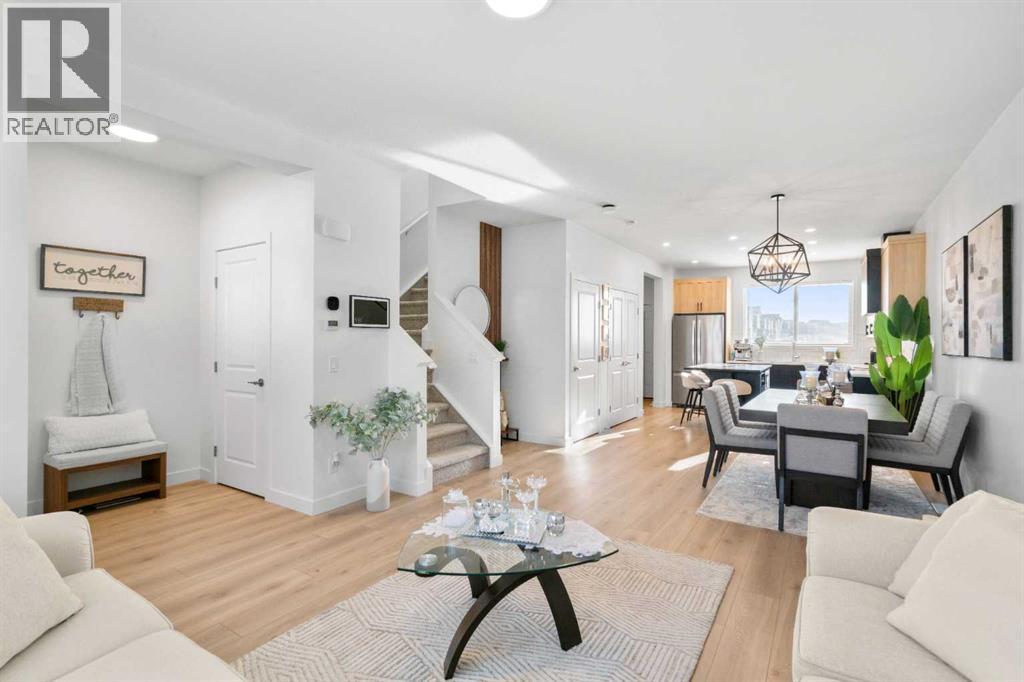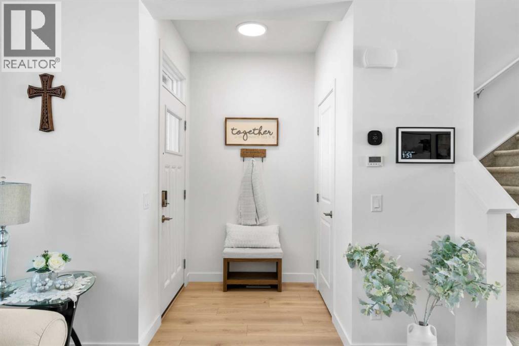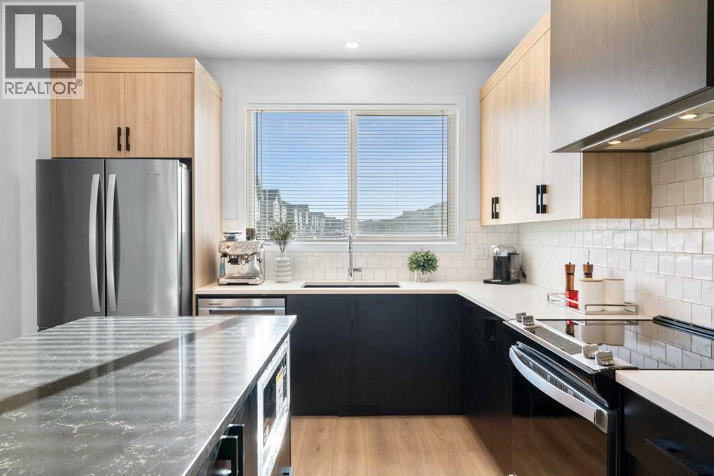 *** Home Sweet Home*** Welcome to this move-in ready 2024 Jayman BUILT House in the vibrant community of Ambleton NW. Offering 1444 sq. ft. of thoughtfully designed living space, this detached home features 3 bedrooms and 2.5 bathrooms with an open-concept layout ideal for modern living.The main floor highlights a gourmet kitchen with quartz countertops, central island with flush eating bar, stainless steel appliances including French door fridge with ice maker, designer hood fan, and microwave. The bright dining area and spacious Great Room are complemented by large windows for abundant natural light. A 2-piece bath and rear mudroom complete the level.Upstairs offers three generous bedrooms, full main bath, convenient upper laundry, and a primary suite with walk-in closet and 3-piece ensuite. The basement includes 9’ ceilings, separate side entrance, and 3-piece rough-in for future development (subject to city approval).Built with Jayman’s Core Performance features including 10 solar panels, Built Green Canada certification with EnerGuide rating, triple-pane windows, UV-C air purification system, high-efficiency furnace with HRV, Navien tankless hot water heater, quartz throughout, 12 x 10 composite deck, smart home package, rear BBQ gas line, and completed front landscaping. Ideally located near parks, future schools, shopping, and quick access to Stoney Trail. (id:55577)
