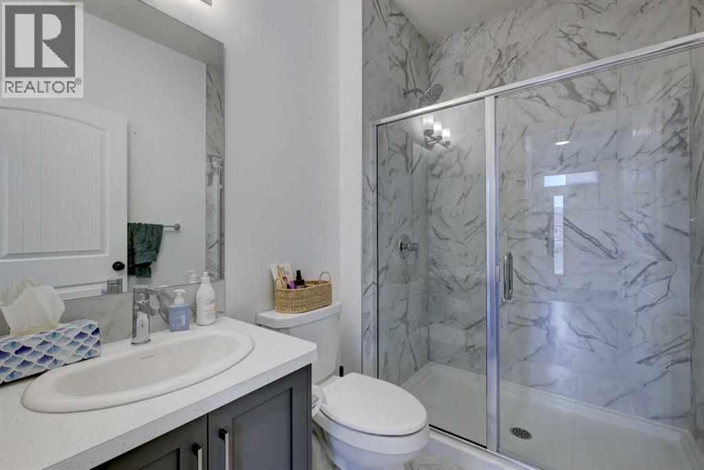 Welcome to this beautifully crafted home in the vibrant and sought after community of Midtown, Airdrie! Featuring a spacious and functional layout, this property offers 5 bedrooms, 3 full bathrooms, and a host of high end finishes throughout.Step inside to discover an open concept main floor with soaring 9ft ceilings and stunning engineered hardwood flooring. The modern kitchen is a chef’s dream, complete with sleek 3 cm QUARTZ countertops, premium stainless steel appliances including an electric stove, upgraded lighting, and ample cabinetry. A stylish full bathroom completes the main level, adding both convenience and flexibility.Upstairs, the primary bedroom offers a private retreat with its own ensuite and walk-in closet. You'll also find three additional generous bedrooms, a third full bathroom, and convenient upstairs laundry.The home’s fifth bedroom is located on the main level, ideal for guests or multi generational living. The basement features a separate side entrance and is undeveloped, offering endless potential, create a home gym or additional living space tailored to your needs.Outside, a double car garage provides ample parking and storage. Located in the heart of Midtown, you'll enjoy easy access to parks, schools, shopping, and all essential amenities. (id:55577)