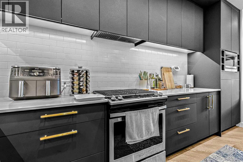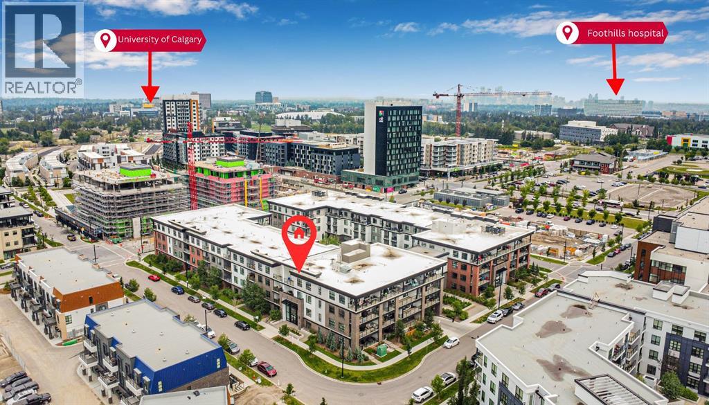 Welcome to your new home in the heart of the vibrant University District! This exceptional 2-bedroom, 2-bathroom condo offers the perfect blend of comfort, style, and convenience in one of Calgary’s most sought-after communities. Step into a thoughtfully designed and spacious layout featuring a unique floor plan and an abundance of natural light flowing through every room. The modern kitchen is a true showstopper, fully upgraded with premium quartz countertops, sleek cabinetry, elegant backsplash, and a stylish eating bar—ideal for both everyday living and entertaining. The open-concept design enhances the space, creating a seamless flow between the kitchen, dining, and living areas. Enjoy your morning coffee or evening unwind on the massive private balcony, offering additional space to relax or host friends during Calgary’s beautiful seasons. The unit includes two generously sized bedrooms, both with ample closet space and access to beautifully finished bathrooms—perfect for professionals, students, or small families. Additional highlights include in-suite laundry, upgraded lighting throughout, and ample storage solutions. This unit comes with a titled underground parking stall, offering added value and peace of mind. The building itself boasts impressive amenities, including a fitness room conveniently located on the same floor, a bike storage room, cycle room, and a pet wash station—catering to every lifestyle need. Situated in the award-winning University District, this condo offers unmatched location benefits. You’re just minutes from the University of Calgary, Alberta Children’s Hospital, Foothills Medical Centre, Market Mall, restaurants, cafés, grocery stores, movie theatre, parks, and endless walking trails. Whether you’re a first-time buyer, investor, downsizer, or looking for a prime location near campus and medical facilities, this home offers tremendous value, modern luxury, and urban convenience. Don’t miss your chance to live in one of Calgary’s most walkable and dynamic neighborhoods. Schedule your private showing today and experience the lifestyle University District has to offer! (id:55577)