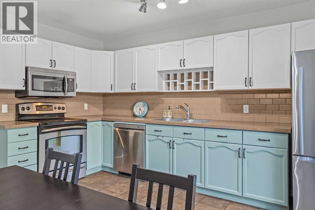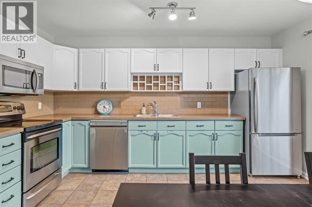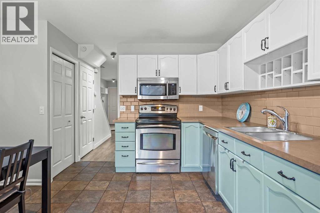 Discover the perfect blend of Location, Lifestyle, and Low Maintenance Fees! This townhouse is a must-see, featuring three levels of comfort and modern elegance. Enjoy two beautifully renovated bedrooms, 2nd bedroom includes a Murphy Bed, three bathrooms with new vanities, low-flush toilets, elegant tiles, and a custom shower in the main bathroom. The main level features a spacious kitchen, cozy gas fireplace, and sleek laminate flooring. Step out onto the landscaped areas from either the front entry and back deck. Benefit from one designated parking stall, along with access to 18 visitor parking spots. Nestled at the back row of a fenced complex, this property offers a tranquil and private setting, away from the main entrance and parking areas. Bask in ample sunlight throughout the day and soak in mountain views from both the East and South. The large, finished basement provides abundant storage space and a renovated 3rd bathroom. (id:55577)
