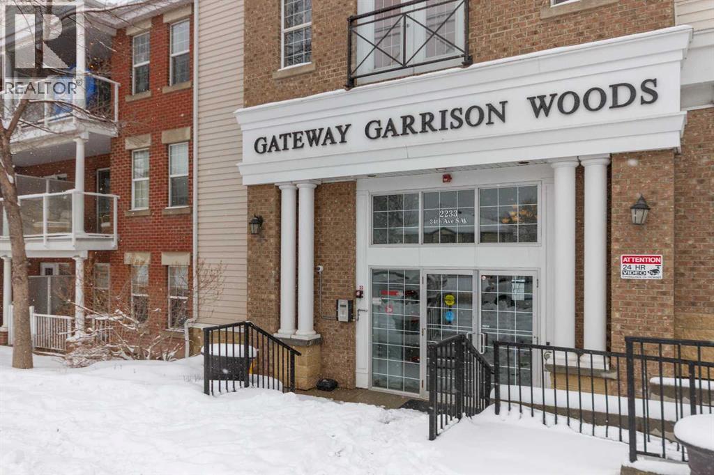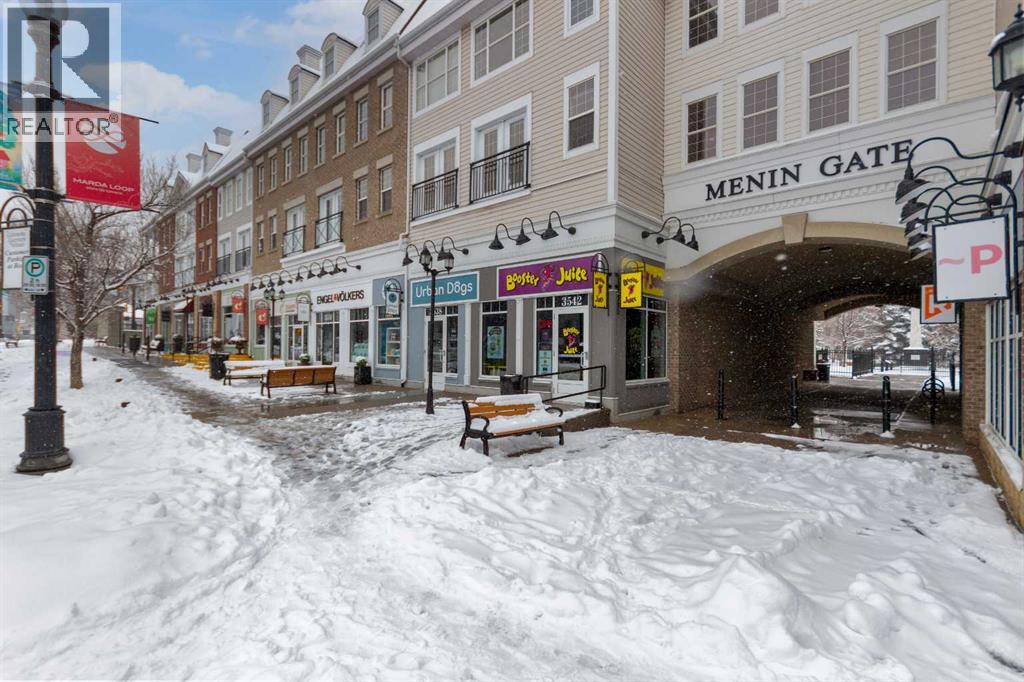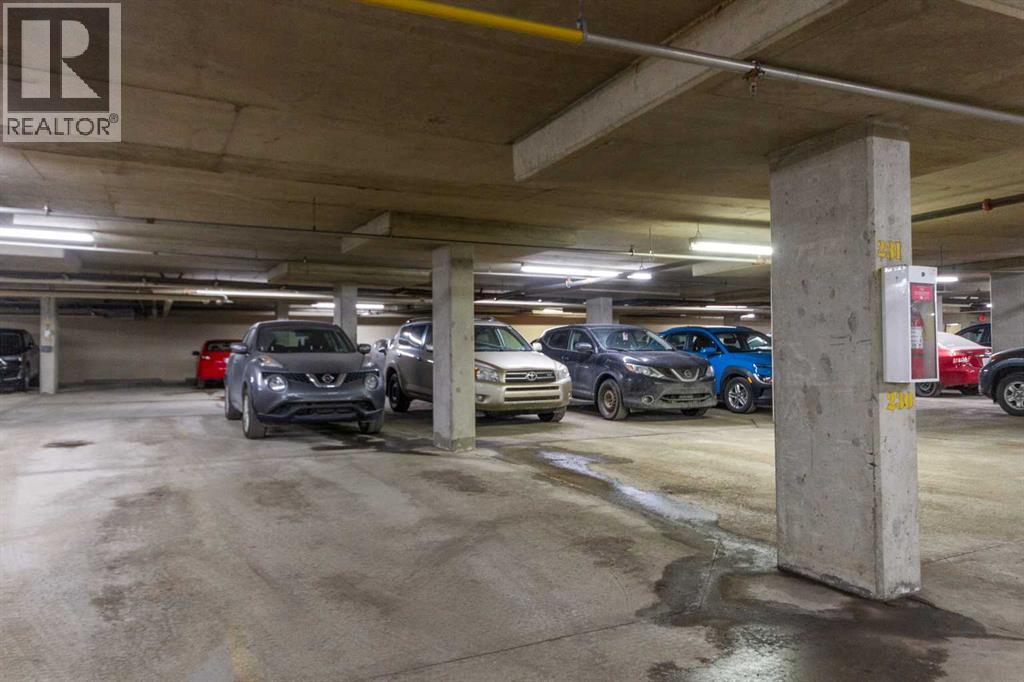 Welcome to this very clean top-floor, south-facing condo in the heart of Marda Loop, featuring fresh paint, brand new carpet, titled underground parking, and a titled storage locker. This well laid out one bedroom plus den condo is bright, welcoming and move-in ready. The open concept kitchen offers lots of cabinetry, stainless steel appliances and opens on to space for a dining table. The sun filled living room showcases beautiful views of the surrounding neighbourhood and beyond, while sliding patio doors open to a private south-facing balcony complete with a gas line for your BBQ. The bedroom has brand new carpet, a walk-through closet with shelving and access to the 4-piece cheater ensuite. The bathroom was just updated with a new bathroom fan, new light fixture and new flat painted ceiling. At the front of the condo is the flexible den space, ideal for an at home office or mudroom. In-suite laundry with lots of additional space in this room for your vacuum, linens, and anything else you wish to store in-suite. Convenient location within the building, just steps from the elevator that takes you directly to the parkade where your parking stall and storage locker are located. Enjoy living in the heart of Marda Loop in this well managed, pet friendly building with underground visitor parking, underground bike storage, third level party room with large balcony, and all the utilities included (gas, electricity, water, & sewer) in the reasonable condo fees. Just steps from Starbucks, restaurants, Safeway, banks, parks and schools. Easy access in and out of the community to Crowchild Trail and Glenmore Trail. (id:55577)
