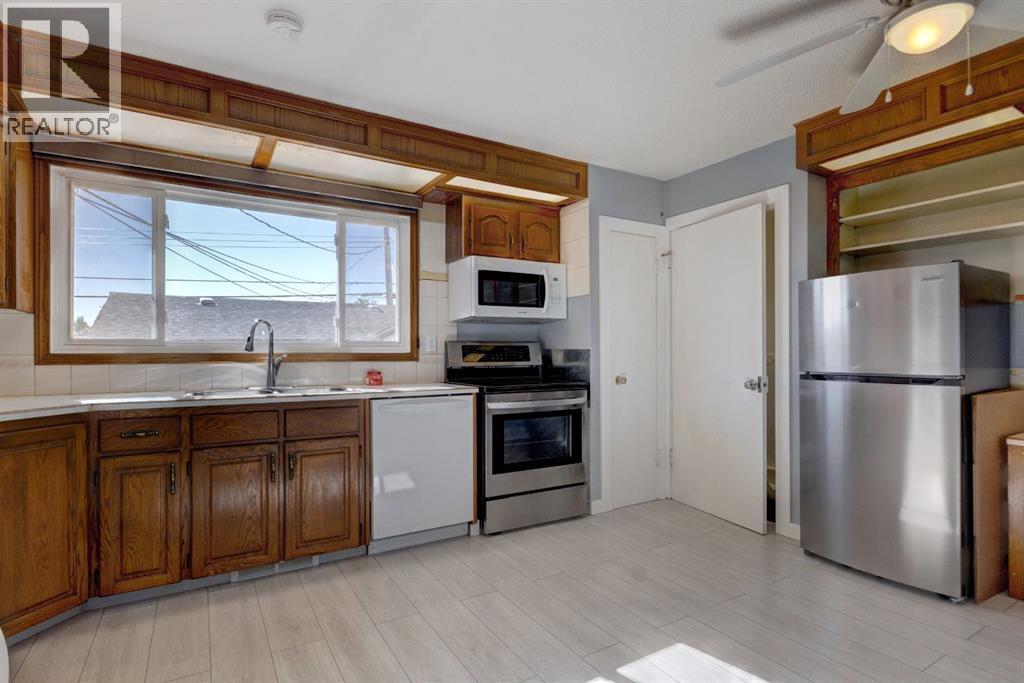 Welcome to this updated and inviting 1966 bungalow in the desirable community of Radisson Heights, offering comfort, flexibility, and excellent income potential with a legal basement suite (2020, permitted). The main floor features a bright, open living and dining area with a fireplace, updated flooring, and two generous bedrooms (originally three — wall can easily be reinstalled). The space feels warm and inviting with large windows and plenty of natural light.The lower level suite includes a kitchen, laundry area, two bedrooms with a Jack & Jill 4-piece bath, and a cozy living space ideal for extended family or a mortgage helper. Recent updates include roof shingles, windows, oversized hot water tank (2019), and refreshed finishes throughout. Enjoy a nice-sized yard, double detached garage, and extra parking pad for added convenience. Centrally located close to schools, parks, shopping, major routes, and the Franklin LRT — only minutes from downtown. A solid inner-city property with great potential for homeowners and investors alike. (id:55577)